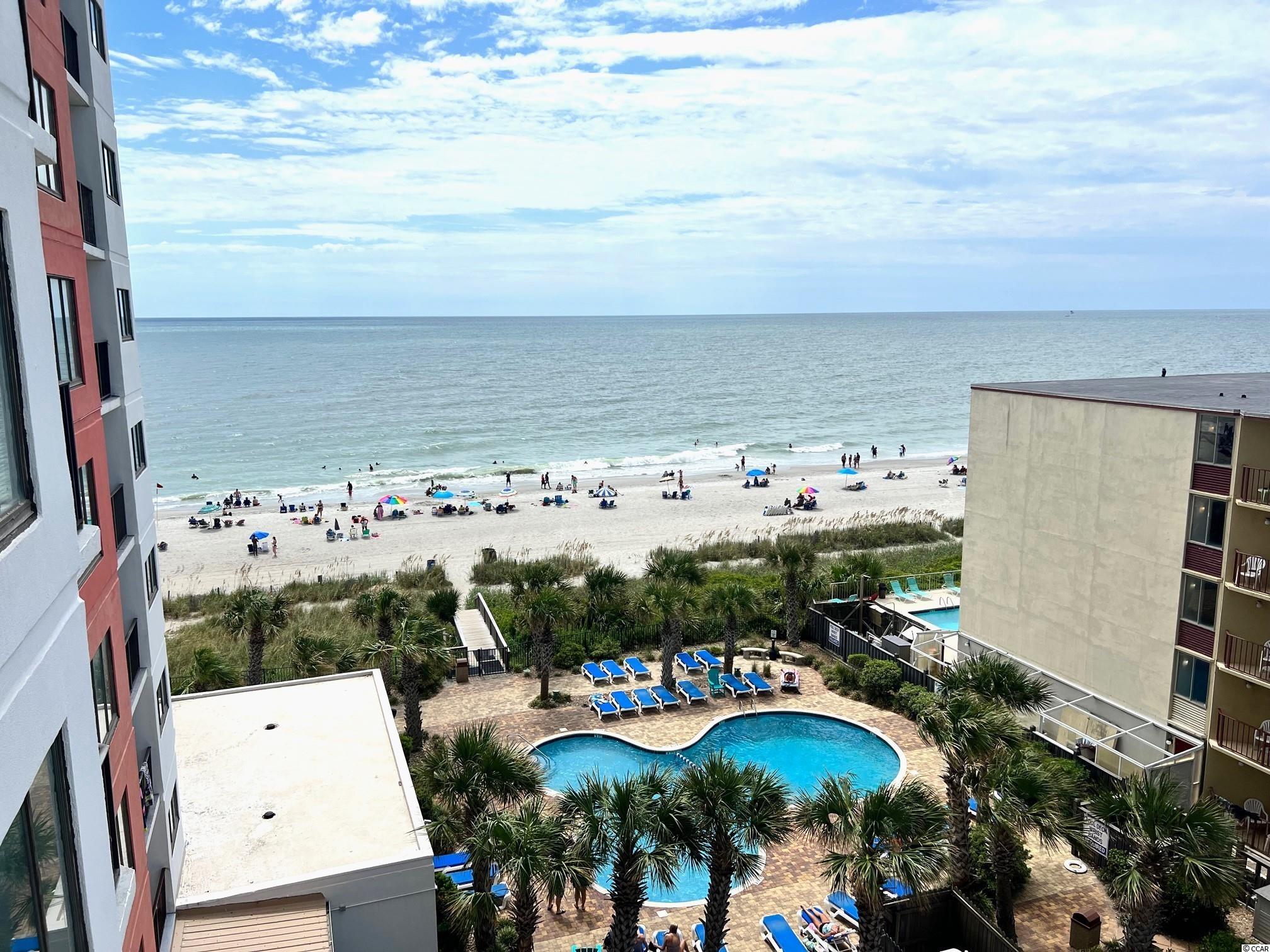 Sunny & Bright 1BR/1BA Condo with ocean views at The Palace Resort! New blinds & furniture! Great Beach Get-Away and/or Investment Property! The Palace Resort features a host of amenities: large oceanfront outdoor pool, indoor pools, whirlpools, putting green, exercise room, sauna, restaurant/lounge, free wireless internet, guest laundry facilities, attached parking garage. The Palace is minutes from Market Commons, the Boardwalk, Broadway at the Beach and the Myrtle Beach Airport. No owner financing.