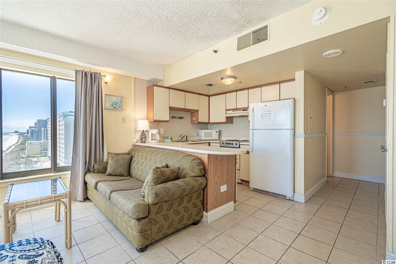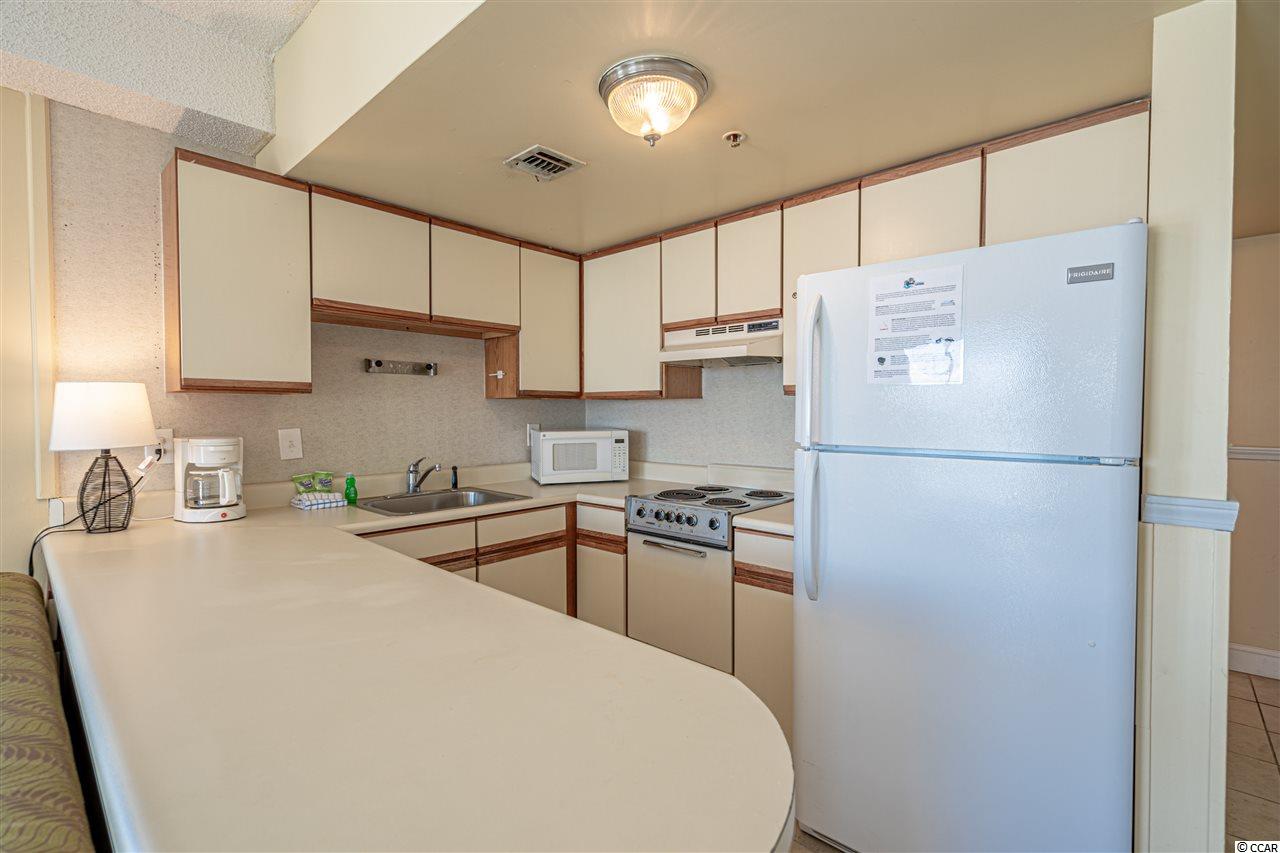 Efficiency condo with direct oceanfront views brings a bright and airy feel to this immaculate corner unit. This unit has been well maintained and is NOT on the rental program. You'll be able to enjoy ocean views whether your drinking your morning coffee on the balcony or cooking up dinner in the kitchen! The Palace Resort has incredible amenities: large oceanfront outdoor pool, indoor pool, whirlpools, putting green, exercise room, sauna, restaurant/lounge, free wireless internet, guest laundry facilities, attached parking garage and all accompanied with a low HOA! The Palace is minutes away from the Boardwalk, Broadway at the Beach and the Myrtle Beach airport. *Owner is licensed SC Realtor. Buyer is responsible for all measurements.