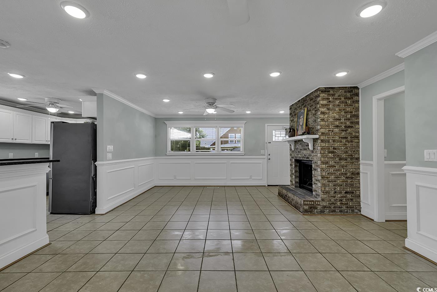 This gorgeous brick home is nestled in a private area east of Hwy 17 in the waterway community of Riverside in North Myrtle Beach with no HOA fees & a sought-after school district. This lovely low-maintenance jewel takes comfortable living to a new high by offering a spacious open layout, and tons of natural light throughout the entire living & dining giving a light and airy feel. You can see custom features found in many higher-priced homes. The kitchen is well-equipped with/ an ample supply of upgraded cabinets and plenty of counter space featuring a breakfast island, top-line stainless steel appliances including a glass top range, a deluxe dishwasher, a large French door refrigerator, a built-in microwave, and custom granite countertops. Other features that are wow are the recessed lighting, wood-burning fireplace, and the beautiful custom crown molding & wainscoting/chair rail molding throughout most of the home leading down the hallway past the building shelves. The roomy owners suite features, his and her closets with mirror doors, a well-done roomy private bath with/ vanity, & a tub/shower. The comfy secondary bedrooms are the perfect size for an office, guests, and family. Sit in the privacy of the sizable deck in the fully fenced-in backyard. Other Features Include: quiet lighted ceiling fans are all over for great circulation & energy efficiency, new paint including suede texture paint, and energy-efficient windows, ceramic tile & carpet, a tankless water heater, a deluxe front-loading washer/dryer, oversized lot & tons of outdoor storage. There are numerous other entertainment attractions close by also. Youre connected to the entire Grand Strand via Highways 22, 31, and North Myrtle Beach Main Street Connector which allow for easy and quick access directly onto Main St in North Myrtle Beach and the citys Athletic Complex boasts 143 acres which include 6 baseball/softball fields, 4-8 multi-purpose fields, 5 to 10-acre water park, 2 to 5-acre dog park, walking & biking trails, playgrounds, amphitheater, etc. Come experience why the Grand Strand area is consistently ranked by the Travel Channel as a top family resort destination. Few places combine a laid-back lifestyle with/ so many seaside dining & entertainment options. Better still, relocate here & experience the temperate climate & friendly people. The only thing missing is YOU! The buyer & buyer's agent are responsible for due diligence to verify all property data contained herein, e.g., square footage, room sizes, schools, etc...