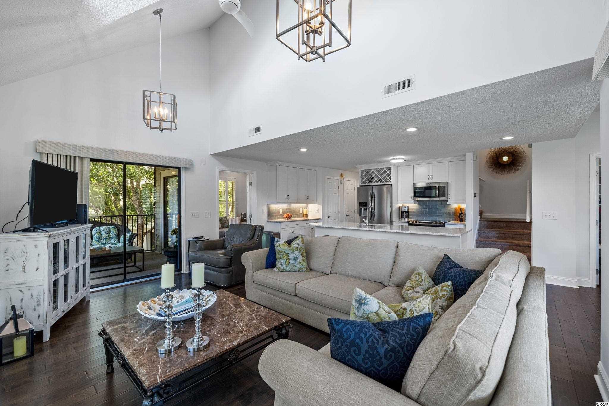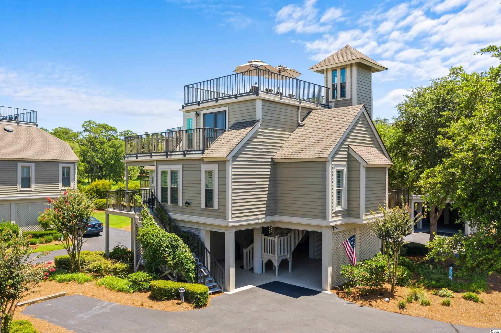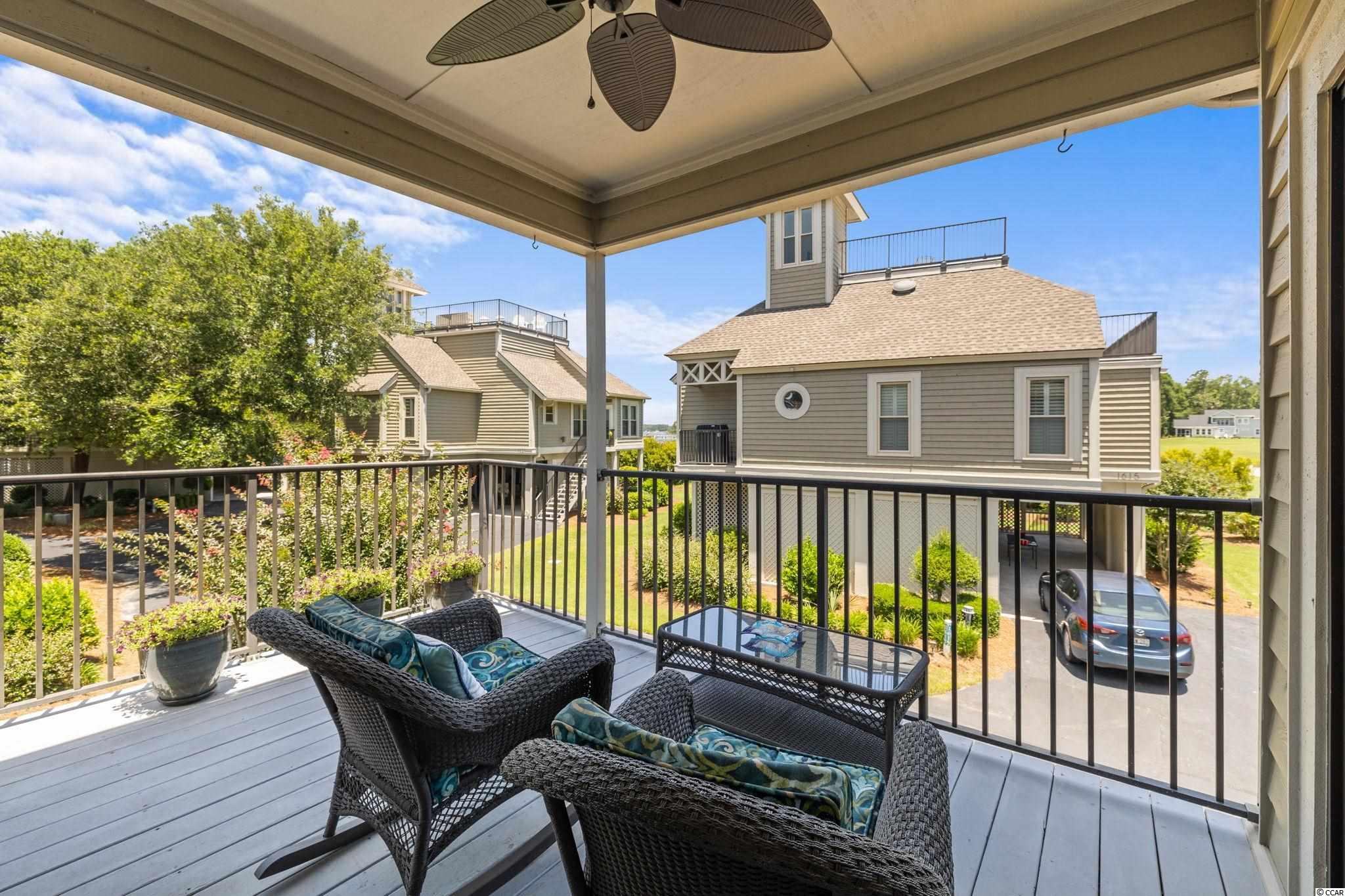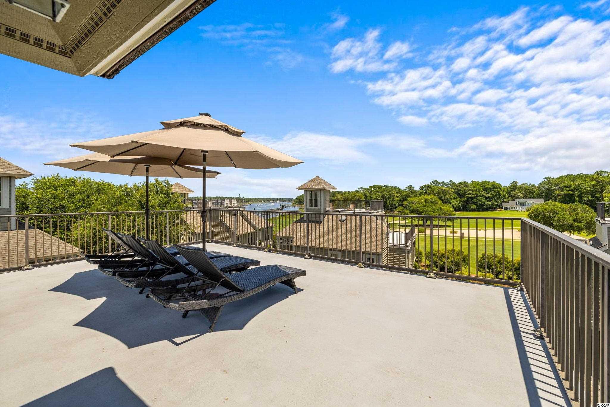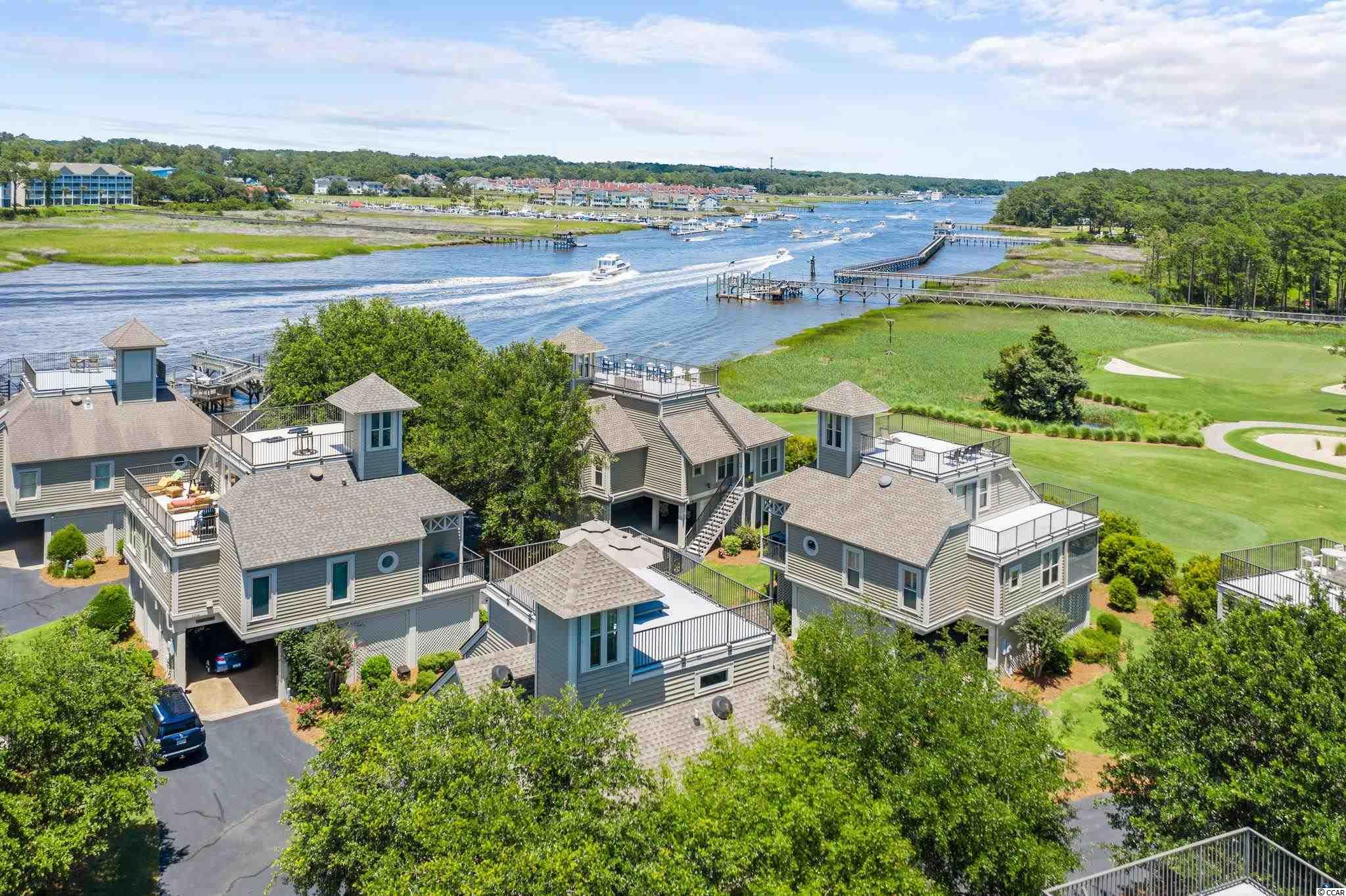 Harbor Loft is an Intracoastal Waterway community located within the gates of Tidewater Plantation. This raised 3 bedroom, 2 and one half bath home has been tastefully updated and offers some of the Grand Strands best amenities. The floor plan consists of 2 master bedrooms, one of which has it's own balcony, a third bedroom with half bathroom, and an office/flex space. Updates include quartz countertops, custom cabinetry with soft close and undermount lighting, stainless steel appliances, engineered hardwood floors, plantation shutters, custom blinds, high end lighting fixtures, custom closet shelving, new roof and other custom features that you will not find in other Harbor Loft homes. These homes offer carefree living with great outdoor spaces. Enjoy views of the waterway and golf course from the top floor sundeck or sit in the shade of the screened porch or the open air and sunshine of the third and fourth deck. The ground level offers covered space that can be used for parking, storage, or entertaining and covered access to the upper level. The concrete has been epoxy treated for ease cleaning and gives a great finished look. Tidewater Plantation is a gated community with security that offers access to pools, tennis courts, an oceanfront cabana, fitness center, day dock, clubhouse and a golf course.