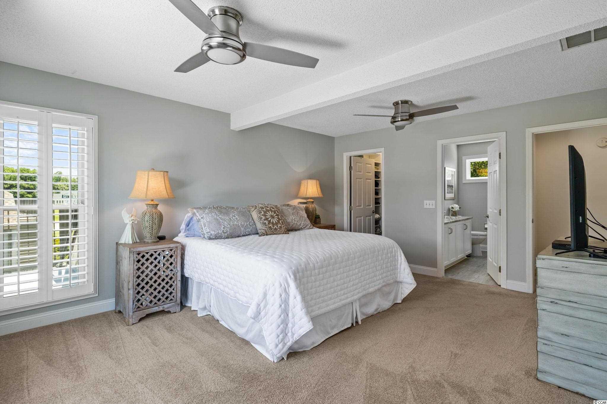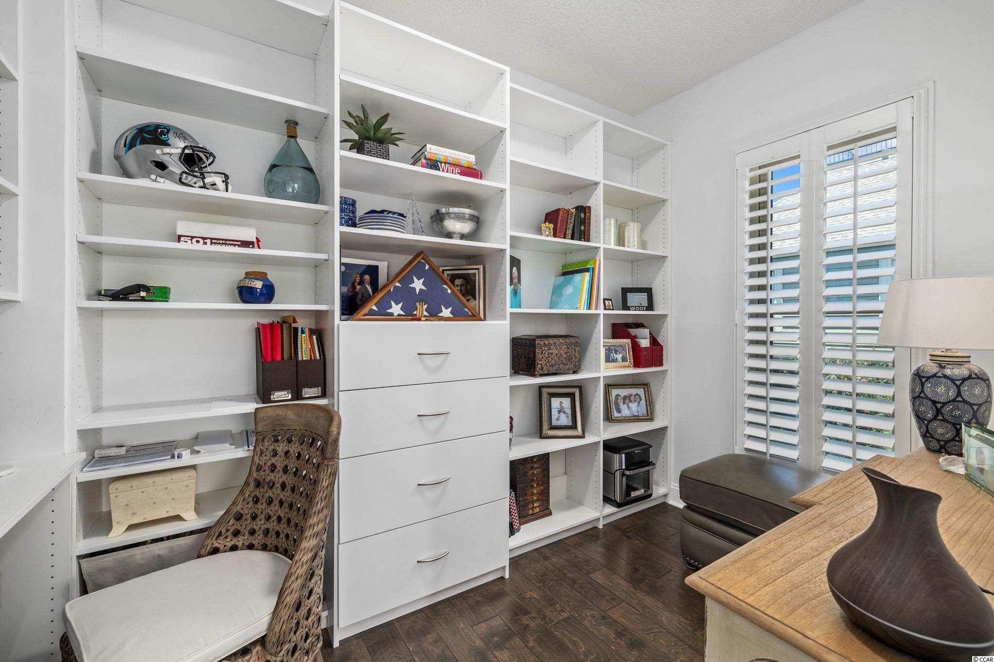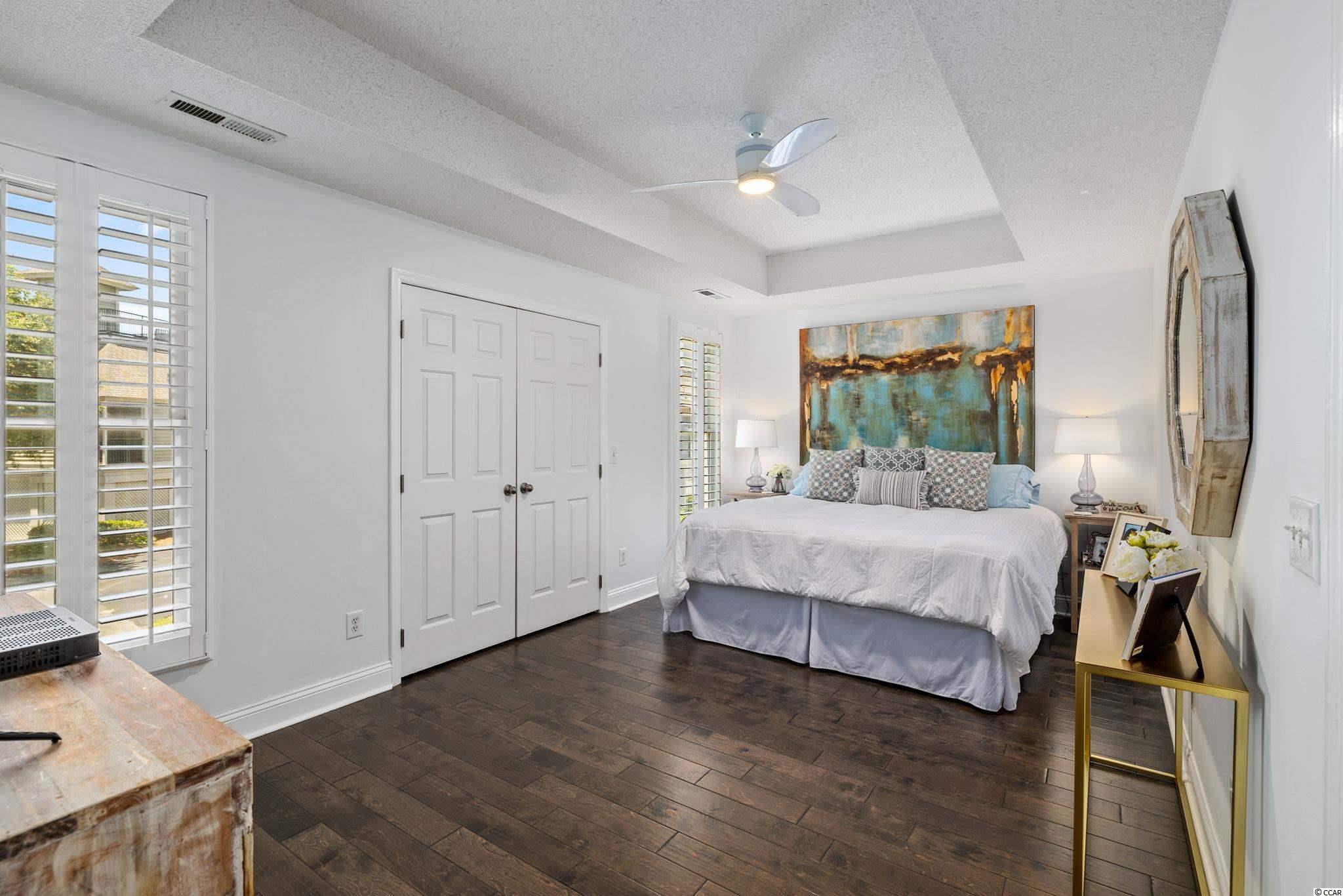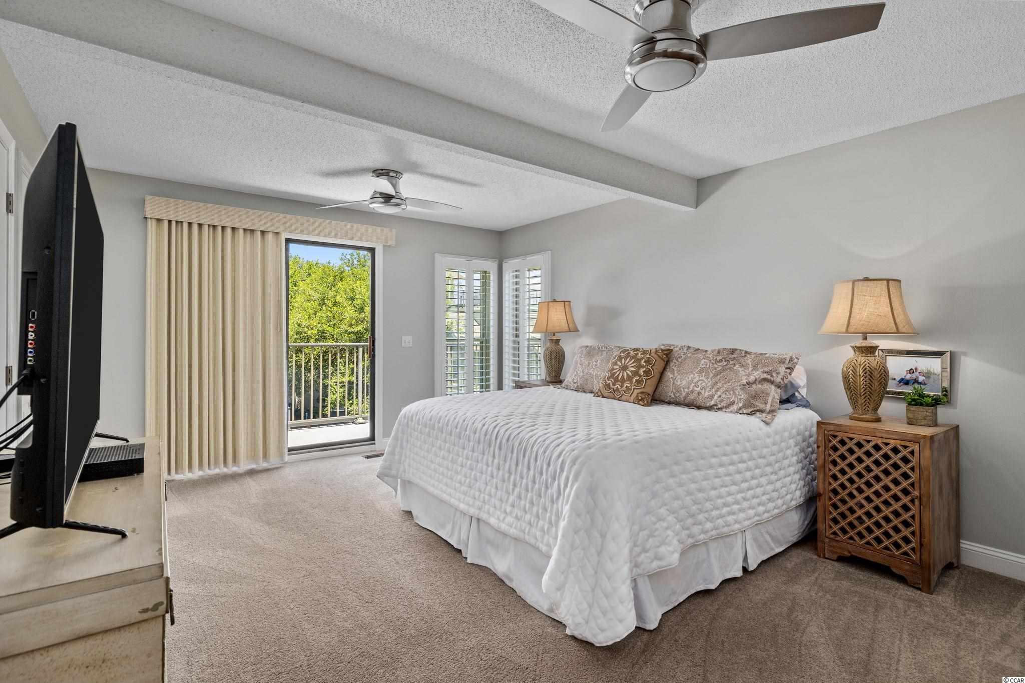 Harbor Loft is an Intracoastal Waterway community located within the gates of Tidewater Plantation. This raised 3 bedroom, 2 and one half bath home has been tastefully updated and offers some of the Grand Strands best amenities. The floor plan consists of 2 master bedrooms, one of which has it's own balcony, a third bedroom with half bathroom, and an office/flex space. Updates include quartz countertops, custom cabinetry with soft close and undermount lighting, stainless steel appliances, engineered hardwood floors, plantation shutters, custom blinds, high end lighting fixtures, custom closet shelving, new roof and other custom features that you will not find in other Harbor Loft homes. These homes offer carefree living with great outdoor spaces. Enjoy views of the waterway and golf course from the top floor sundeck or sit in the shade of the screened porch or the open air and sunshine of the third and fourth deck. The ground level offers covered space that can be used for parking, storage, or entertaining and covered access to the upper level. The concrete has been epoxy treated for ease cleaning and gives a great finished look. Tidewater Plantation is a gated community with security that offers access to pools, tennis courts, an oceanfront cabana, fitness center, day dock, clubhouse and a golf course.