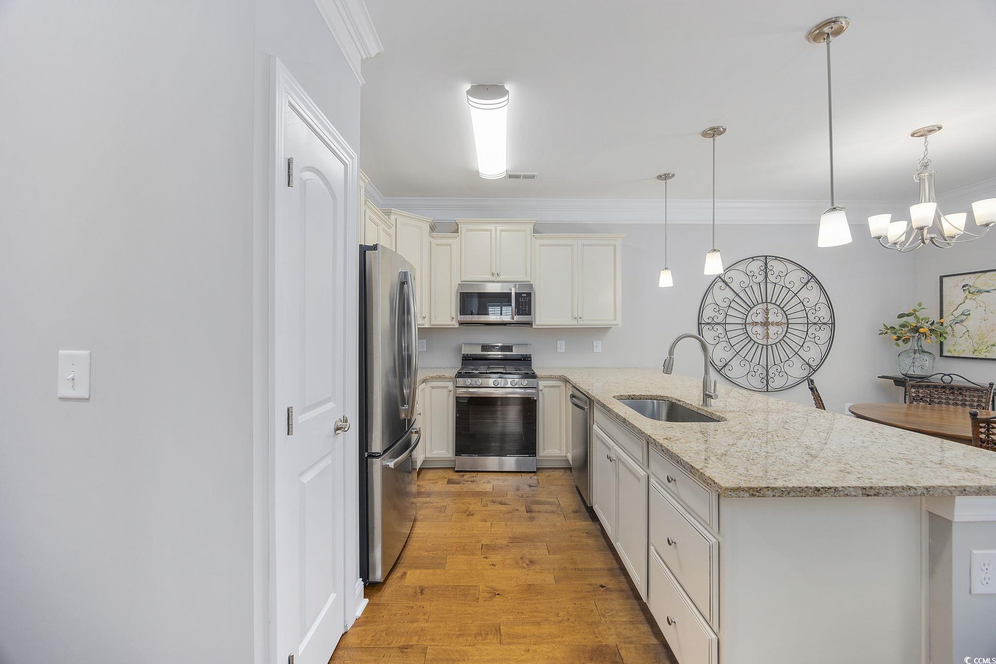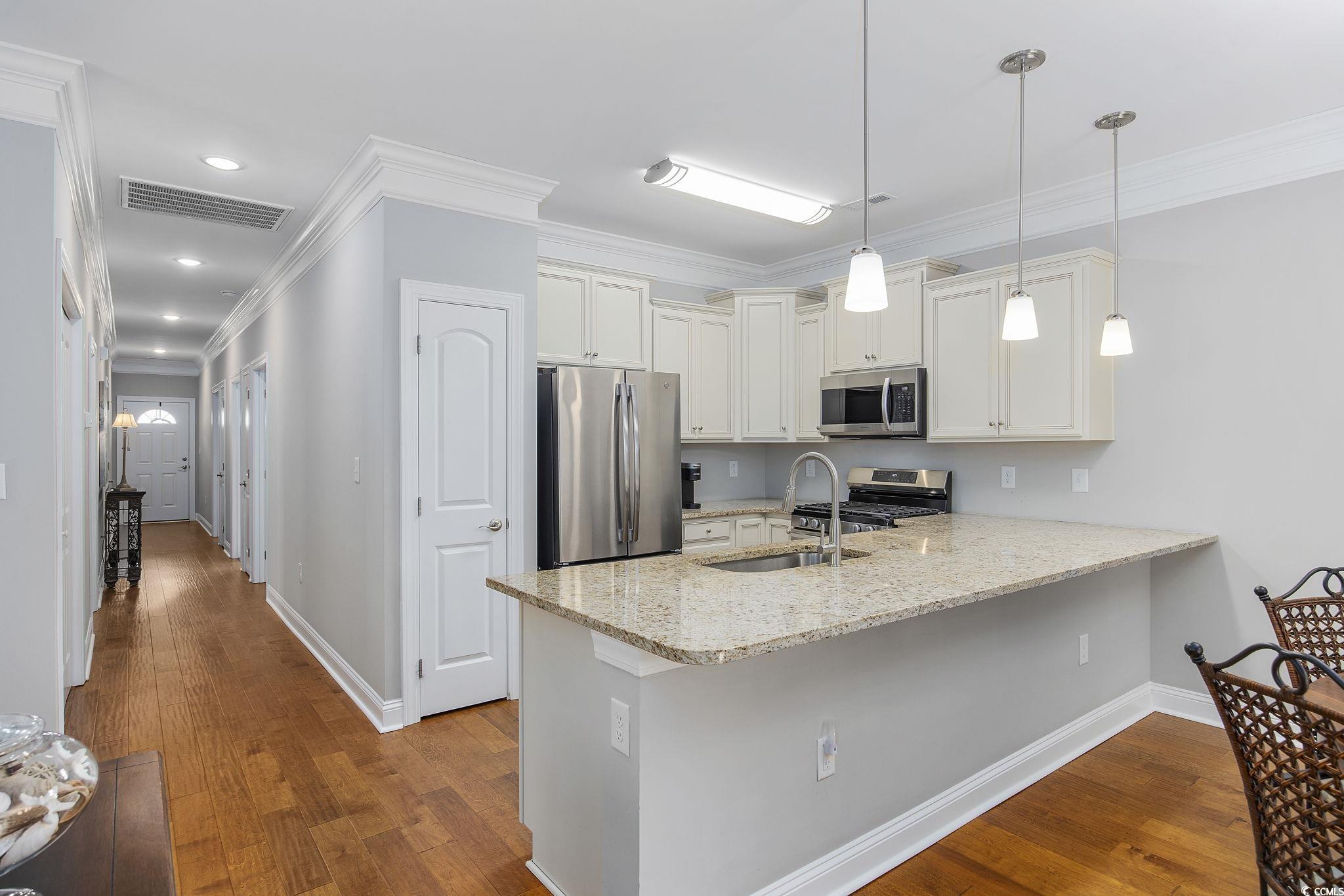 Charming Conway Cottage in the Master-planned, Small Community of Carsens Ferry! Located about 18 miles to Myrtle Beach and about 4 miles to Historic Downtown Conway. With its deep roots, rich history, tons of local boutiques, and extraordinary dining, Conway is an amazing community that is home to great festivals and events. This well-kept home has tons of upgrades such as double crown moulding, tray ceilings and more. Built in 2021, this like-new home sits at the back of the community where the road ends, which means less through-traffic and it backs to a private, wooded area where you can enjoy grilling, entertaining and unwinding. With the living and kitchen area situated on the backside of the home, you will enjoy the privacy and ease of access to the outdoor patio. Inside, beautiful, engineered hardwood floors flow seamlessly through the entire home enlarging the feel of the space and every window is fitted with custom plantation blinds. The generously sized primary bedroom with its ensuite bathroom is a retreat all its own and the guest rooms are equally as spacious. The kitchen features granite countertops, 2021 stainless steel appliances, including a gas stove, as well as an extended counter-height breakfast bar, pantry and ample cabinets. Finishing out the home is an oversized one-car garage with pull-down attic access and an adorable front porch. 2021 HVAC, Roof and tankless water heater. Carsens Ferry features coastal-colored cottages, a pool, greenspace, and sidewalks. Homes in this community are not for sale often and tend to close quickly. Don't miss out! Schedule a tour today and see all that Historic Conway has to Offer!
