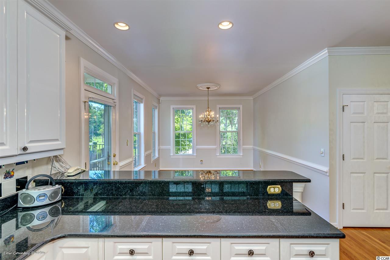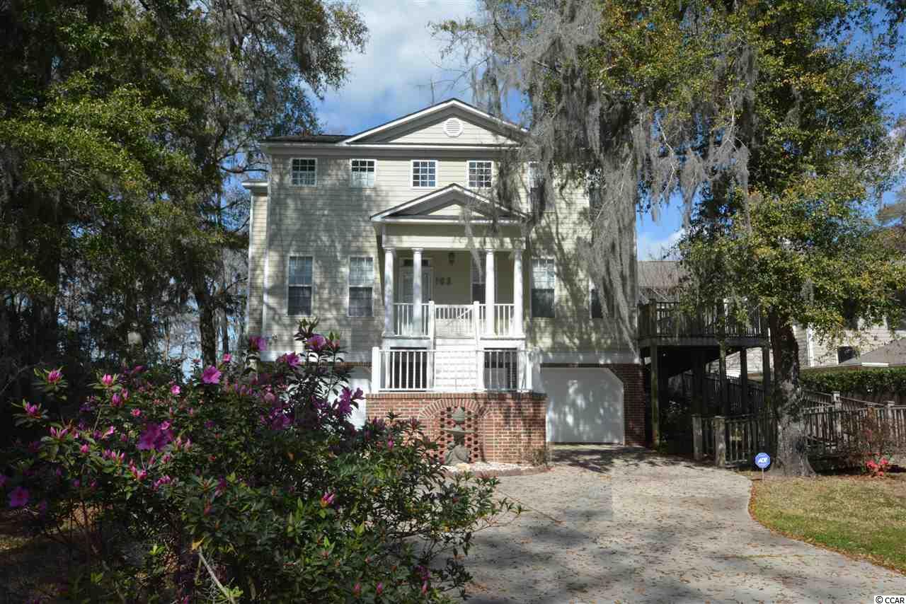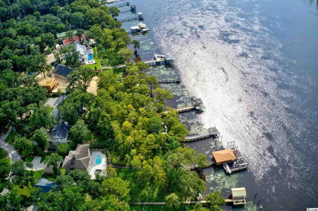 Spectacular views of the Intracoastal Waterway and large dock and boat lift make this property perfect for anyone who loves natural beauty and or boating. High & Dry this one has never had flood issues. Elevator leads to every floor in this 2 story home with parking underneath. Enjoy coffee and river breezes on your kitchen level deck or read on the patio of Old Richmond Cobblestones, Garage and all floors of the house are accessed by elevator and ramp that leads to kitchen level and deck. Home is move in ready. This is the lifestyle to die for. Featuring 4 BR and 3 full baths, with plenty of storage space. The large kitchen offers sweeping sunset and waterway views and has granite countertops, cabinets with pullouts, breakfast bar, and formal dining area. High end appliances installed 2016. Ceiling fans installed throughout, including garage and large studio/workshop off garage. The master suite with fireplace includes a large sitting area with great river views. The master bath has a jetted garden tub, shower, double vanities, high toilet and widened doors. There is a heated and cooled porch off master bedrm. Other conveniences include full size washer and dryer on second floor and stacked washer/dryer on first floor. The living room with fireplace opens to a Carolina room overlooking the adorable cobblestoned-patio. The wooded views and waterway breezes and scenery can be enjoyed from almost every room in the house. Much more than just a gorgeous home, the location is perfect- just an hour north of Charleston and 30 miles south of Myrtle Beach and 20 minutes to the famous Murrells Inlet Marsh Walk. Convenient to Brookgreen Gardens, Huntington Beach State Park, the beach at Pawleys Island, and wonderful area restaurants and quaint shopping venues in Pawleys Island. This home sits on a high natural bluff and shows like a new home. This one has it all...