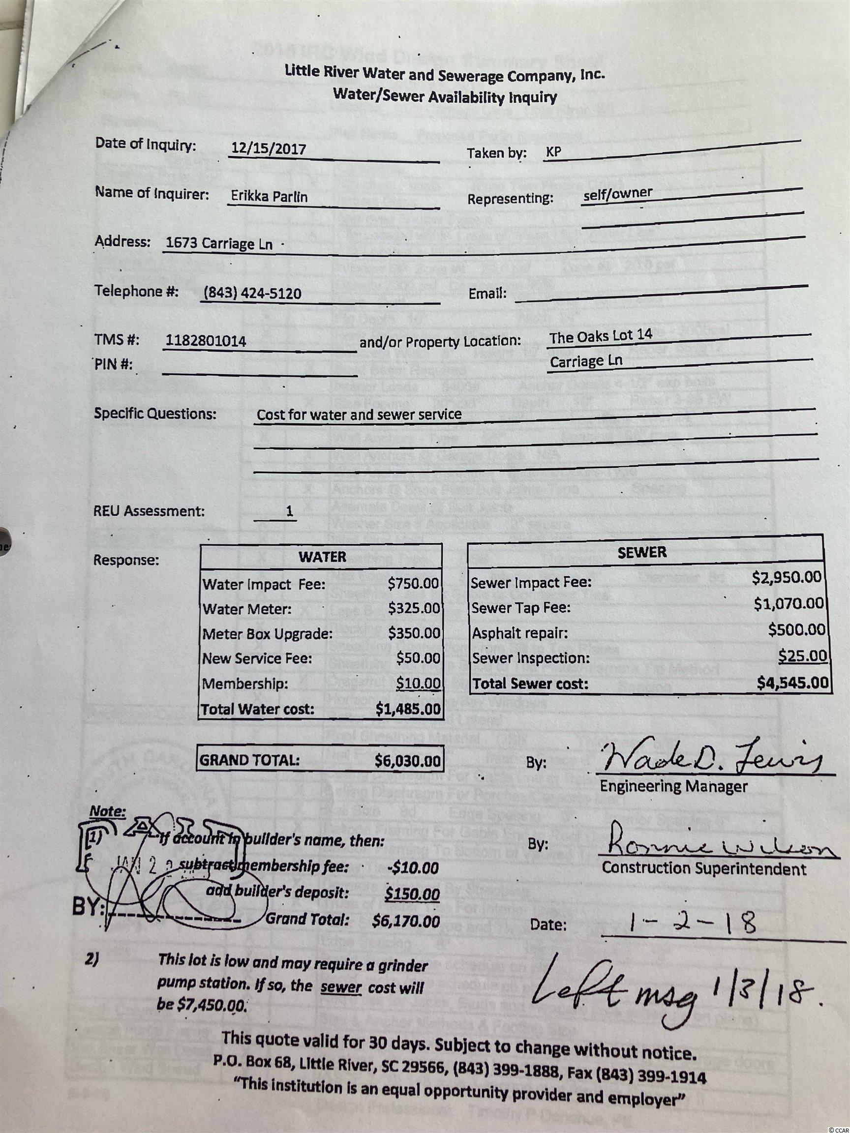 1/4 Acre lot, NO HOA, with partial foundation in place, water and sewer tap fee paid in full. Engineered plans completed for a 2BR/2BA, 975 sq ft on one level but lots of options with what you could potentially do on the existing foundation. Great location, east of 17, close to Little River waterfront and a short drive to the beach.