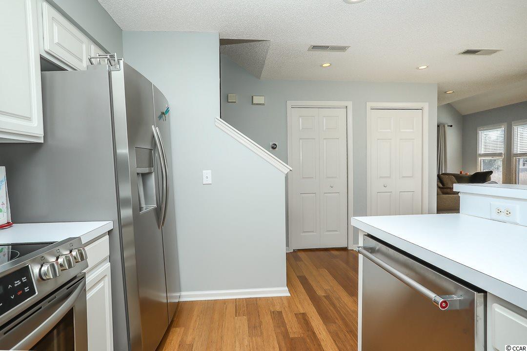 Once you enter Harbor Loft at Tidewater you will instantly feel the relaxation of beach living. This home offers 3 bedrooms, 3 full baths and 4 outdoor areas. The screened porch area allows you to enjoy the serene marsh grasses and the 18th hole of Tidewater. This home has been meticulously maintained both inside and out. Vaulted ceilings and skylights in the main living area bring in plenty of natural lighting and the floors are solid bamboo. The kitchen has brand new stainless appliances. The master bedroom has a large walk-in closet, en-suite with double vanity and a separate porch to enjoy the amazing views. Climb the spiral staircase to experience a ""true"" roof top experience with panoramic sights of the intercoastal waterway, marsh and golf course. Tidewater is a gated community with 24 hr security. The HOA fees include all landscaping and exterior painting of the home. You also have access to the private ocean front cabana, pools and fitness center.