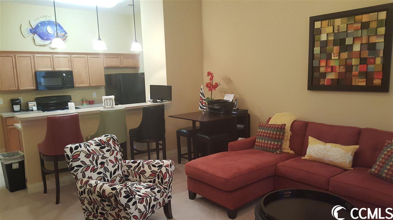 Located in one of the most successful condo developments in the Myrtle Beach area, this most desirable fourth-floor unit is a 1 bedroom 1 bathroom condo in the very popular Queens Harbour Development. This unit has 11' smooth ceilings, an outside storage closet and plenty of space in all the rooms including the kitchen which boasts a breakfast bar and pantry. The location is superb with shopping, dining and recreation steps away. The amenity package includes a resort style swimming pool and clubhouse, conveniently located picnic areas with grills and an elevator in every building. Please note that the photos are of previously sold one bedroom unit.