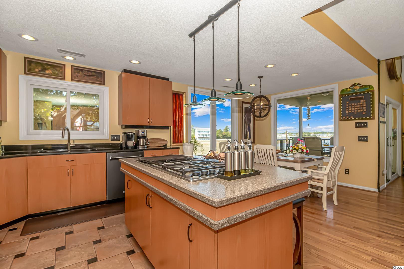 A rare find on the Intracoastal Waterway located in the heart of the prestigious Tidewater Golf Plantation. Located directly on the Waterway, this home features spectacular westerly and easterly views from its 4 decks located on 3 different levels of the home. It features a recently rebuilt 200 foot pier with ample seating and room to install your boat lift. The home includes 3 bedrooms with 3 full bathrooms and new hurricane resistant windows including a 90picture window directly overlooking the Waterway. The 3rd bedroom includes a custom built desk and work area as well as a queen size Murphy bed and its own full bathroom. The 3 bathrooms are all updated and adjoin the 3 bedrooms. Designed to enjoy open concept living, the main living area includes a chefs kitchen with granite counter tops, dining area with expansive views and living room with vaulted ceiling. The red oak hardwood floors have been recently refinished and carpeted areas are less than 2 years old. The kitchen includes a 45 Dacor gas range with 4 burners and a griddle as well as stainless steel appliances and under counter wine cooler. If stairs are a challenge, you will enjoy easy access to the main living area by use of a contemporary, elevator like, lift. The home enjoys a new exterior paint, a roof that is estimated to be 5 to 7 years old. The ""jewel in the crown"" is the Tidewater beach cabana for owners boasting open/screen porches, bathrooms, showers and a kitchen! The white, sandy beach has recently been voted the 11th best in the nation! Tidewater features, a prestigious 18 hole golf course, 24 hr. manned, gated security as well as a 24 hr. video monitored, complimentary, gated storage area for boats, jet skis, motorcycles, campers etc. Other amenities include a restaurant/clubhouse/grill, golf shop, driving range, pools/hot tubs, hard and clay surface tennis courts, fitness center pickle ball, bocce, lending library, amenity center for public/private events, yoga classes, book/dinner clubs, mahjong, bridge, outdoor concerts and seasonal events. McLeod Seacoast Medical Center and great shopping close by. Low HOA fees, taxes and incomparable amenities make Tidewater a popular choice for discriminating buyers.