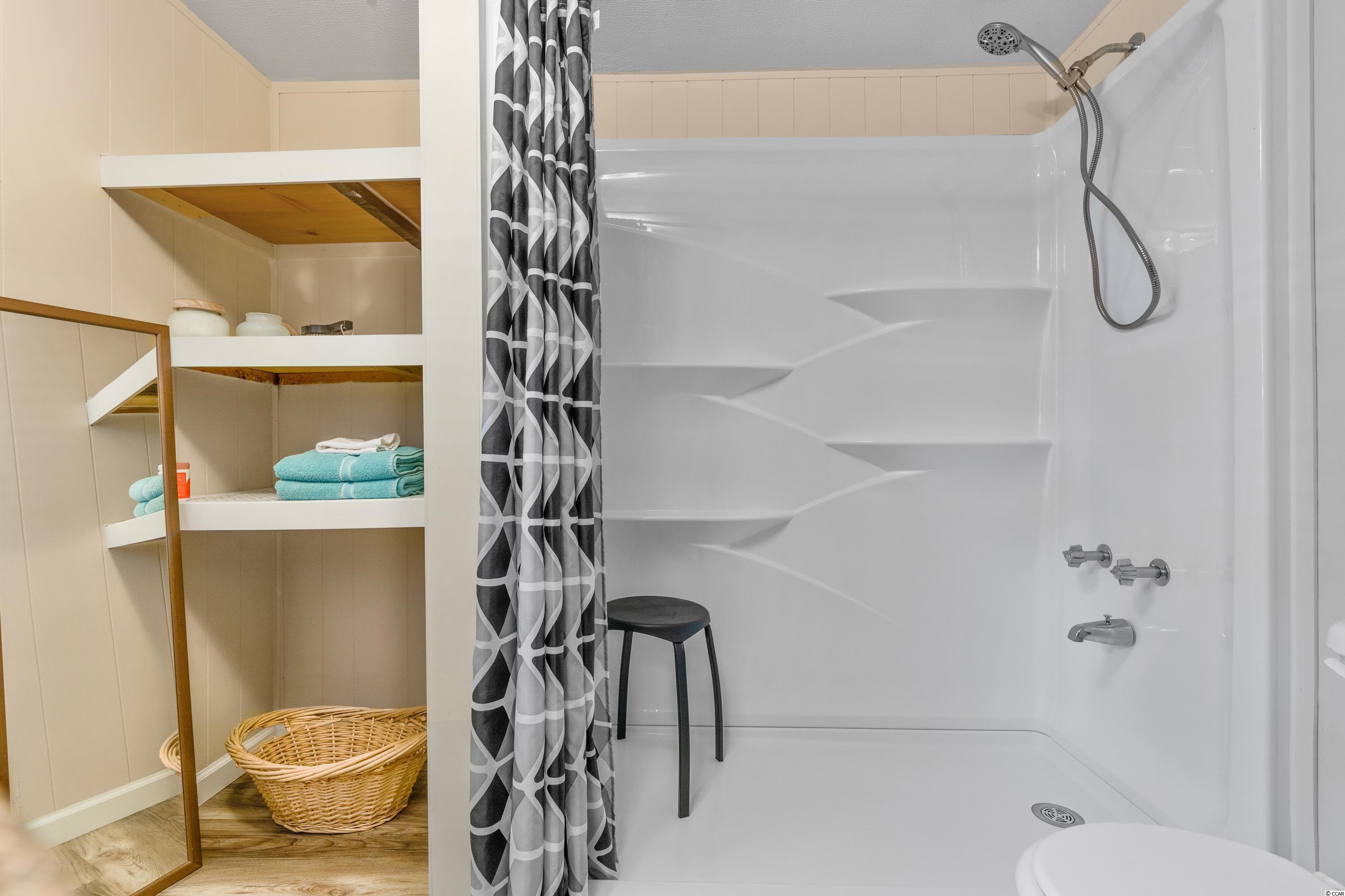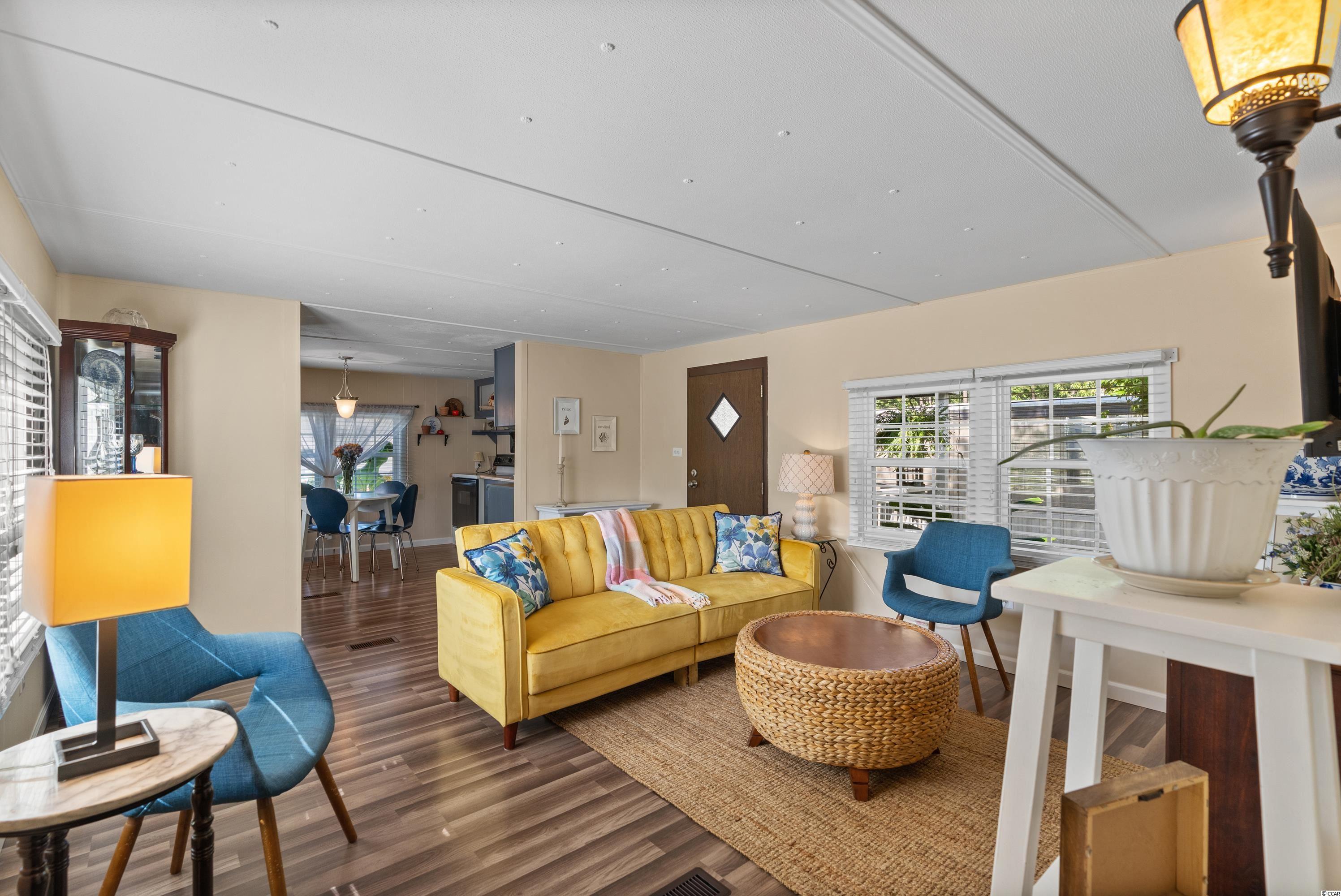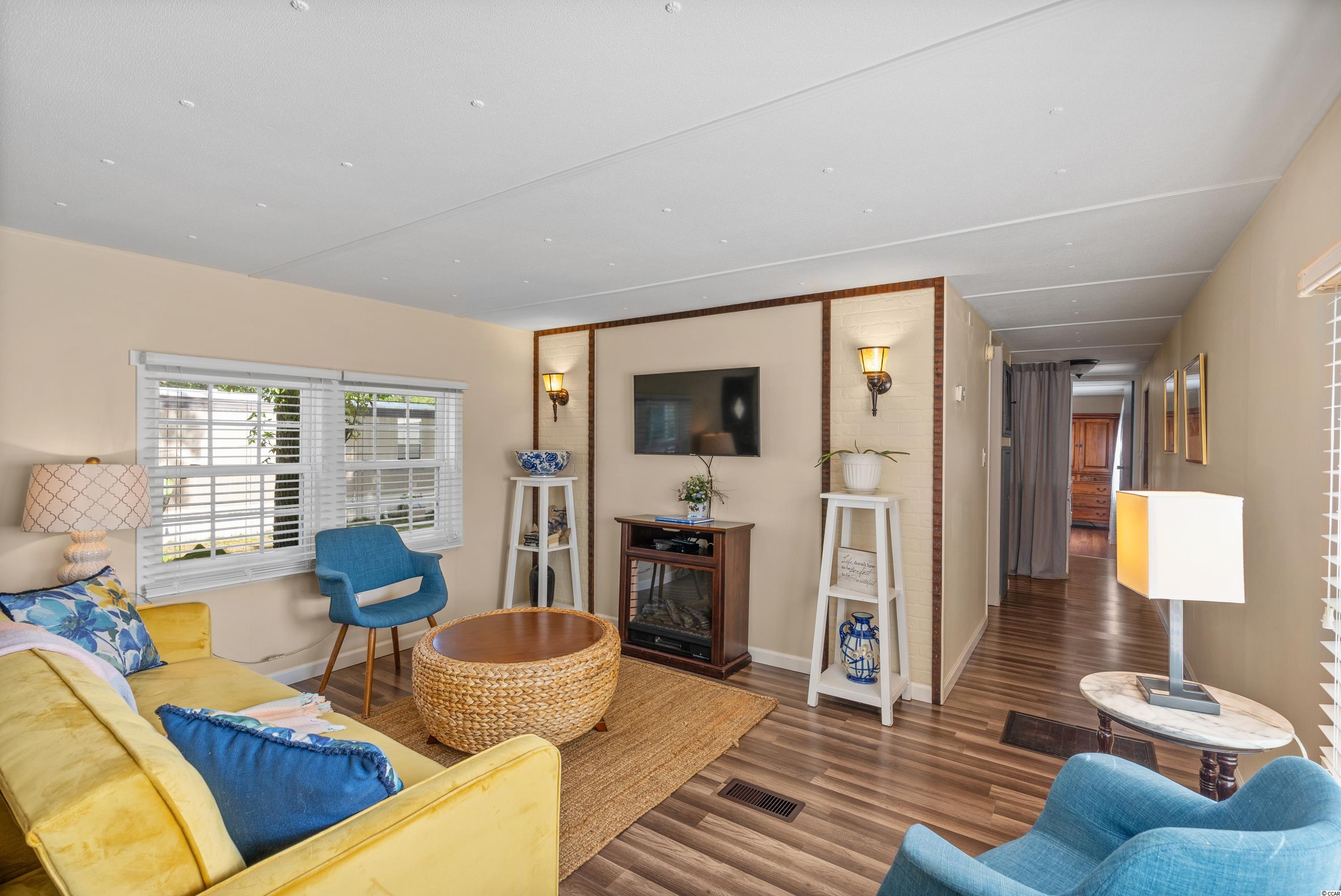 Close to the beach, this 2 bedroom 1 bath home, with lake view, has been redone from top to bottom! New windows, electrical, plumbing, beautiful new flooring and new subflooring, fresh paint, updated bathroom and kitchen with CUTE shiplap cabinets! Outside there is new siding and the roof was resealed 8-21. Relax in the Carolina Room or the awesome covered front porch. Located in the gorgeous Crystal Lake subdivision and just a short golf cart ride to Surfside Beach, restaurants, and shopping. Walking distance to elementary school. All though we welcome inspections, this home is being sold ""AS IS"" Welcome to your new Beach Home!