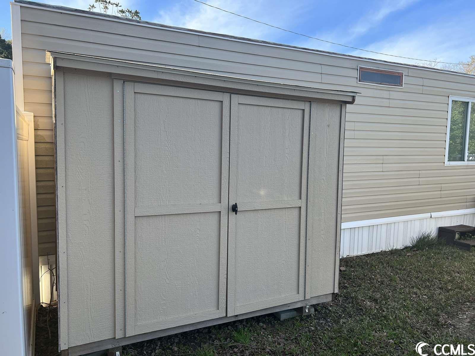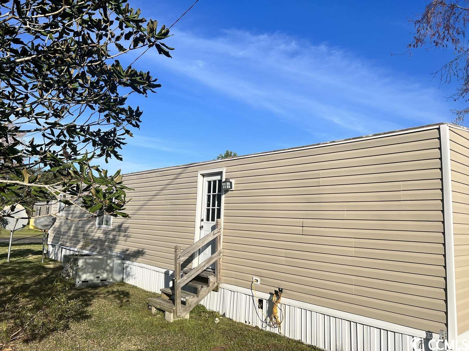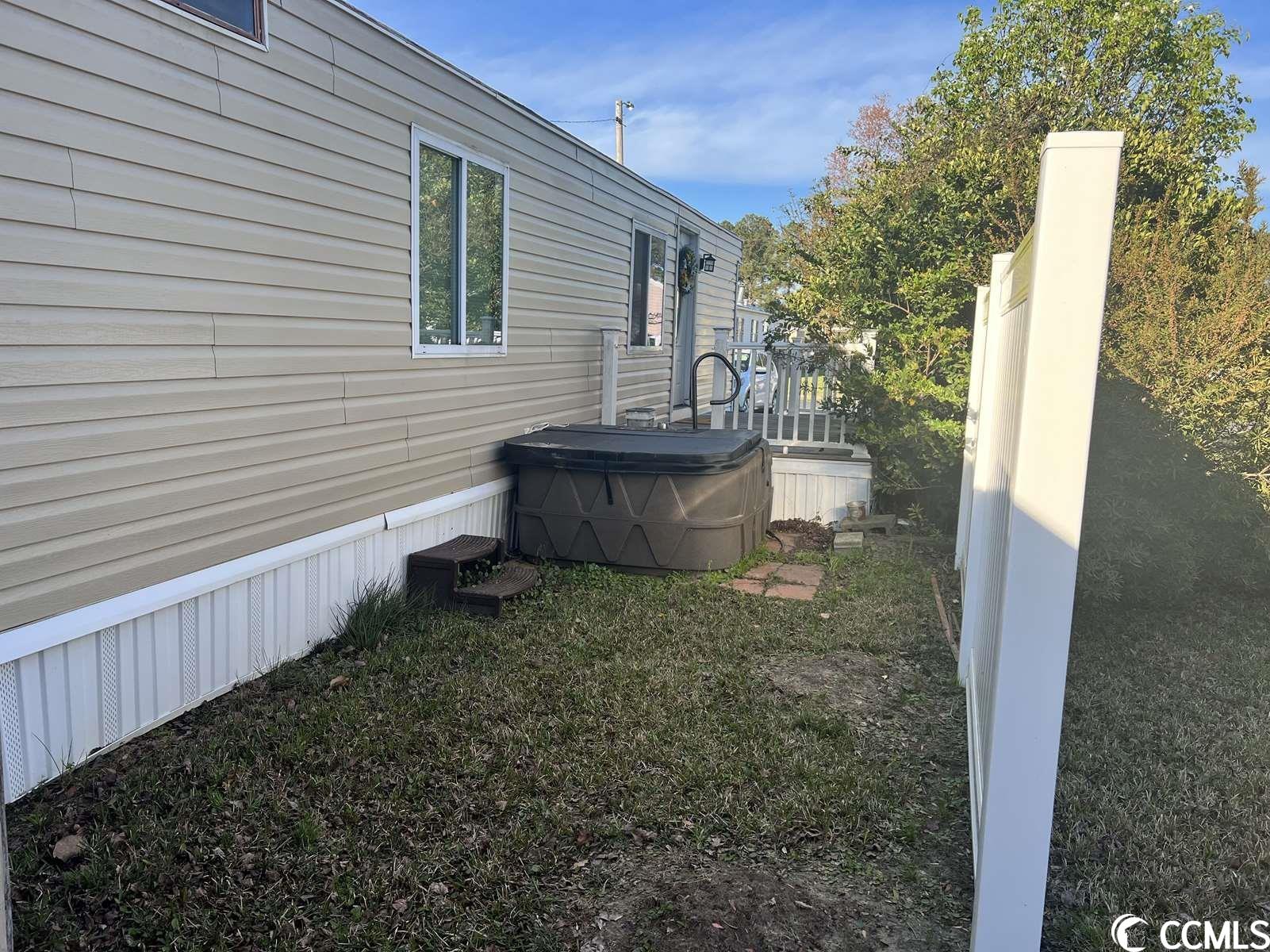 Here it is!! Crystal Lake is centered around a large lake with convenient access to the beach, restaurants and Market Commons for shopping! The community allows golf carts, motorcycles, and is pet friendly. The home has been updated with a new kitchen including stainless steel appliances. The HVAC was replaced in 2022 and the hot water is only a few years old. The owner has added a shed, a hot tub and some privacy fencing that will convey too! Lot lease on the property includes trash, cable, common electric, and common maintenance of the lake and surrounding areas.