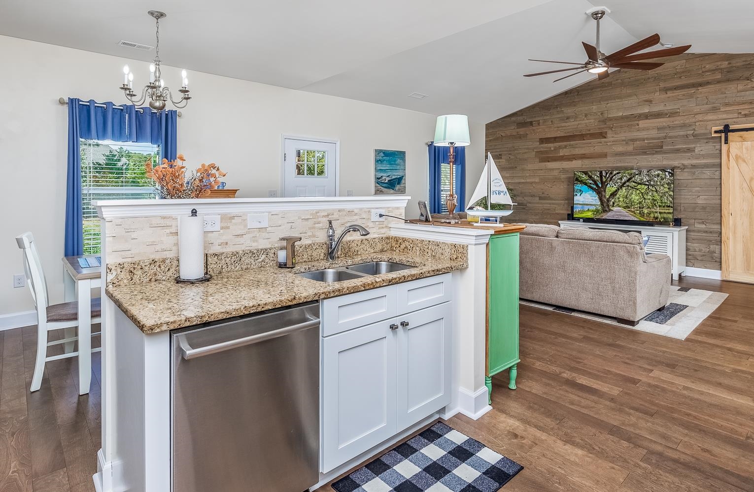 Welcome home to this nicely upgraded 3 bedroom, 2 bath home on a 1/2-acre lot with NO HOA fees! As soon as you walk in this home you will notice the beautiful real hardwood floors flowing through the foyer, living room kitchen and dining areas. The spacious family room features a beautiful wood panel accent wall, vaulted ceilings and oversized 72-inch ceiling fan ceiling fan with remote! The beautiful kitchen features staggered kitchen cabinets, granite counter tops, upgraded hardware, stone backsplash and upgraded stainless steel appliances! A rustic barn door leads you to the owners suite of the home that features 2 closets and tray ceiling with ceiling fan. The master bathroom features 2 new vanities with upgraded fixtures, a large soaking tub and separate walk-in shower! Both guest bedrooms feature upgraded ceiling and nice sized closets. The guest bath features a new vanity with upgraded fixture. The huge fenced in back yard features a pergola, concrete patio with an extra deck just off the patio as well as a 12x16 storage building! The spacious side load garage features an epoxy floor coating and garage door opener. This home sits on a double lot measuring .51 acres assuring no other homes can be built on either side of this home! Nestled is the desirable Kelly's Cove community this home is just a short drive from area attractions, schools, dining and shopping venues. Do not pass up your chance to own this unique property! Call today to schedule your showing!