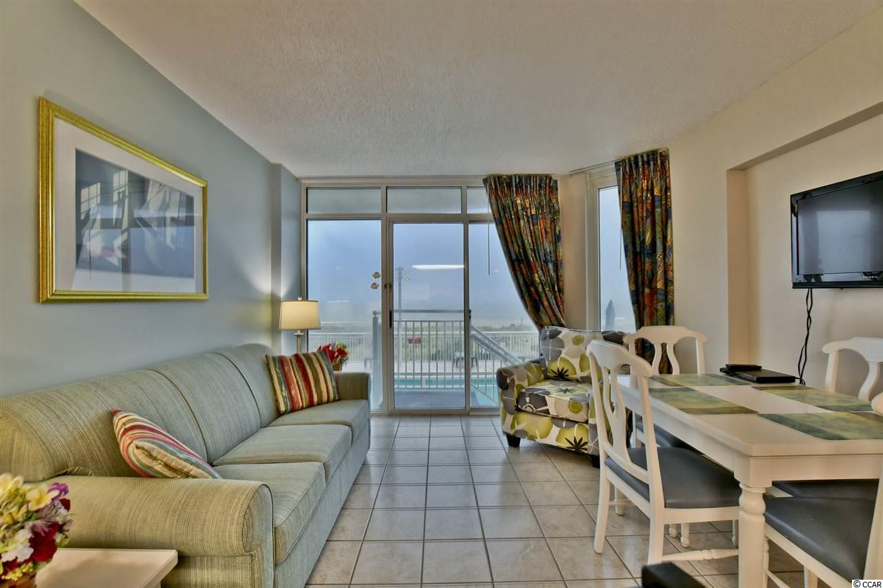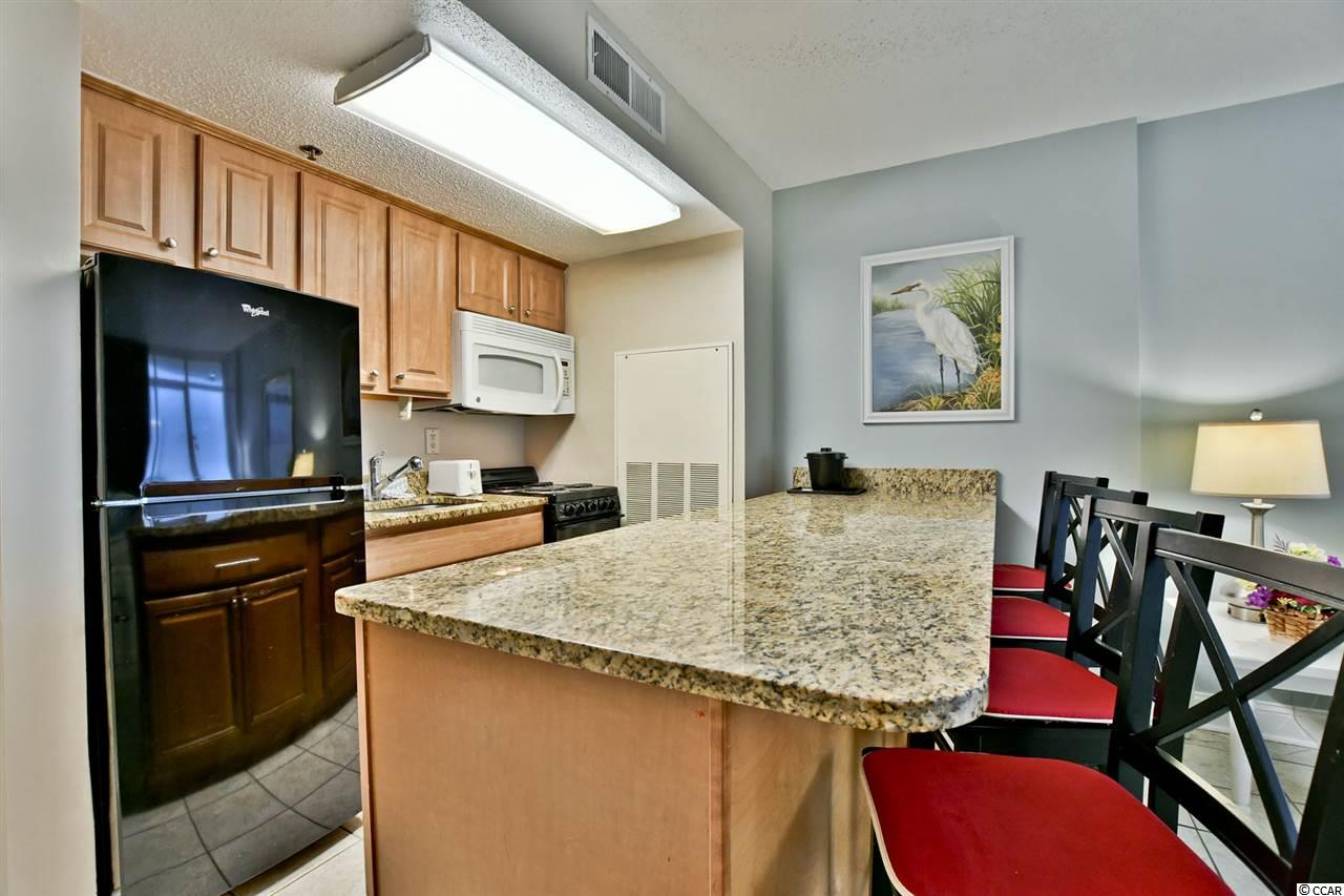 Fantastic fully furnished upgraded 1st floor Atlantica I beachfront condo (no steps into the unit!). Must be seen to fully be appreciated! This would be a great unit for someone with mobility challenges. Easily updated for disabled accessibility. Great rental income, same owner for 22 years! This unit does not have an galley kitchen like the other units, this kitchen faces the ocean, watch the sunrise while you have your breakfast! The unit was upgraded in 2016 with new kitchen cabinets, granite counter-tops, and full-size appliances. As well as an upgraded granite counter-top vanity. The living area furniture was also updated and a new queen-size sleeper sofa is in place as of 2019. The 2 queen mattresses were also replaced in 2016. This unit easily sleeps 6 or could even act as a 2-bedroom unit. The best feature is your own back exit out into the pool area and the beach! No need to go around or down an elevator! This is the only condo in the building with this type of patio! Not only is this a great rental unit, with a large full-sized closet in the bedroom but it also offers plenty of room for your personal vacation, snow-birds or full time residents! HOA fee is all inclusive (electric, cable, telephone and insurances). Resort amenities include indoor heated pools, hot tubs, lazy river, outdoor pool, and much more. This resort is located in the heart of Myrtle Beach close to everything including a very short walk to the Boardwalk and Skywheel. A short drive to Broadway at the Beach, entertainment, restaurants, and shopping!