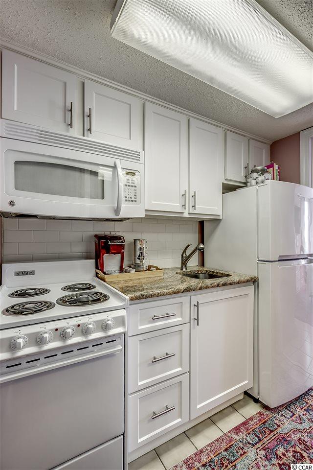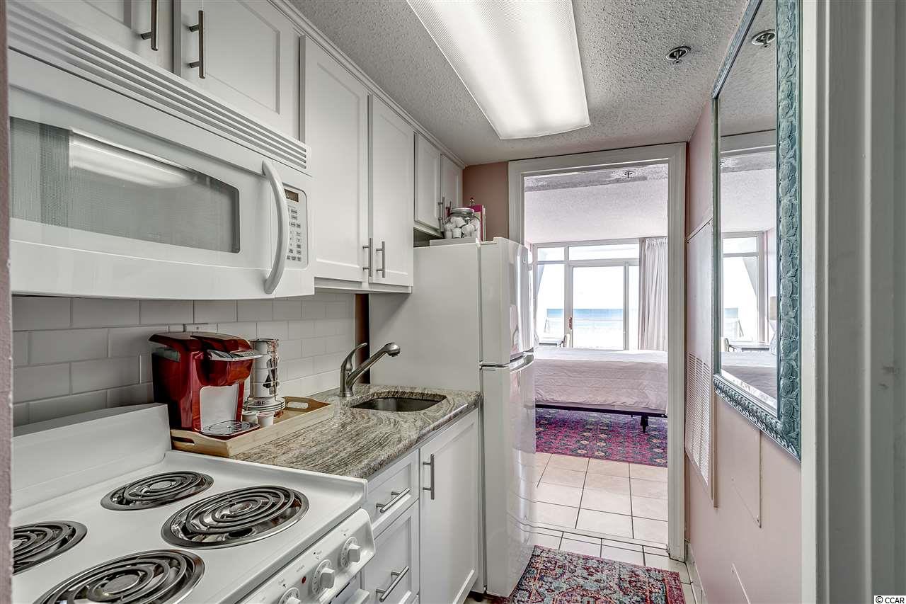 Take a look at this cute, whimsical 1 BR condo that feels like a permanent home. Sellers have put in new kitchen cabinets, granite countertop, new stove, new refrigerator, new futon (that can take sleep capacity to 6) and new master bed. It is a corner oceanfront unit with the bedroom off the balcony. There is lots of light and you can hear the ocean while you sleep or study at your desk. There is also a murphy bed in this room. So, you enter this unit into the living room/dining room combo instead of the bedroom. It is cozy and is being sold fully furnished or not (you pick). You have great pool and ocean views from the third floor level. This unit has a great rental history with raving reviews on Airbnb that spans many years. This is the perfect condo for a home, 2nd home or great investment and you cant beat the location and proximity to all Myrtle Beach has to offer.