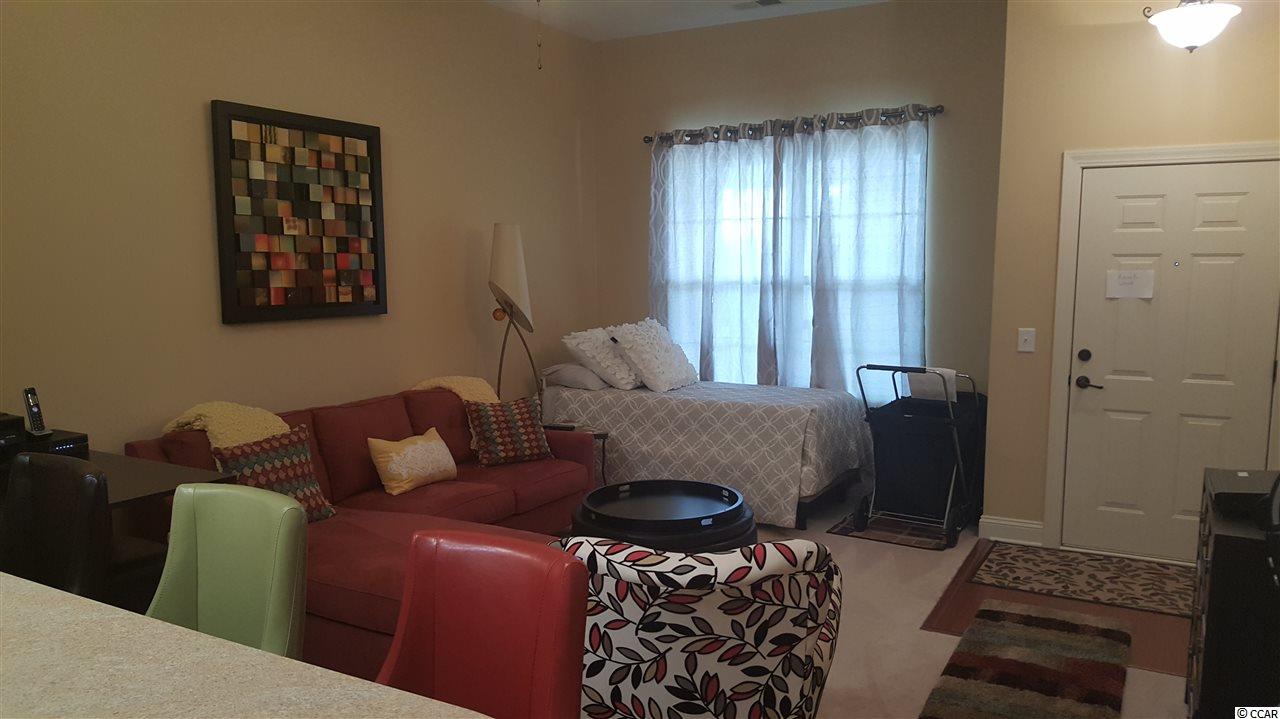 Located in one of the most successful condo developments in the Myrtle Beach area, this fourth floor unit is a 1 bedroom 1 bathroom beautiful condo in the very popular Queens Harbour Development with direct views of the swimming pool and clubhouse! This unit has 11' smooth ceilings throughout, an outside storage closet and plenty of space in all the rooms including the kitchen which boasts a breakfast bar and pantry. The location is superb with shopping, dining and recreation steps away. The amenity package includes a resort style swimming pool and clubhouse, conveniently located picnic areas with grills and an elevator in every building. Please note that the photos are of an existing model.