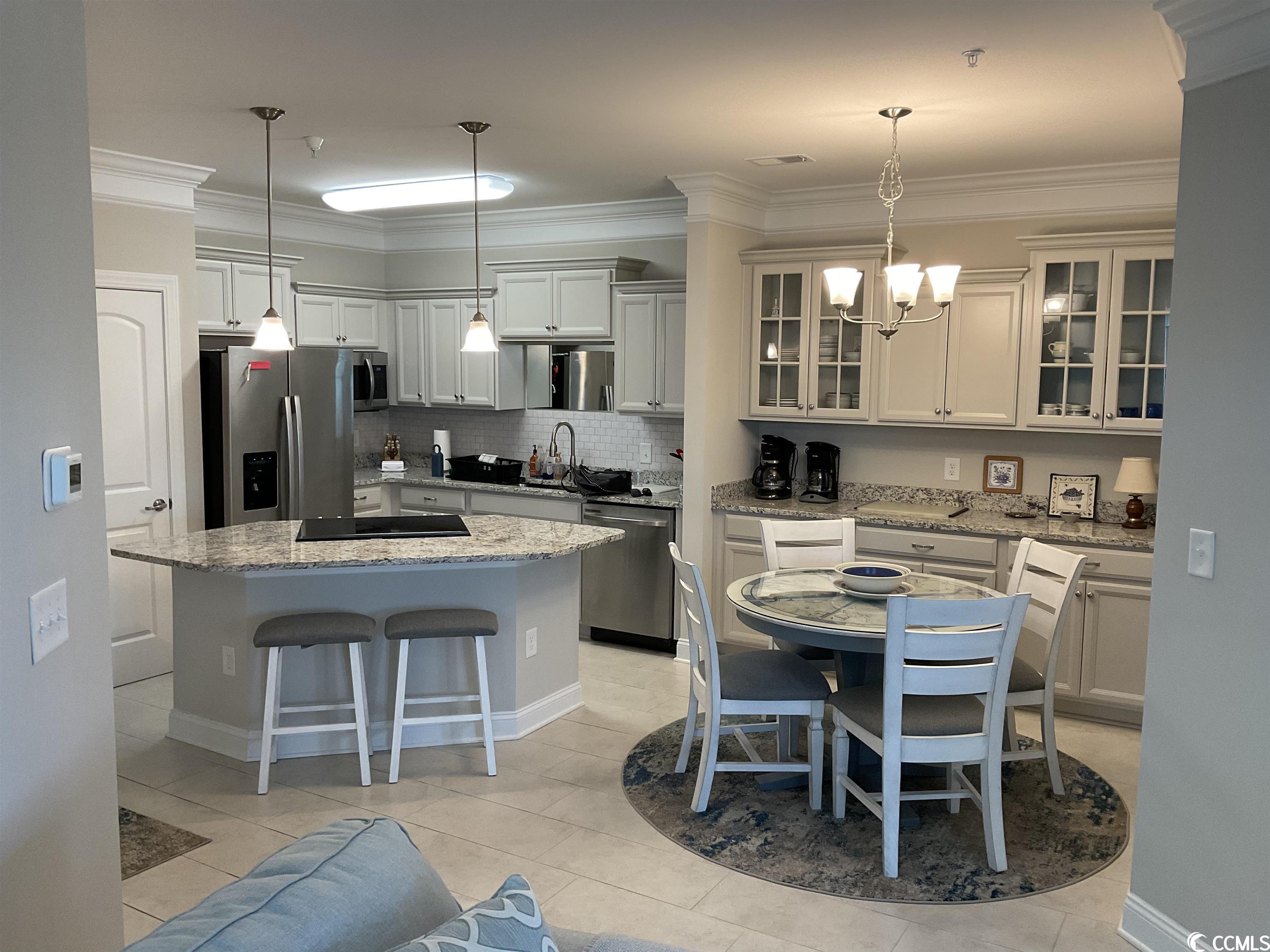 A beautiful 3rd floor end unit condo located in the Myrtle Beach area at Queens Harbour. 2 dual master bedrooms, 2 bath (1 with shower only & the other with tub/shower combo. Many upgrades for this condo include tile flooring, crown molding in living room/kitchen area, glass cabinets in kitchen, glass door in master suite shower, Bali insulated waffle window treatments throughout. Granite counter tops in kitchen area adds to the beauty of this condo with a screen balcony and your own outside locked storage unit on the same floor. Amenities include a resort style swimming pool with club house, picnic area with grills, exterior elevator for all 4 floors. This unit is 2 years old with minimal use by owners only (less than 8 months in 2 years). A great location that is close to beaches, shopping, dining & recreation. This beautiful condo is sure to please, and is a must see.