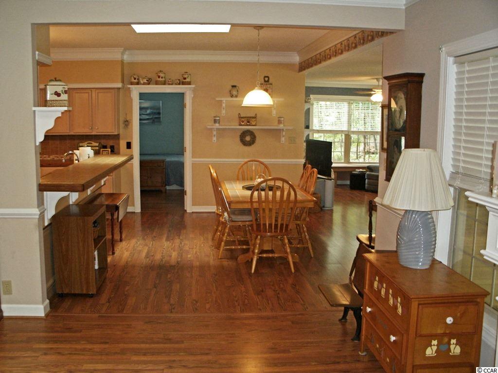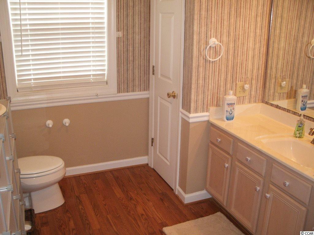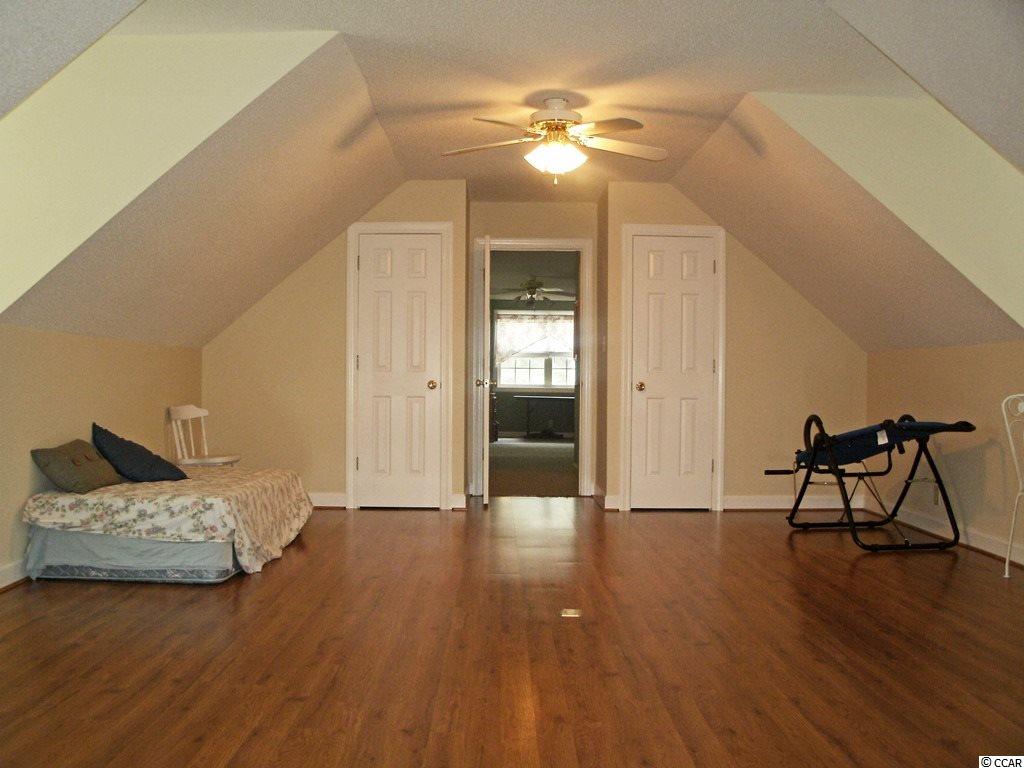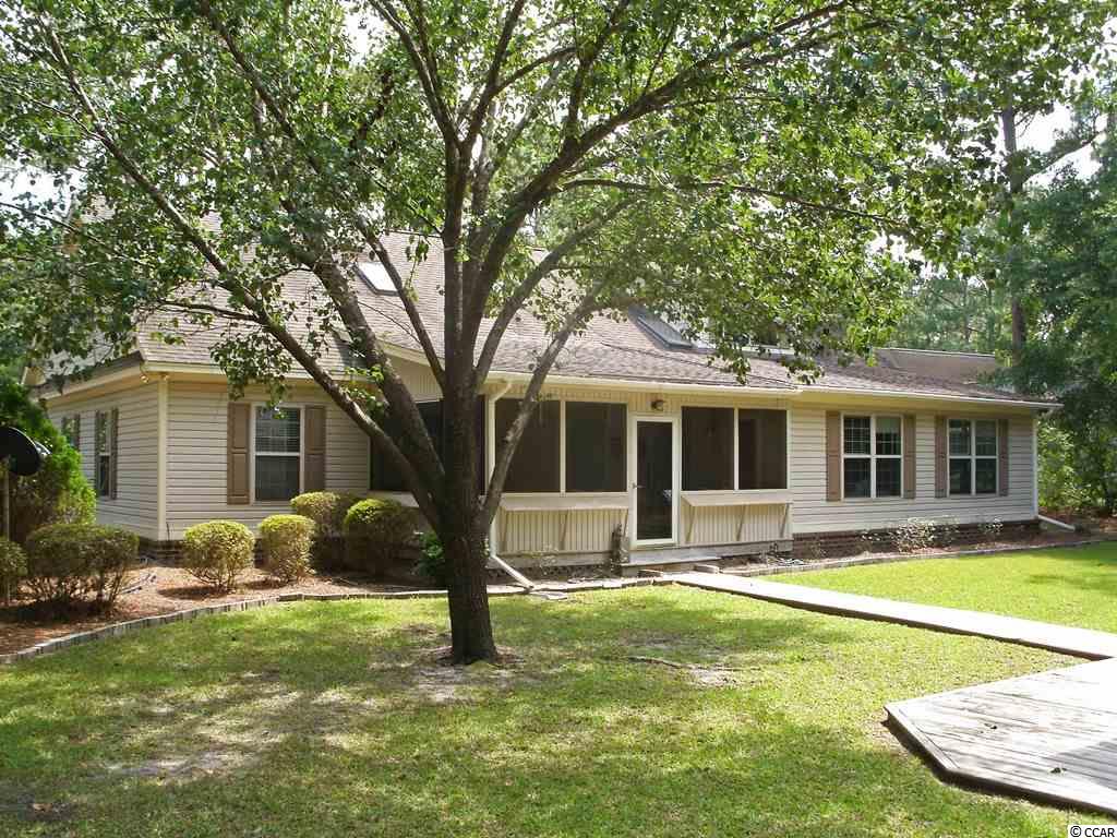 Spacious home with tranquil, wooded lot in Hagley Estates. Two-story home boasts living room with fireplace and solid-surface flooring throughout common areas. Kitchen offers work island, breakfast bar and breakfast nook. Desirable split bedroom plan on main floor. Master suites on both floors. Top floor additionally has bonus room. Screened porch overlooks spacious backyard. Detached garage and workshop offers lots of storage space. New HVAC upstairs. No HOA. Close to beach, shopping and public boat launch on Waccamaw River.