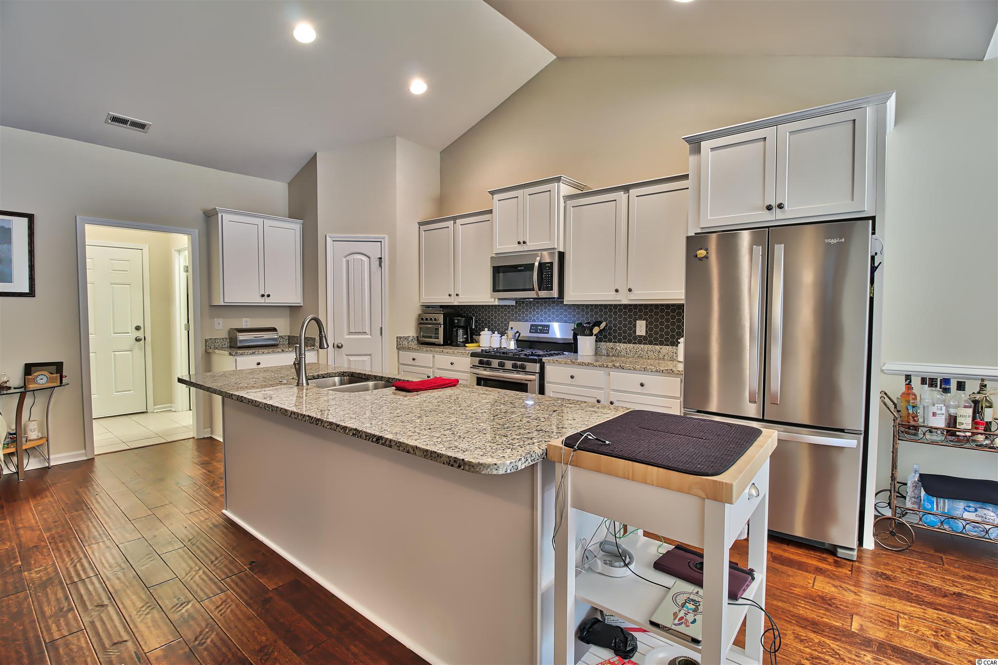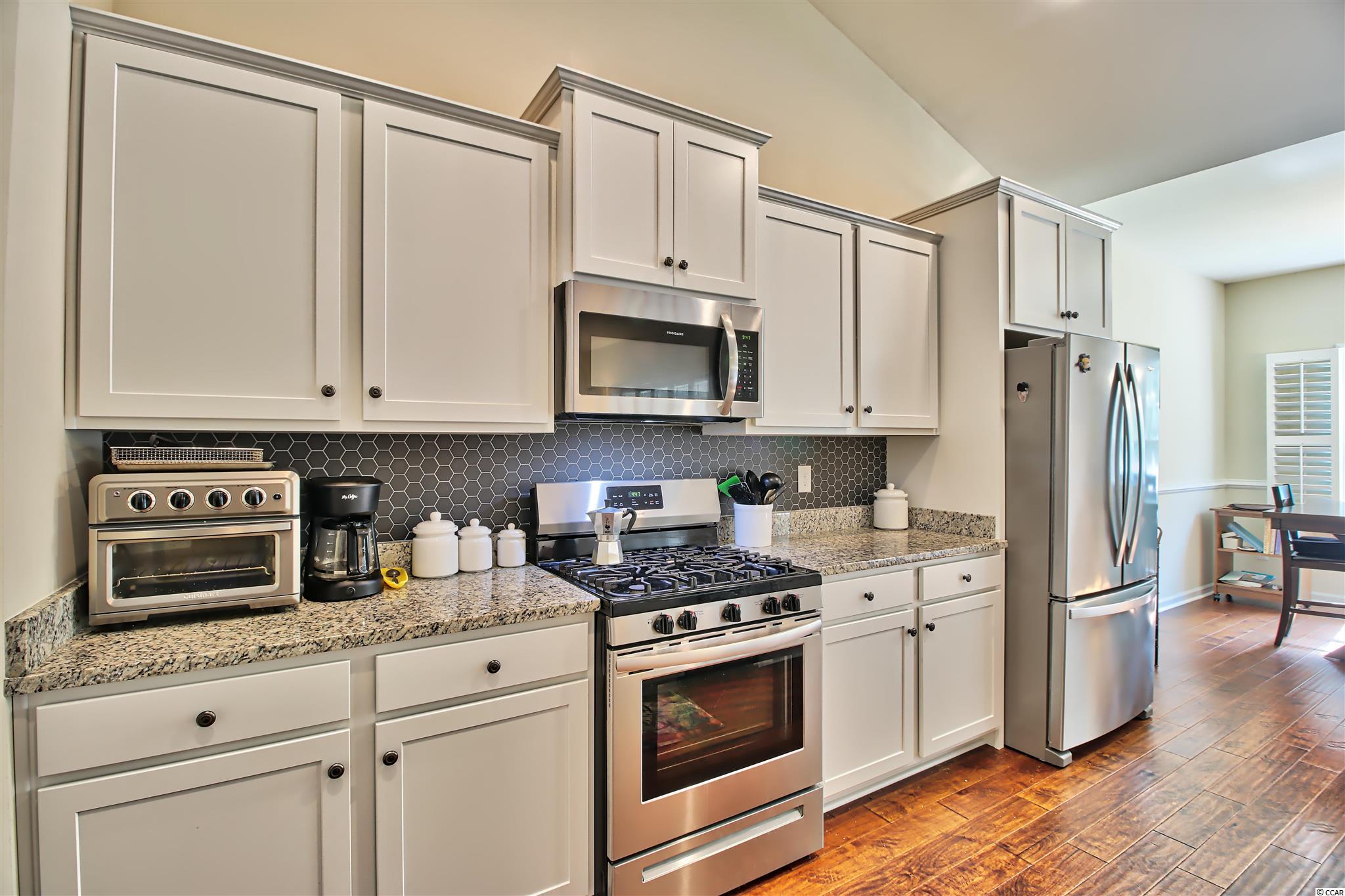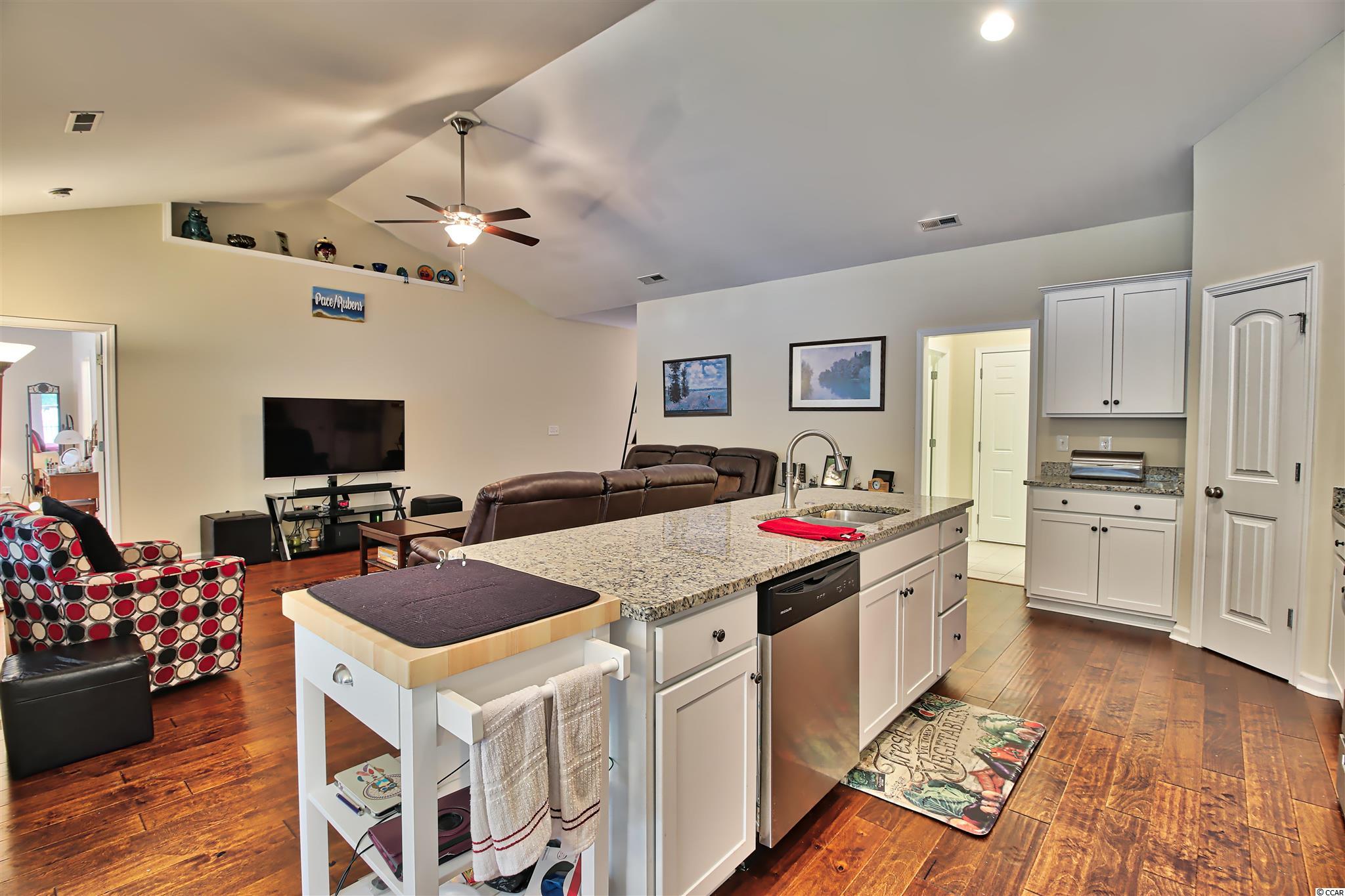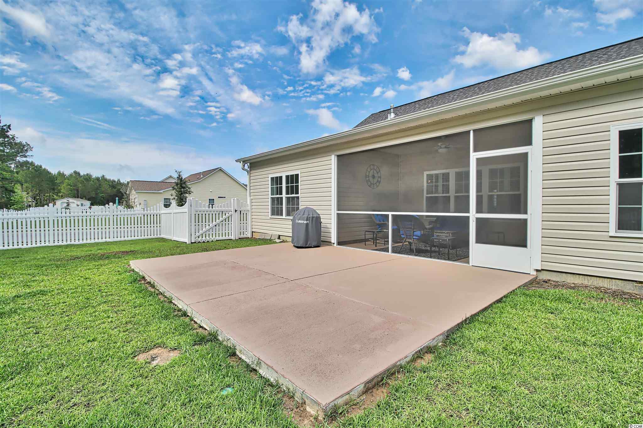This is a beautiful 3-bedroom 2 bath home built in 2018 and is located in desirable Rivertown Row, which is a Natural Gas community. This home has an abundance of features that you will fall in love with especially the Kitchen which features an 83 granite island, a large pantry, vaulted ceilings and pull-out drawers in all lower cabinets for easy access. The Washer Dryer has its own room and you have a great Flex space, a 98 x 56 room that can be the office, the pet palace or just storage The cathedral Kitchen, Great Room and Dining area are one space which makes it terrific for entertaining your guests or just hanging out with family. Other interior features include plantation shutters throughout, Wood type flooring in Great Room, Dining and Kitchen, Ceramic tile in baths, a super-sized linen closet in Master Bath and carpet in Bedrooms. You also have storage above the garage with pull down stairs. Exterior features include a beautiful corner, tree lined .22 acre lot with a vinyl fence for privacy. The screen porch and the oversized patio creates a great space for those outside gatherings. And lets not forget the isprinkler system to keep your lawn nice and green. This home certainly has that tucked away feel yet it is just minutes from shopping and restaurants. Historic downtown Conway, located on the Waccamaw River, has a fabulous Riverwalk and also has an abundance of shops and restaurants to choose from.. Plus a short drive brings you to Myrtle Beach to enjoy all that it has to offer. Book your appointment today, this one wont last long.