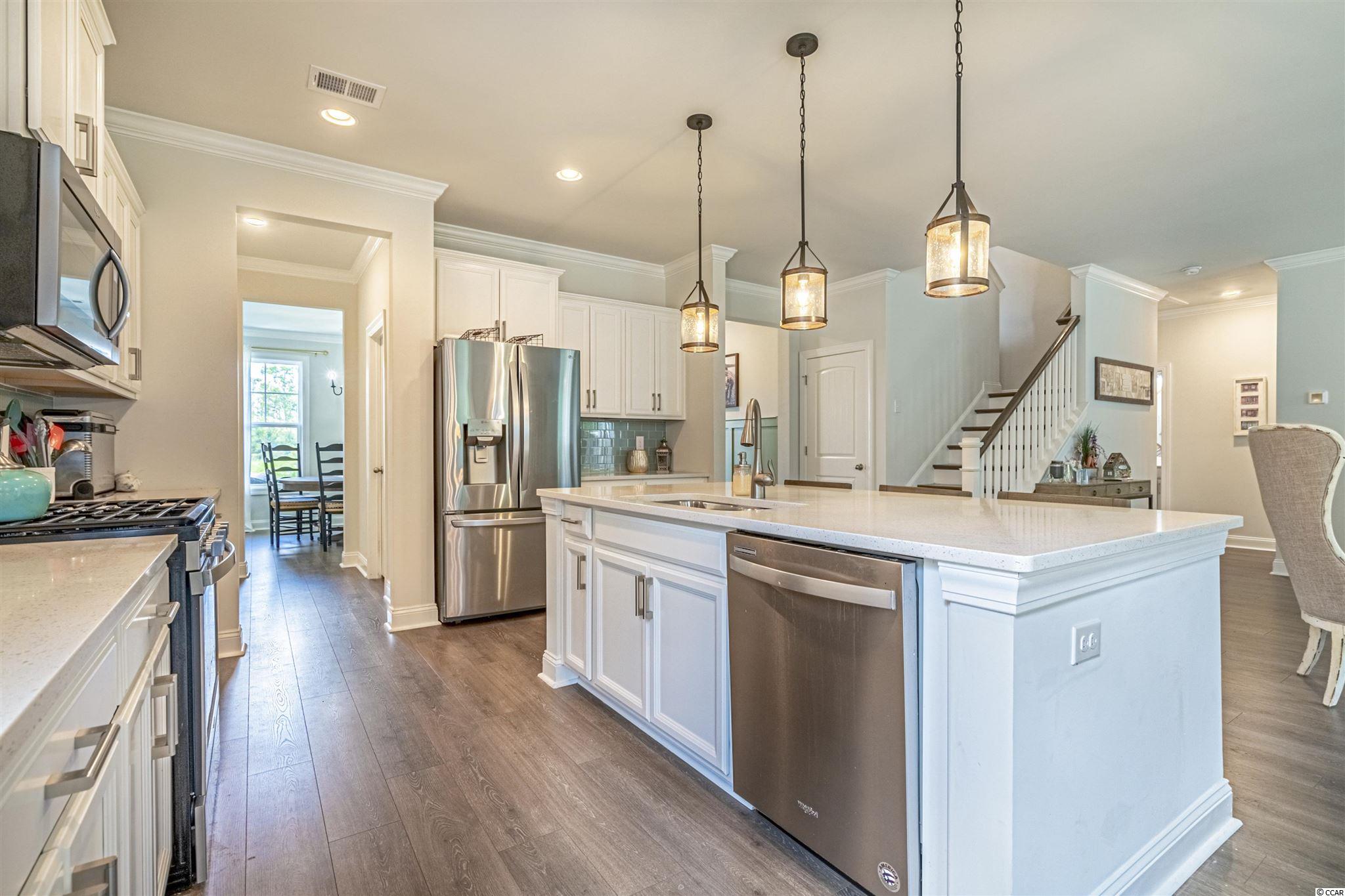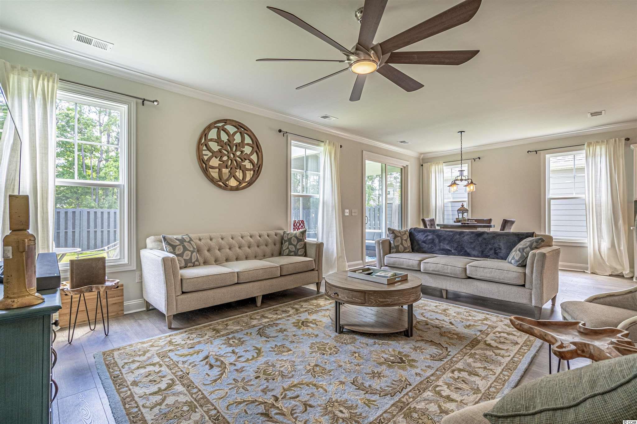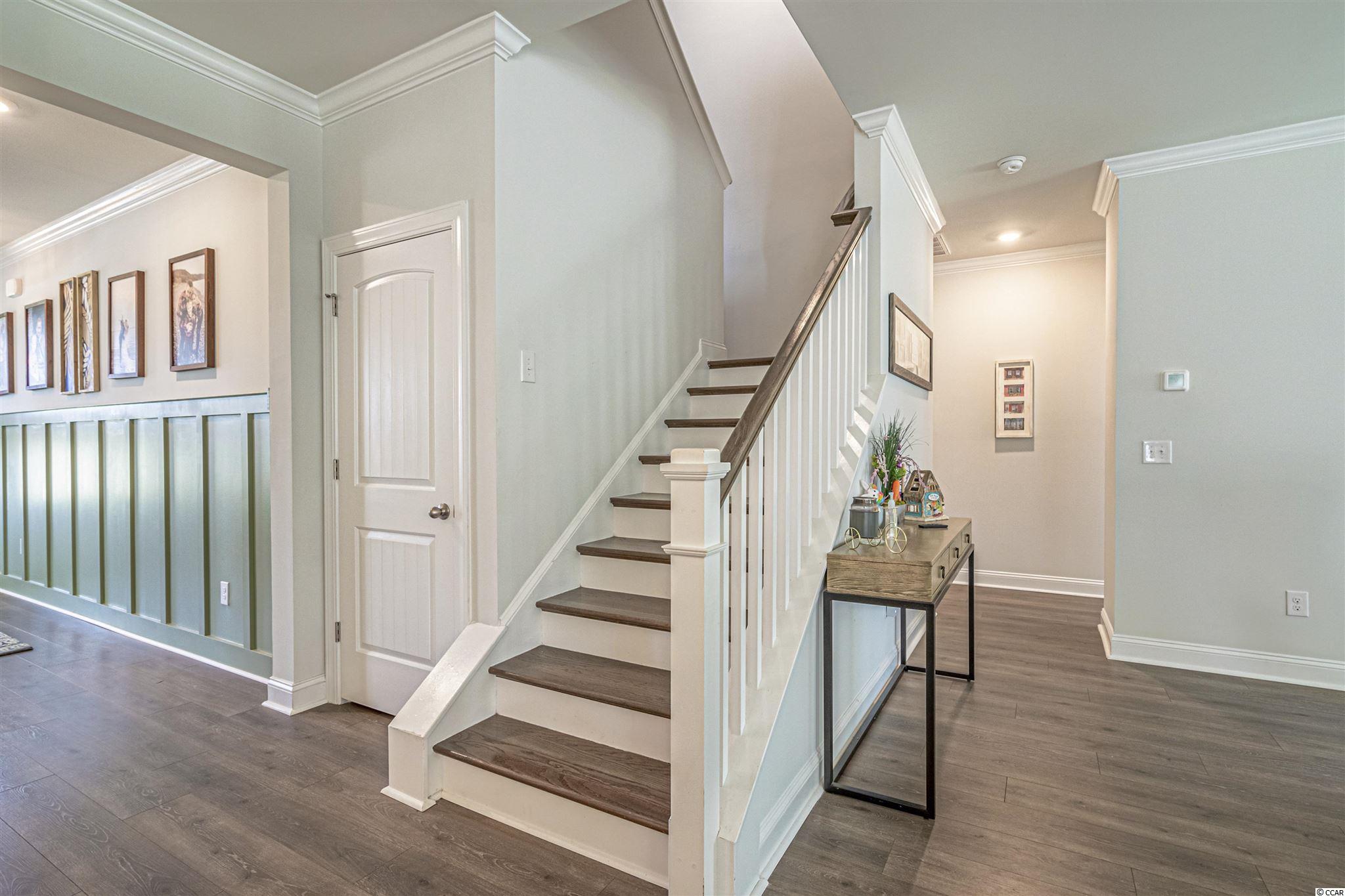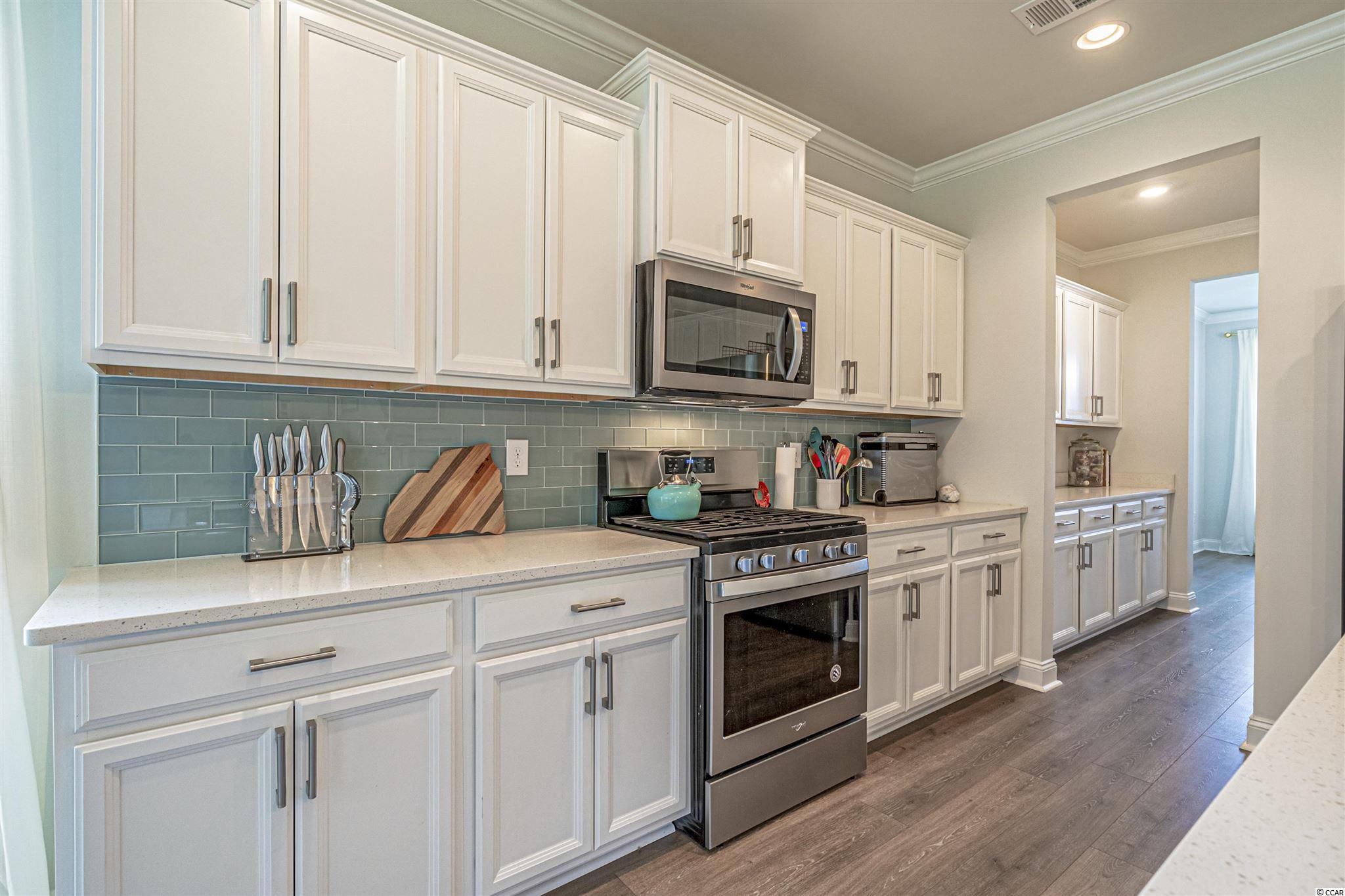 You don't want to miss this better than new home, loaded with upgrades, on a private lot, with lots of natural light. Located a short golf cart drive from the shops and restaurants of Market Common, parks, medical facilities, the beach and the Myrtle Beach State Park, this spacious house has top of the line features like quartz counter tops, stainless steel appliances, natural gas stove and heat, gigantic master bedroom and bath, water softener and purification system, custom moldings and trim, updated light fixtures, custom fans, and a first floor bedroom and bath. Relax on the screened-in porch, the covered front porch, and second floor balcony. Take a stroll around the beautiful neighborhood, and enjoy the on-site pool and pickle ball courts. Come see this beauty before it's gone. Owner is a licensed SC real estate agent.