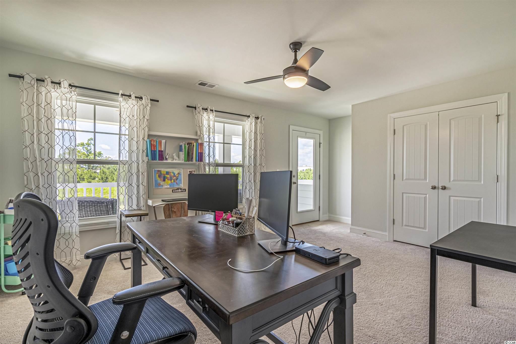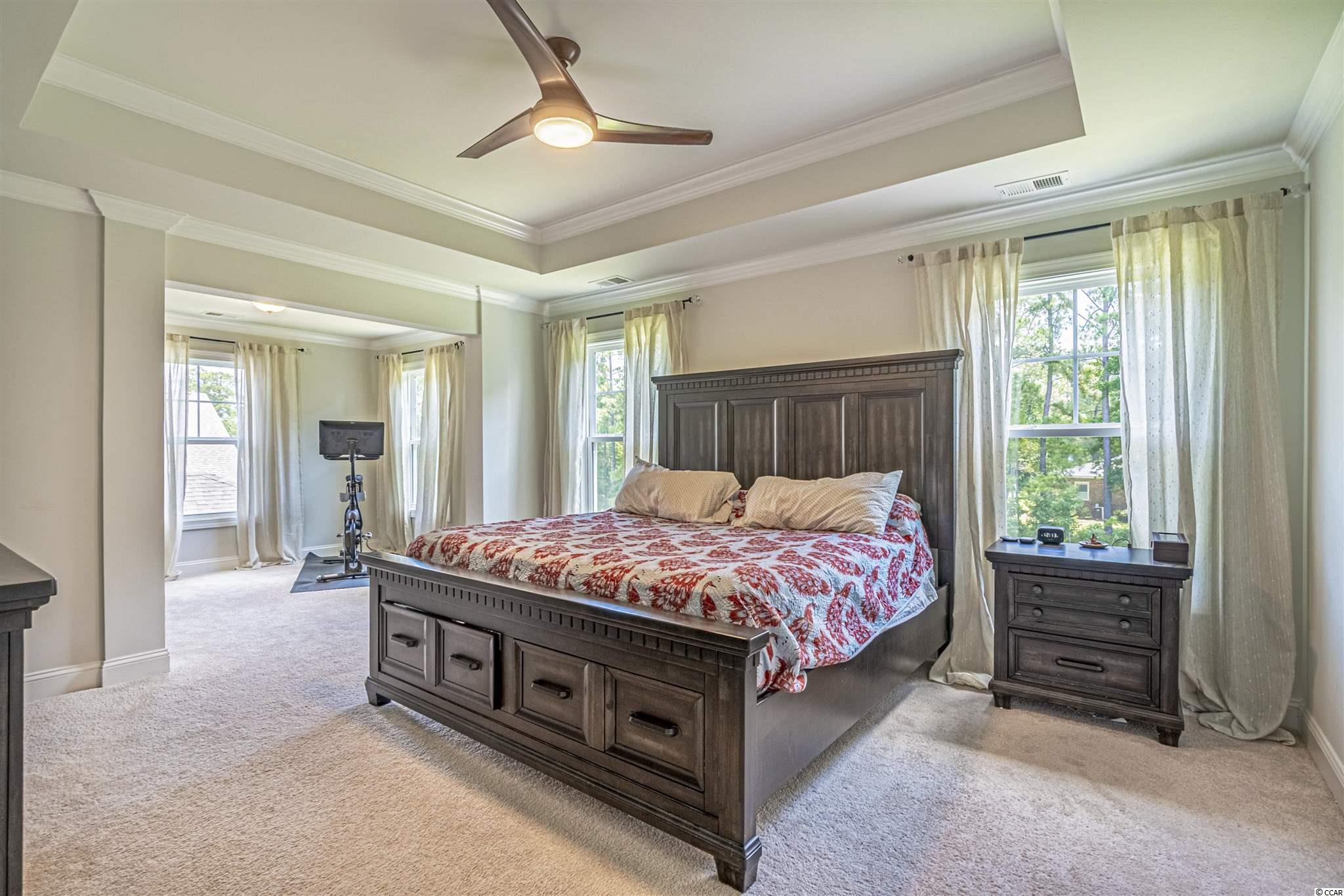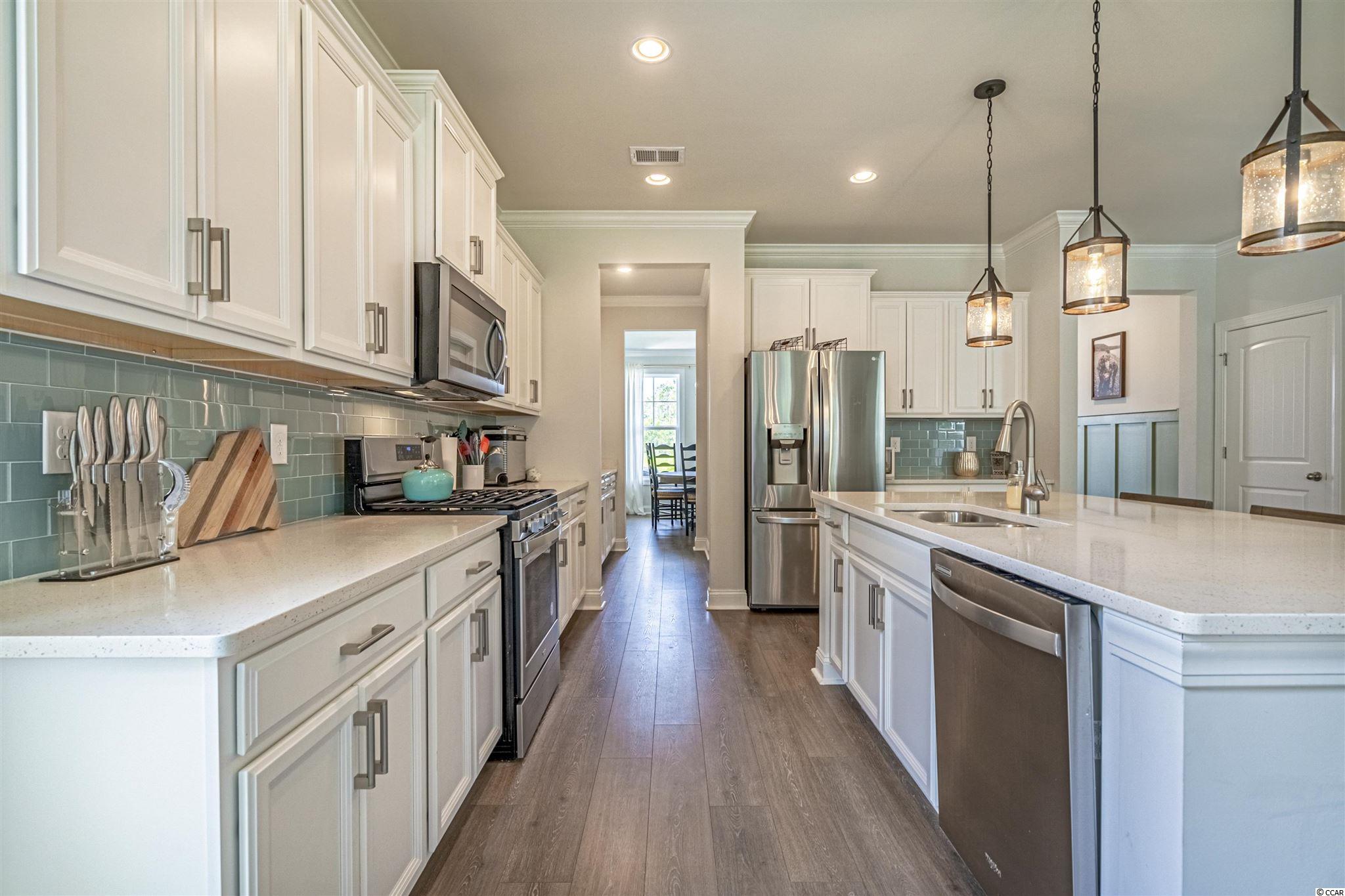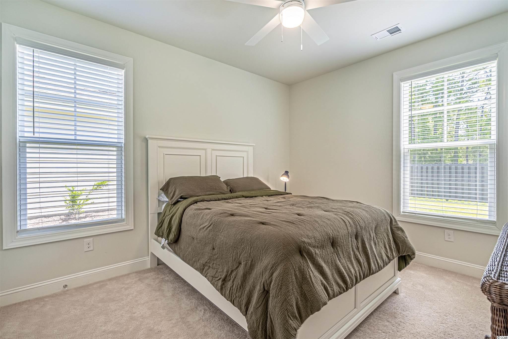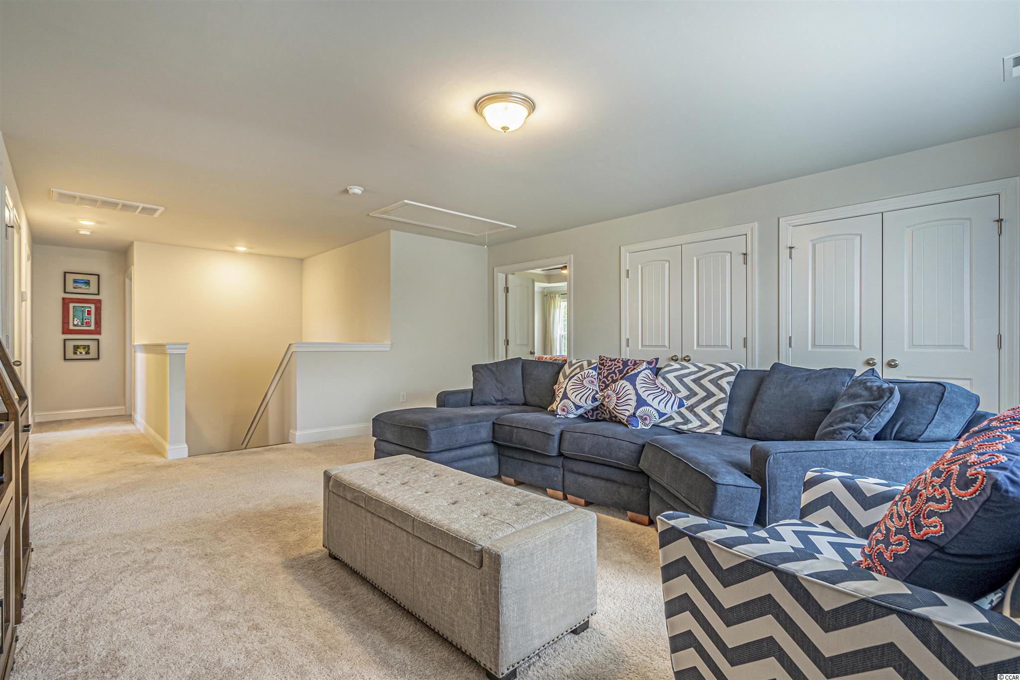 You don't want to miss this better than new home, loaded with upgrades, on a private lot, with lots of natural light. Located a short golf cart drive from the shops and restaurants of Market Common, parks, medical facilities, the beach and the Myrtle Beach State Park, this spacious house has top of the line features like quartz counter tops, stainless steel appliances, natural gas stove and heat, gigantic master bedroom and bath, water softener and purification system, custom moldings and trim, updated light fixtures, custom fans, and a first floor bedroom and bath. Relax on the screened-in porch, the covered front porch, and second floor balcony. Take a stroll around the beautiful neighborhood, and enjoy the on-site pool and pickle ball courts. Come see this beauty before it's gone. Owner is a licensed SC real estate agent.