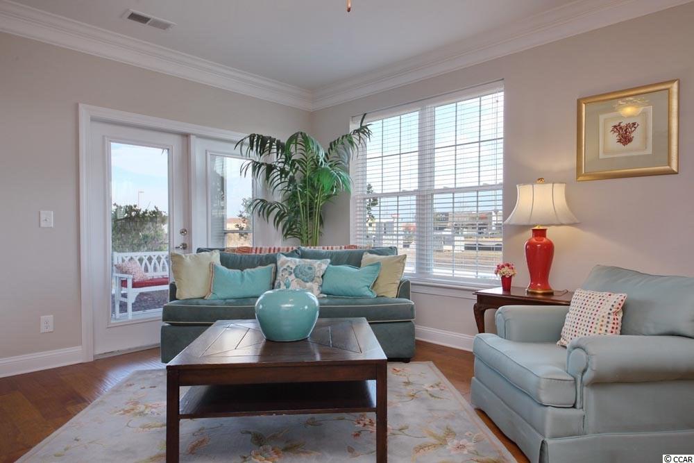 Located in one of the most successful condo developments in the Myrtle Beach area, this top floor end unit is a 3 bedroom 2 bathroom beautiful condo in the very popular Queens Harbour! Building has an oversized ELEVATOR to all floors, outside storage, split bedroom floor plans with entry to the Master Suite from the Family Room, 9' smooth ceilings and a screen porch. The location is superb with shopping, dining and recreation steps away. The amenity package includes a resort style swimming pool with a club house and conveniently located picnic areas with grills.