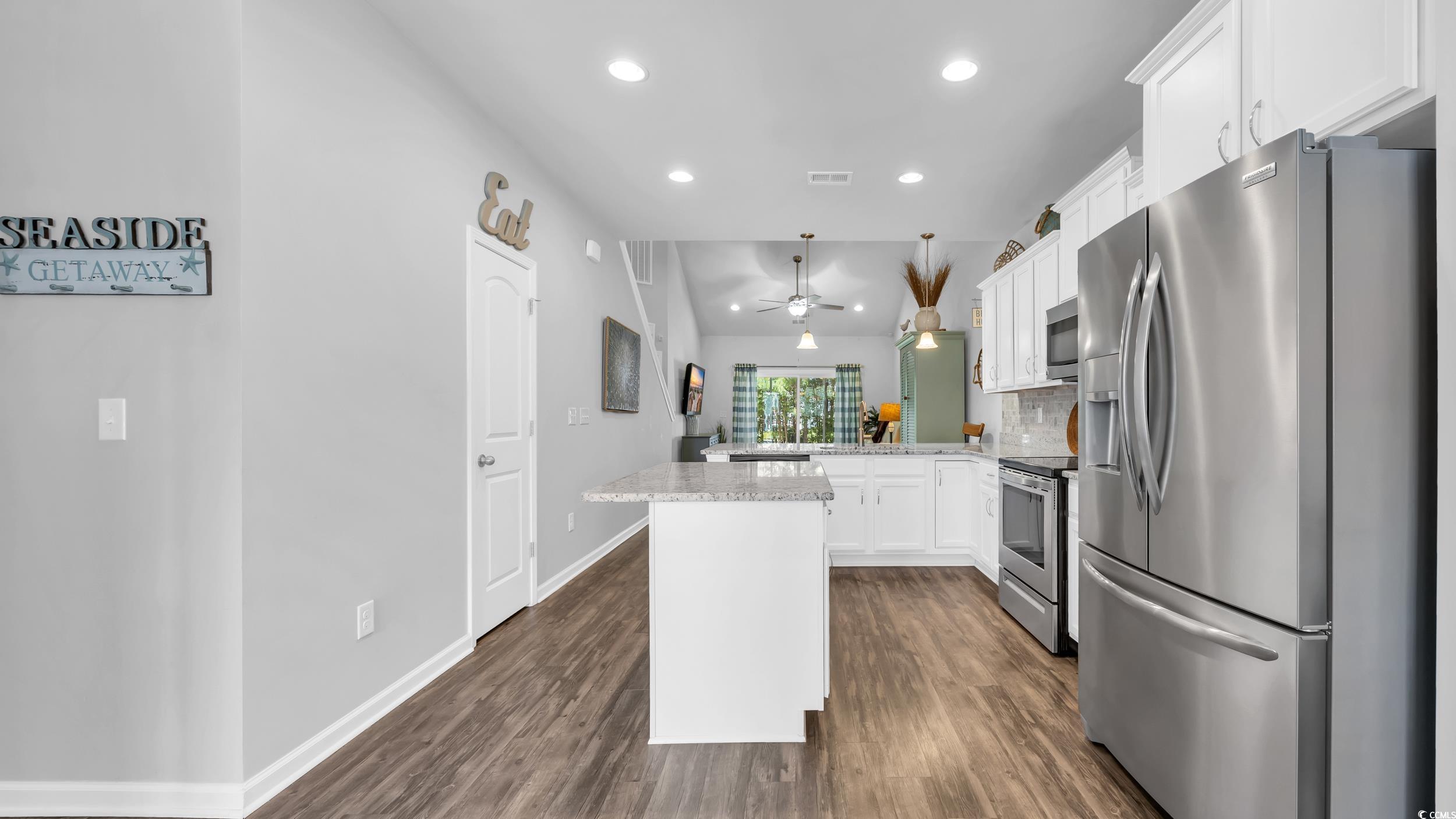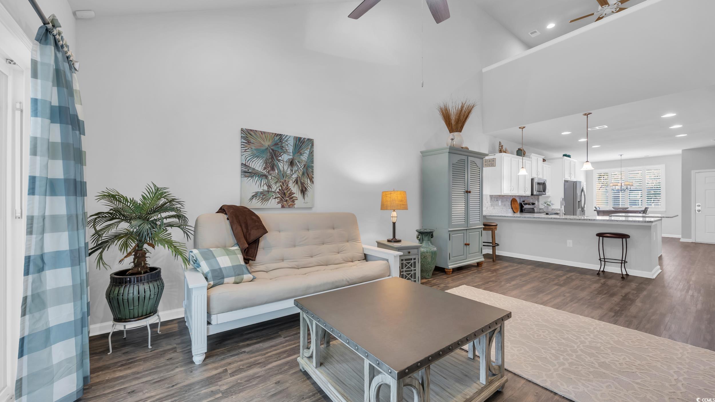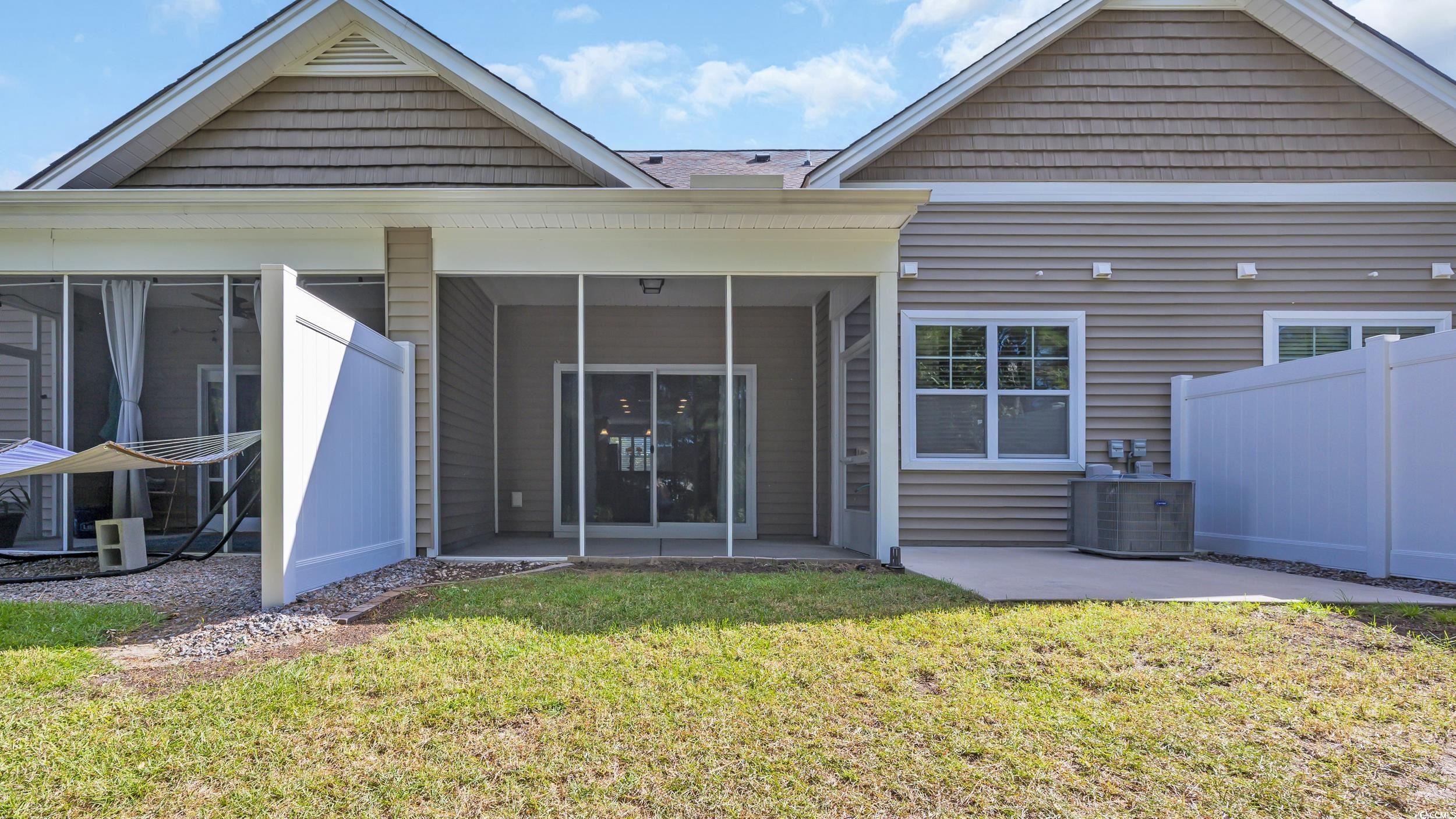 Welcome to this beautifully maintained 3-bedroom, 2.5-bath townhome with a one-car garage, located in the highly desirable Berwick section of Windsor Plantation. This home is truly move-in ready and offers an inviting open-concept layout with vaulted ceilings in the living area, a convenient half bath, and a laundry room all on the main level. The kitchen is designed for both style and function, featuring granite countertops, stainless steel appliances, generous cabinet space, huge walk in pantry and a breakfast bar with seating area. The first-floor primary suite includes a spa-like bathroom with dual sinks, a walk-in shower, and a large owners walk-in closet. Upstairs, youll find two guest bedrooms, plus a versatile loft that could be used for an office or additional entertainment area. The upgraded storage room has been expanded and insulated to create additional living space and is perfect as hobby area or for extra storage. Enjoy the outdoors from the screened-in back porch overlooking a private backyard lined with trees. As a resident you will appreciate low maintenance living with landscaping provided by the HOA plus all exterior home maintenance. The monthly dues also cover access to a community pool, clubhouse as well as basic cable service. Windsor Plantation is a sidewalk-lined community in a prime location that puts you minutes from shopping, dining, medical facilities, airport and the beach. When you drive into this community you will feel like you are coming into a resort, with fountains and palms lining the street!