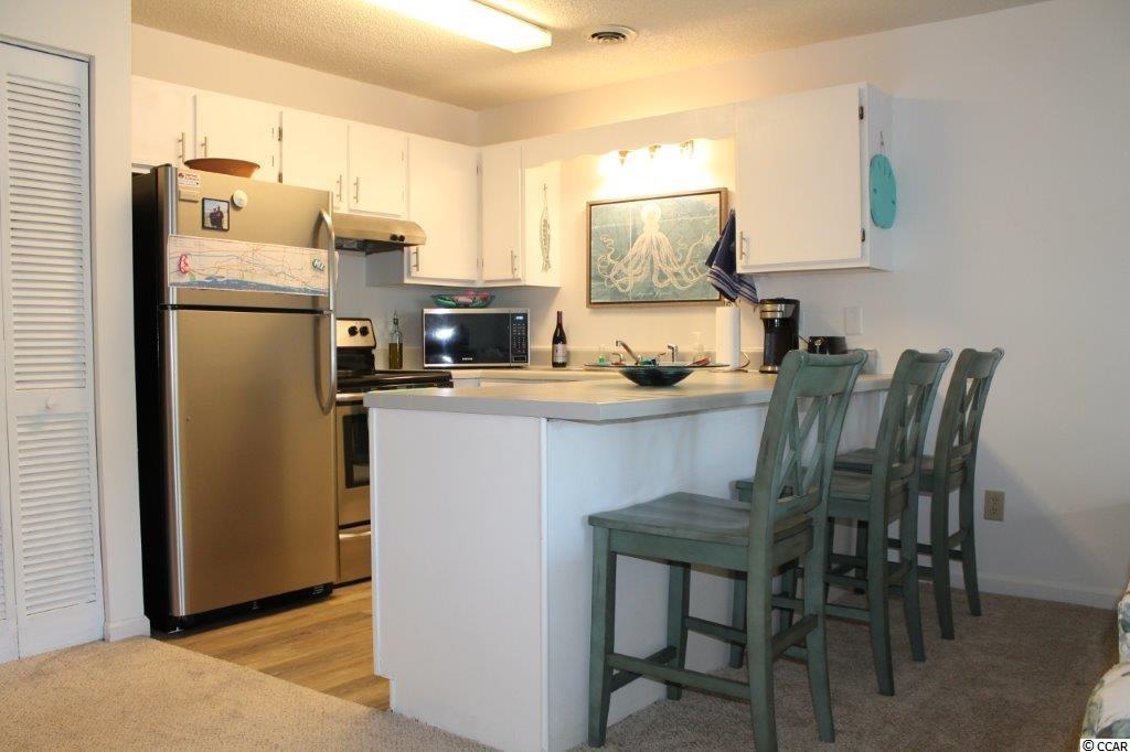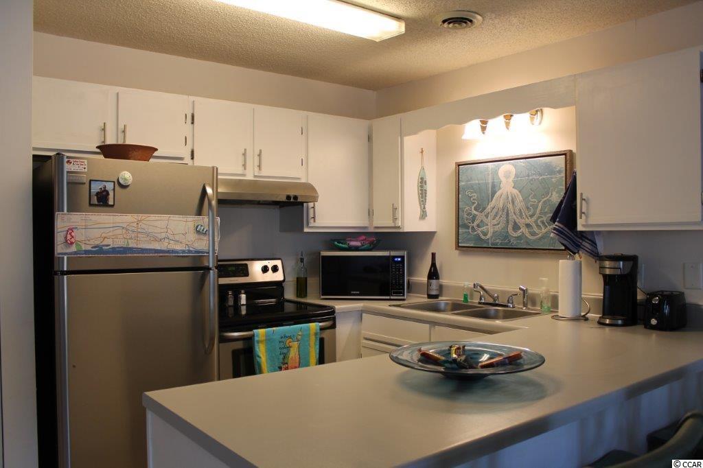 Move right in to the furnished condo, a perfect beach getaway. The moment you step inside you'll feel right at home with new carpet, flooring and paint. The living area is open and spacious with a great view of the pool. The kitchen features new stainless appliances, a pantry and a breakfast bar. The master bedroom has vaulted ceilings and a skylight. The storage room has a washer and dryer and room for extra beach supplies. Relax on the back porch and enjoy the Carolina weather. This condo is tucked away in a back corner of Deerfield and conveniently located to all Surfside Beach has to offer. Square footage is approximate and not guaranteed. Buyer is responsible for verification.