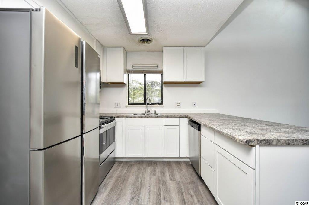 Beautiful 2nd floor unit in desirable Golf Colony. This Condo has two bedrooms, two full baths with an open floor plan with kitchen, dining area, and living room combination. This unit features new beautiful flooring and ceiling fans throughout and a brand new kitchen including new stainless appliances, new cabinets new sink & faucet, and new countertops. Huge sliding glass doors provide natural light and access to the large balcony with storage area. Truly a beautiful 2nd-floor condo overlooking a pool, spa, and serene tropical landscaping. The pool, hot tub, and grilling area are right outside your front door. Enjoy Low HOA fees that include water, sewer, trash, pool service, landscaping/lawn care, building insurance, cable, pest control, and internet access, tennis courts! Owners are allowed to have their pet! Great location just minutes to the beach, shopping, entertainment, Myrtle Beach Airport, and Market Commons. Close to Surfside Beach post office and grocery store. It is MOVE-IN ready!! You decide whether to use it as a second home or rental for residual income! A MUST SEE!!
