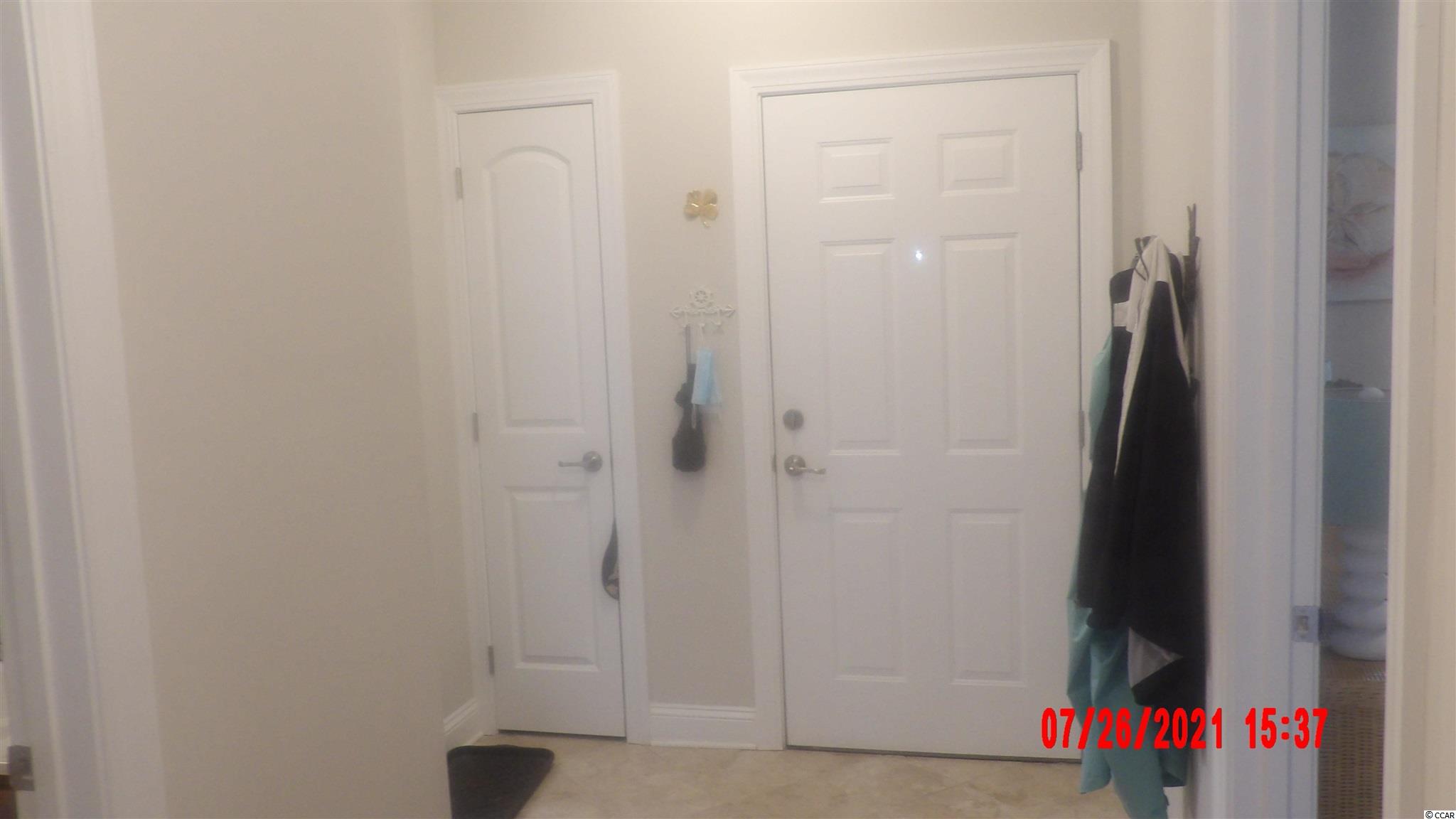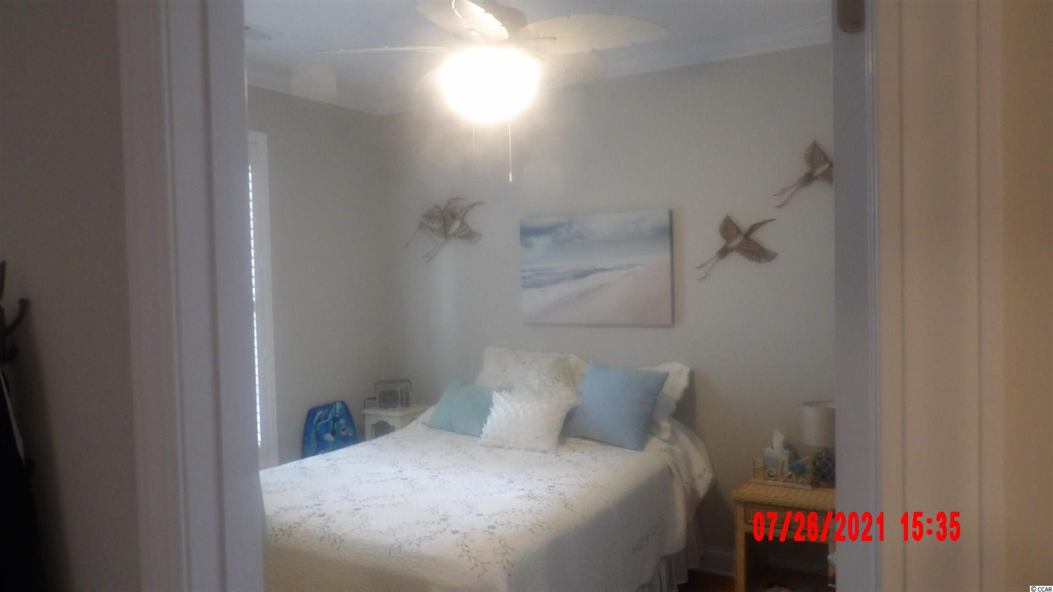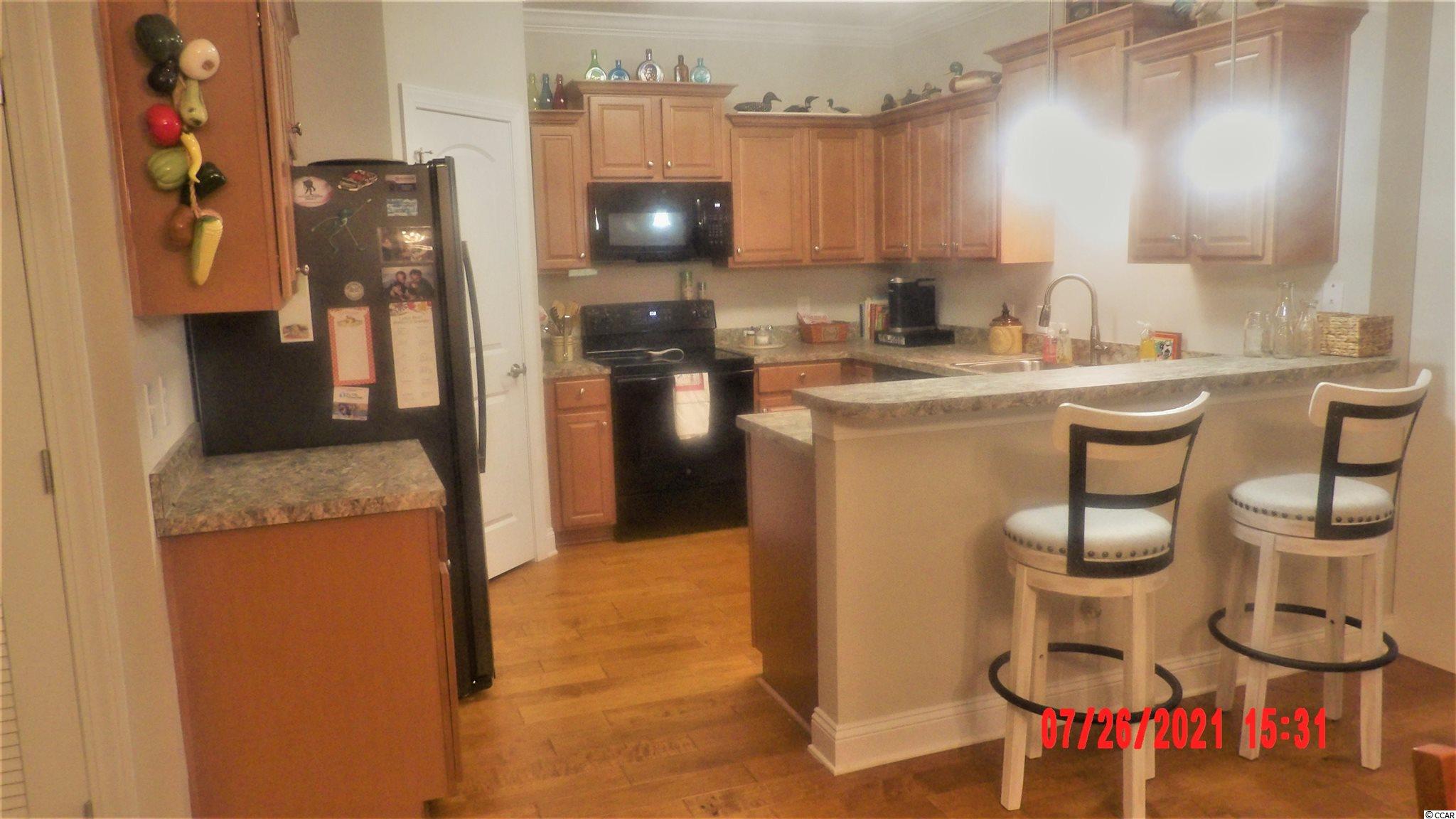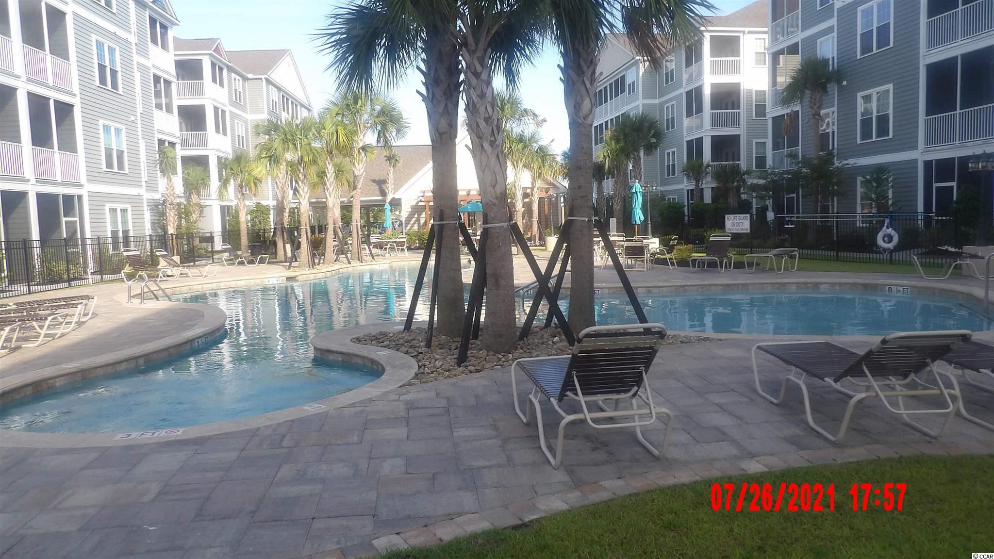 Located in one of the most successful condo developments in the Myrtle Beach area. This third floor unit is a 2 bedroom 2 bathroom beautiful condo in the very popular Queens Harbour building with an over sized ELEVATOR to all floors, outside storage, split bedroom floor plan with entry to the Master Suite from the Family Room, 9' smooth ceilings and a screen porch. The location is superb with shopping, dining and close to the beach. The amenity package includes a resort style pool with club house and conveniently located picnic areas with barbecue. Has hardwood flooring in the living room/dining room/kitchen/hallway and both bedrooms. Tile flooring in the bath rooms/laundry room and foyer. Crown molding in the main living area/bedrooms and bathrooms. Does not have crown in the laundry room. Screened in back. Ceilings in the bedrooms and living room. Washer/Dryer and all personal belongings and furniture do not convey.