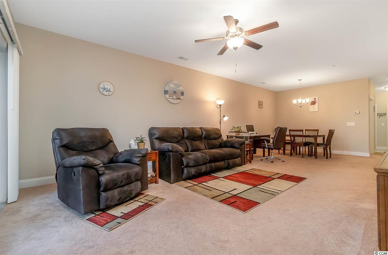Welcome to The Village at Queens Harbor! Let's talk about location and easy living, only minutes from the beach, shopping, restaurants and yes, multiple golf options. As you enter this first floor ground level unit you are welcomed by a spacious entrance with tile flooring. This is a split bedroom floor plan with a master bedroom with adjoining full bathroom and 2nd bedroom that utilizes a common full bathroom. Both have vinyl flooring and carpet. The kitchen offers upgraded cabinetry, pantry closet, solid surface countertops with a breakfast bar and a full appliance package. The kitchen overlooks the living/dining room area. Layout includes a private laundry room with a full size washer and dryer that is only 1.5 years old. Enjoy a nice size screened in porch to sit for morning coffee or a relaxing evening nightcap. Right outside the door is short walk to community swimming pool and recreation facility and this unit also comes with an outside storage area located just outside the entrance way. Call the listing agent today and start living the good life. SQUARE FOOTAGE IS APPROXIMATE AND NOT GUARANTEED, BUYER IS RESPONSIBLE FOR VERIFICATION.