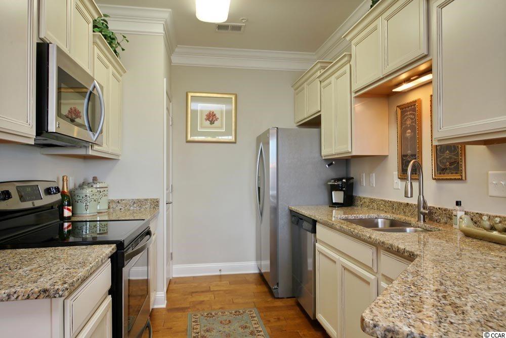Located in one of the most successful condo developments in the Myrtle Beach area, this third floor end unit is a beautiful 2 bedroom master suite condo in the very popular Queens Harbour! Building has an over sized ELEVATOR to all floors, outside storage, split bedroom floor plans with entry to the Master Suite from the Family Room, 9' smooth ceilings and a screen porch. The location is superb with shopping, dining and recreation steps away. The amenity package includes a resort style swimming pool with club house and conveniently located picnic areas with grills.