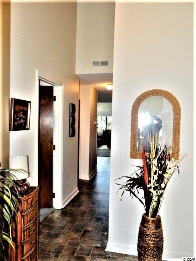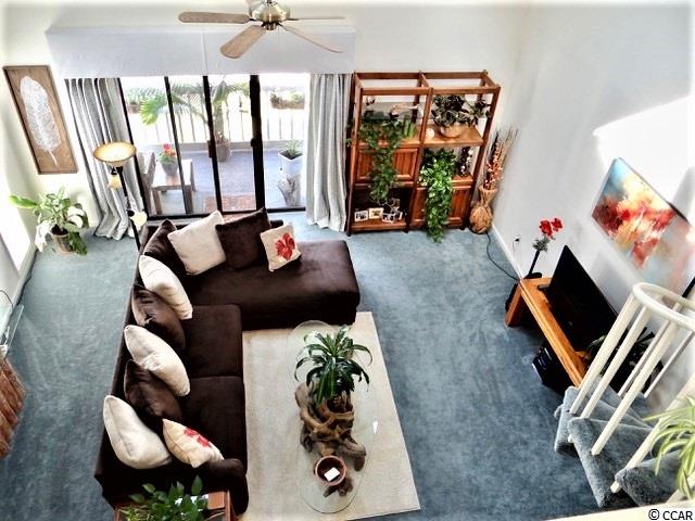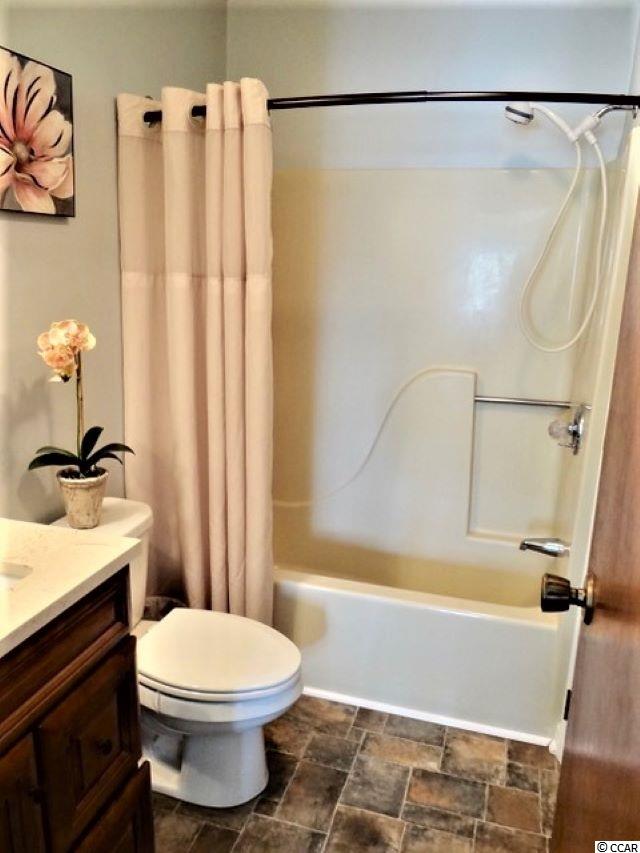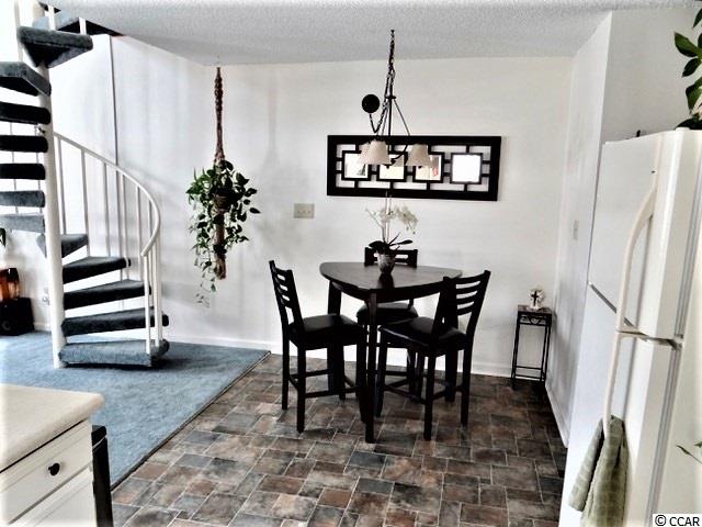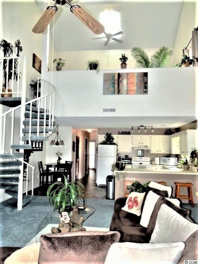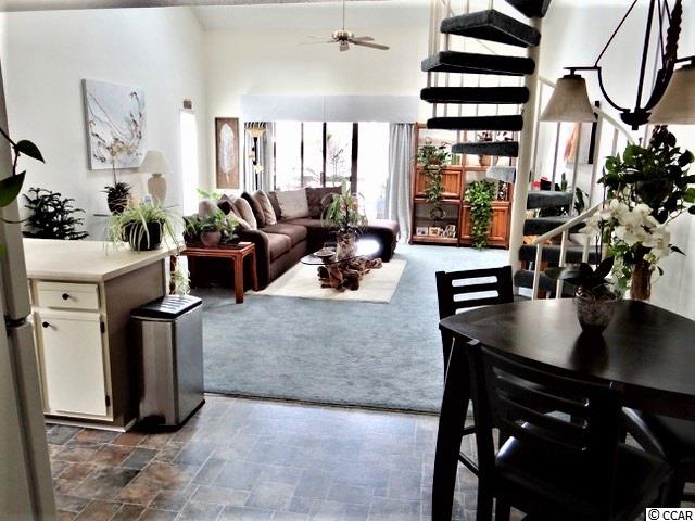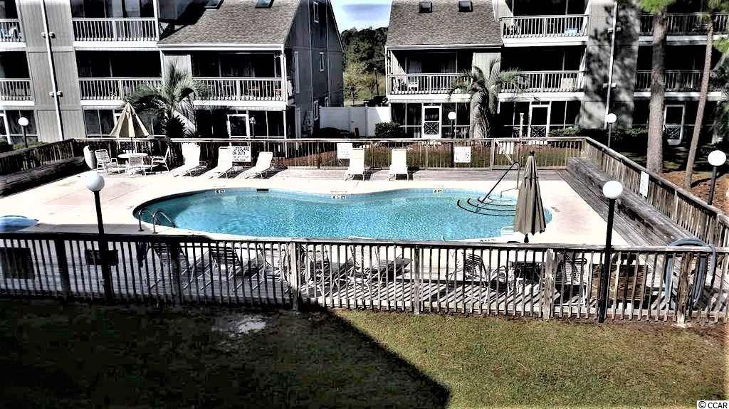 Welcome to Golf Colony @ Deerfield located in beautiful Surfside Beach, SC. Golf Colony is about 2.5 miles and 10 minutes away from the beach and is also in golf cart distance. You can access both 17 Business and Bypass from this conveniently located community. There is a swimming pool located outside the unit and if you like tennis, there are tennis courts nearby. The building was recently painted and new carpet was added to the stairs and walkway. Around the building you will find mature pine trees and beautiful landscaping. This unit is a top floor, end unit. Enter the unit through a full glass, storm door with blinds built in for added privacy if needed. The main level you will find a bedroom and full bath updated with a vanity with sink, framed mirror, flooring and a curved shower bar to enclose the tub and shower. The foyer and hallways have three closets for storage and one is shared with the water heater and HVAC. The main living area you will find is open and spacious. A large Kitchen and lower height breakfast bar opens to the Dining Area and Living Room. The Kitchen has a window that opens and is neutral to match any decor. The lighting in the Kitchen and Dining Area are newer. The Living Room has vaulted ceilings and two skylights and overlooks the pool area. There is also a spiral staircase that leads to the Loft. The Loft is open to below and has a large walk in closet and full bathroom that has been updated with the same features as the bathroom on the first floor. You may use the Loft as your Master Bedroom as the current owner has chose to do. Outside on the balcony there is another storage area and is also the laundry room. The stack-able washer and dryer does convey with the unit and extra storage is always a plus. The owner is leaving a few things in the condo for you; a King size bed, headboard and bedding, side table and some shelving found in the closets. There is also a beautiful picture hanging in the Living Room. Come see this well cared for unit and make this your new home or vacation place at the beach!