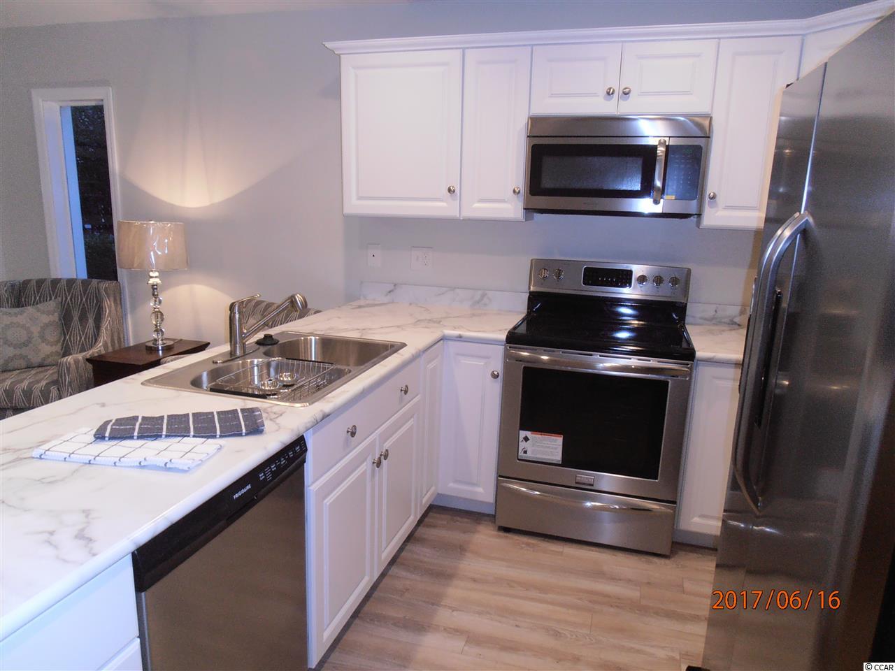 2 bedroom 1.5 bath, first floor, end unit, Golf Colony Resort Condo in the Surfside Beach Area of the Grand Strand of South Carolina. New appliances, kitchen cabinets and counter tops. Laminate floors throughout the condo. Custom features in bathrooms. Freshly painted walls, woodwork and ceiling in all areas. New indoor/outdoor carpet and screen on porch. Pictures and description do not properly state the beauty and charm of this wonderful condo.You must see this unit in person. Call your Realtor today for an appointment to view this beautiful condo. You will be glad you did.