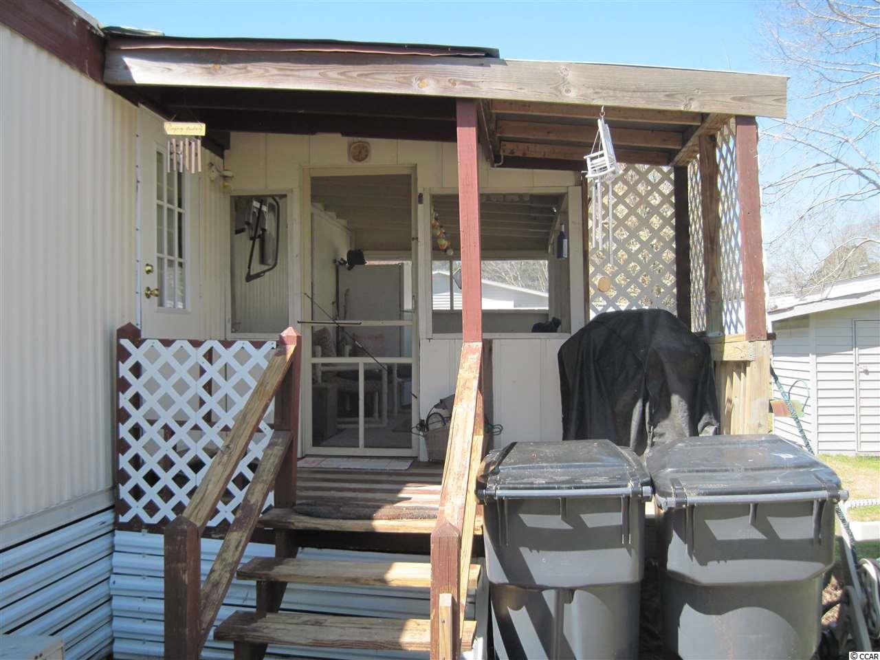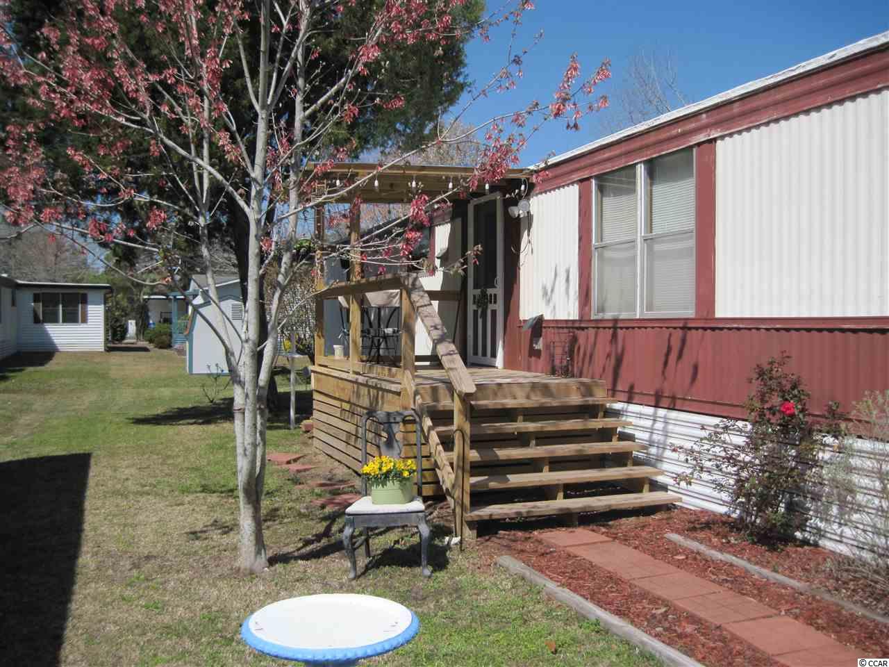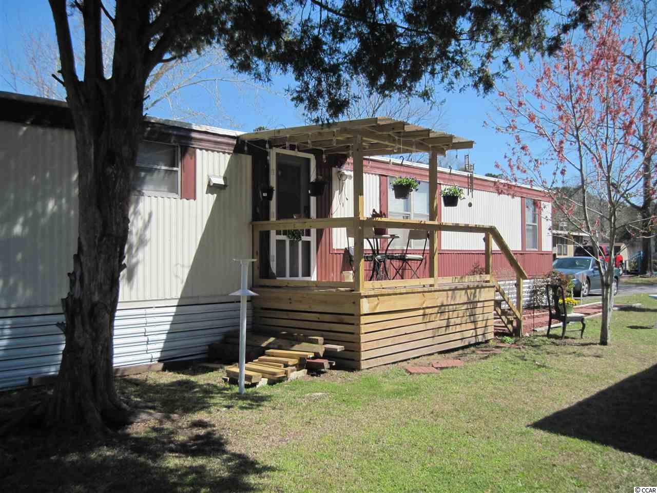 2 BR 2 BA manufactured home in Captain's Cove, a quiet community for folks 55 & older located in Murrells Inlet, SC, approx. 15 minutes South of Myrtle Beach. Community has a clubhouse & pool, and lots of activities for residents who wish to participate. Near Murrells Inlet's famous sound front restaurants and boardwalk, close to Huntington Beach (Oceanfront) State Park & beautiful Brookgreen Gardens. Also near lots of golf courses & many other types of entertainment. Only minutes from a modern hospital & doctors' offices. This is a roomy home with large bed rooms, a large living room, and an adjacent table space kitchen. A great location, less than a block from the clubhouse and pool. It is being sold with stove, refrigerator and outside storage shed. It's in very good condition, recently painted inside and ceiling was redone with a popcorn finish. It has a new covered entry deck in front, a large screen porch in back plus another covered deck in back. The roof was recently sealed with a heavy duty rubber coating, laminate flooring was installed in dining area, kitchen and laundry room. It has a bed room and bath at each end, allowing for privacy when you have guests. This is an attractive home and priced to sell, call today for appointment to see.
