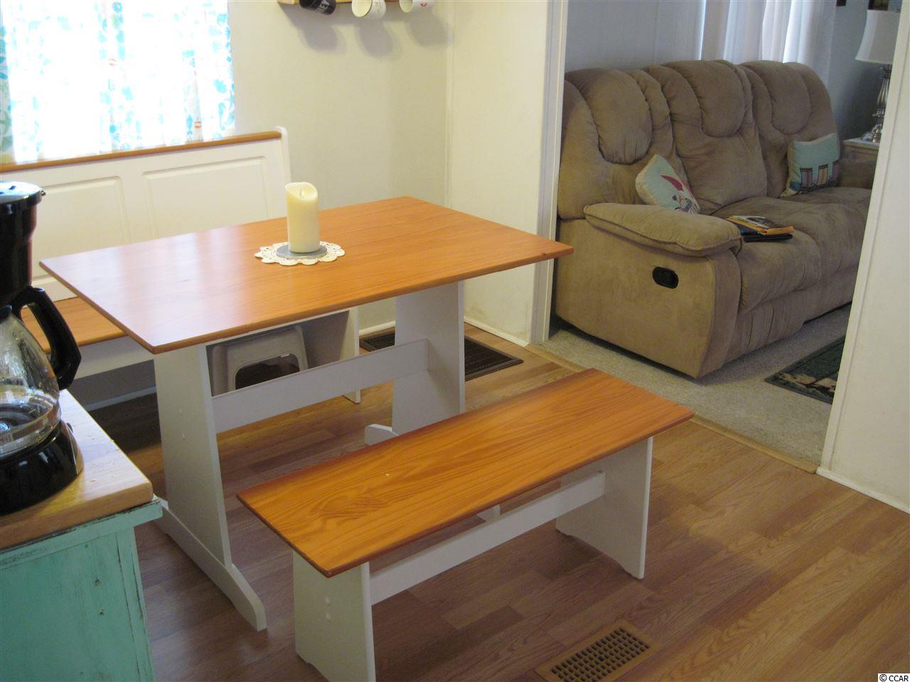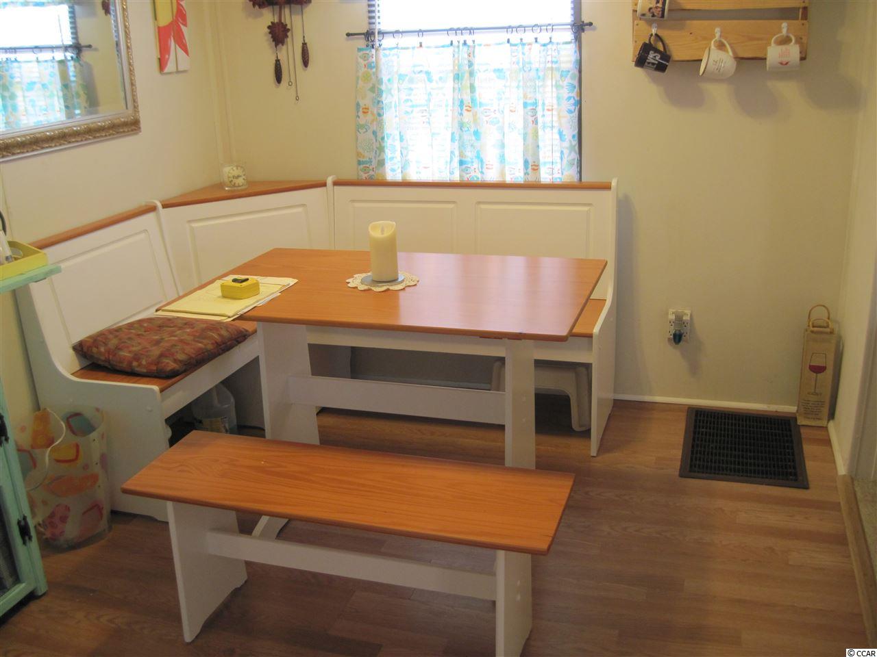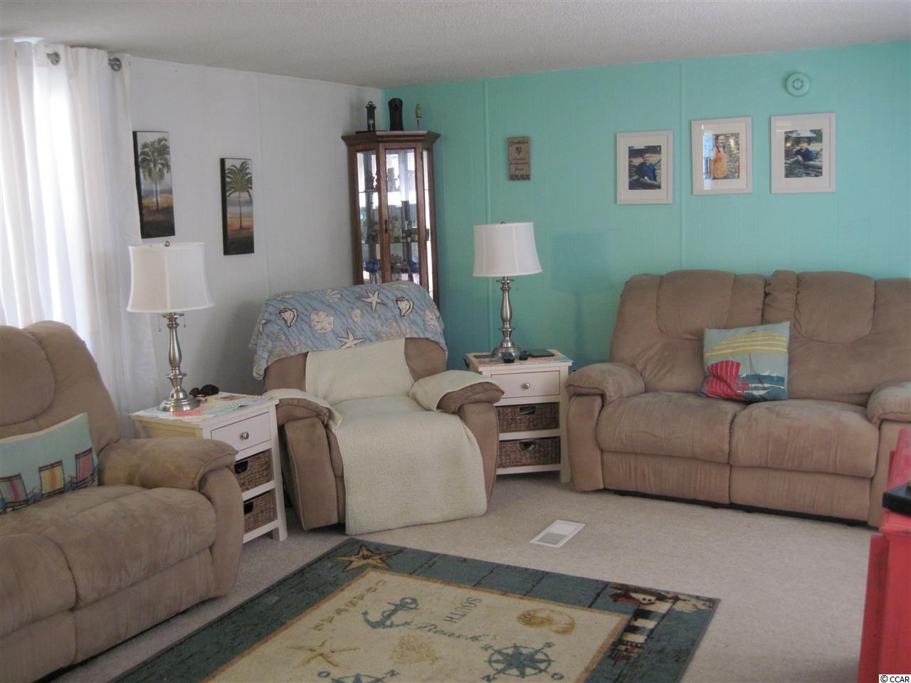 2 BR 2 BA manufactured home in Captain's Cove, a quiet community for folks 55 & older located in Murrells Inlet, SC, approx. 15 minutes South of Myrtle Beach. Community has a clubhouse & pool, and lots of activities for residents who wish to participate. Near Murrells Inlet's famous sound front restaurants and boardwalk, close to Huntington Beach (Oceanfront) State Park & beautiful Brookgreen Gardens. Also near lots of golf courses & many other types of entertainment. Only minutes from a modern hospital & doctors' offices. This is a roomy home with large bed rooms, a large living room, and an adjacent table space kitchen. A great location, less than a block from the clubhouse and pool. It is being sold with stove, refrigerator and outside storage shed. It's in very good condition, recently painted inside and ceiling was redone with a popcorn finish. It has a new covered entry deck in front, a large screen porch in back plus another covered deck in back. The roof was recently sealed with a heavy duty rubber coating, laminate flooring was installed in dining area, kitchen and laundry room. It has a bed room and bath at each end, allowing for privacy when you have guests. This is an attractive home and priced to sell, call today for appointment to see.