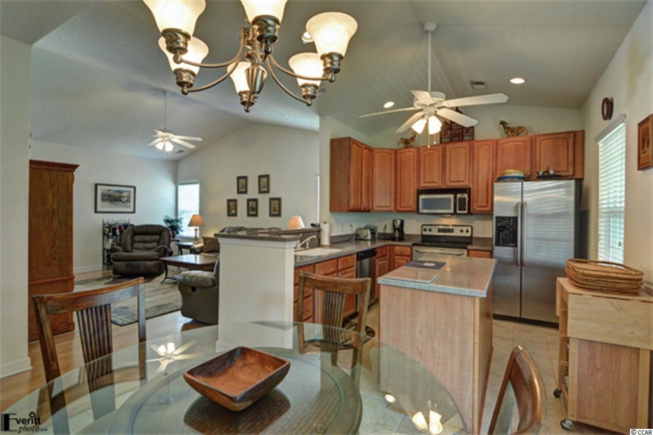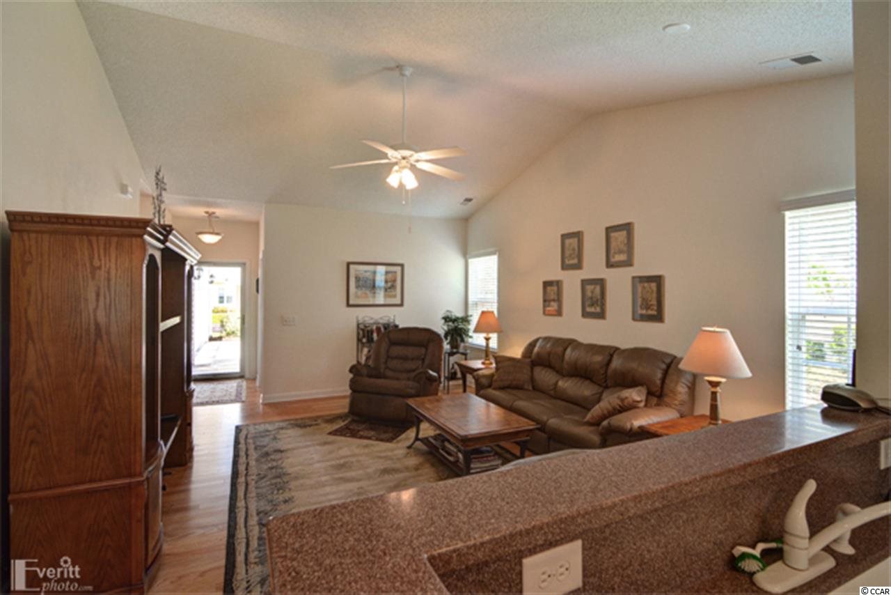 Welcome Home to maintenance-free living at Kings Creek in Pawleys Island! Kings Creek is a paired ranch and private community tucked away from the hustle and bustle. Open the front door and enter the spacious living room/dining area and high vaulted ceilings. This home features many upgrades from hardwood floors in the foyer, living room, and hallways, tiled kitchen, solid surface countertops, to upgraded kitchen cabinets and appliances. Read your favorite book or simply relax in the beautiful Carolina room added just two years ago adjoining the kitchen. Enjoy your morning coffee or your favorite beverage and take in all mother nature has to offer. Take a dip in the community pool and enjoy the large sundeck. Shopping, restaurants, public golf courses, and beaches located within minutes . Home Owners Association maintains landscaping and lawn.