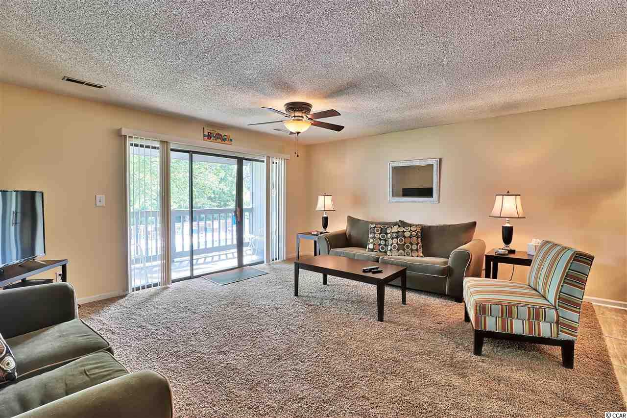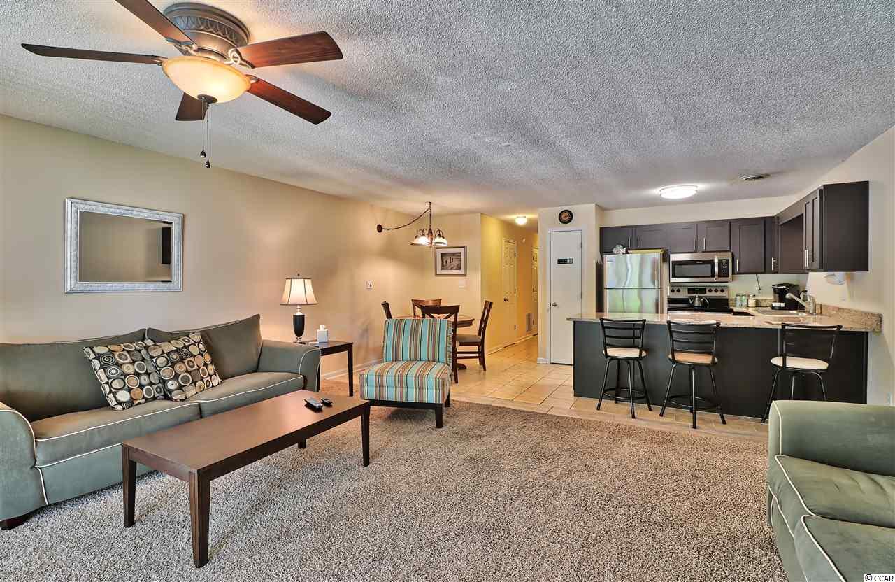 Tastefully updated large one and a half bath centrally located condo in Golf Colony at Deerfield. Upgrades include fresh paint and new kitchen cabinets, sink, stainless steel kitchen appliances and granite installed. The bathrooms have new vanities and toilets and the living room slider has a new custom blind installed. The HOA includes so many amenities including the internet and TV. Just over a mile to Surfside the Family Beach, this one is move in ready so schedule your appointment today! Square footage is approximate and not guaranteed. Buyer is responsible for verification.