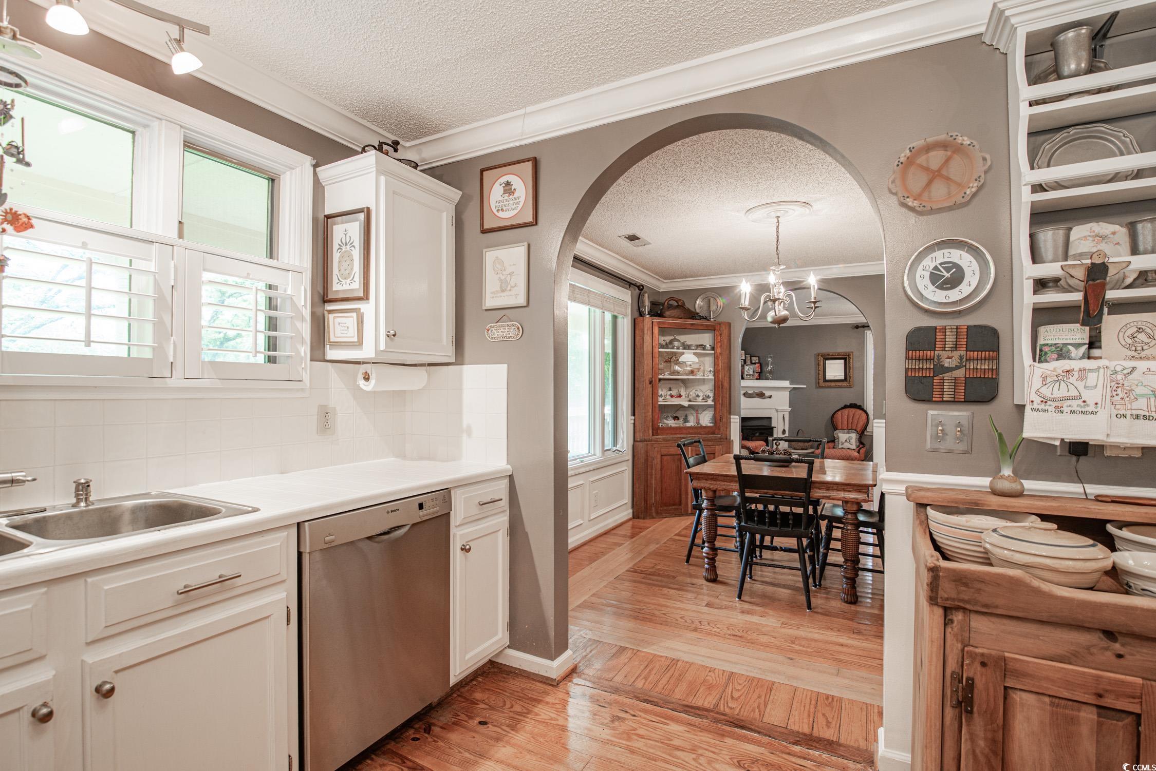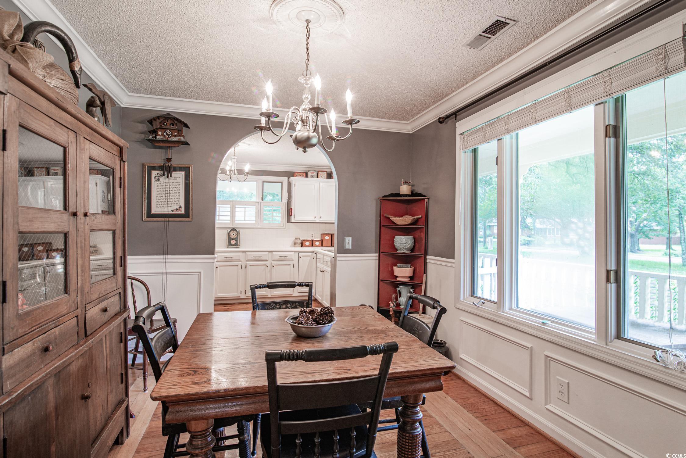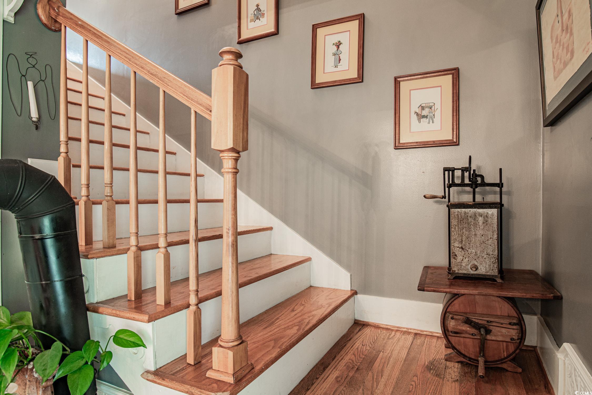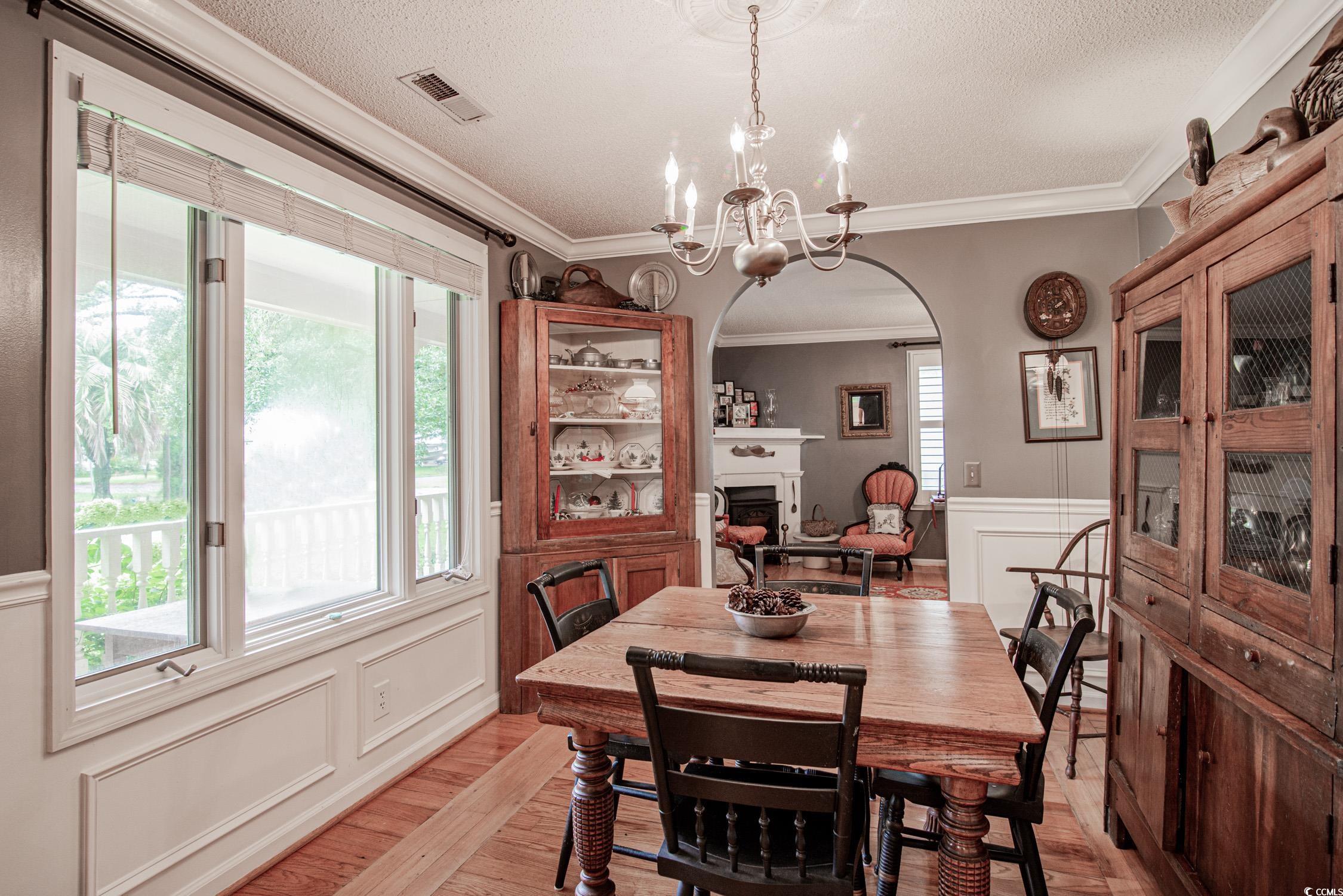 Welcome to 1921 Oak Street, a delightful residence situated in the desirable Georgetown neighborhood of Maryville Heights. This timeless home features 3 bedrooms and 2 bathrooms, and its charm begins with a welcoming wrap-around porch, perfect for savoring outdoor moments. Inside, you'll find a cozy family room with a wood fireplace and elegant hardwood floors throughout, creating a warm and inviting atmosphere. The main living areas and bedrooms are adorned with hardwood floors and Plantation Shutters, reflecting the essence of Lowcountry living. The spacious kitchen is the heart of the home, equipped with stainless steel appliances, shaker-style cabinetry, a pantry, and a charming breakfast nook. To the right of the front door, the family room flows seamlessly into the formal dining room, providing ample space for both relaxation and entertaining. The main level also includes 2 bedrooms. The serene primary bedroom is located on the second floor at the back left of the home, offering a private ensuite bath and two large closetsyour personal retreat awaits. A convenient laundry room is located on the first floor. The property also features a detached 2-car garage with plenty of off-street parking. Situated on a picturesque corner lot, this home combines privacy with curb appeal. Mature landscaping enhances the property's charm, creating a lush, tranquil setting with well-established oak trees and greenery that offer shade and a natural escape from the hustle and bustle. With additional outdoor space perfect for gardening, entertaining, or simply enjoying the surroundings, 1921 Oak Street is the perfect blend of classic Southern charm and modern comforta wonderful place to call home. All measurements are estimates and should verified by buyer.