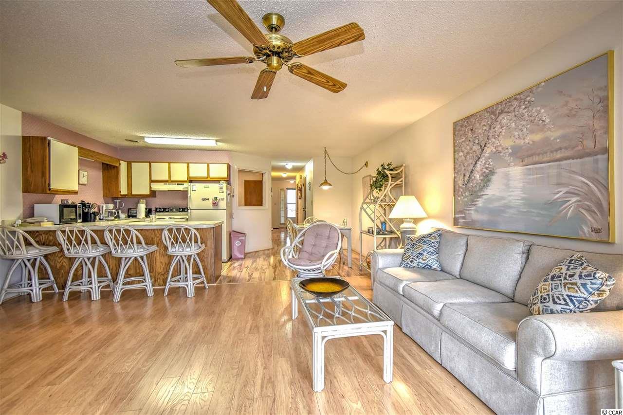 Furnished Beautiful first floor unit in desireable Golf Colony. This Condo has two bedrooms, two full baths with open floor plan with kitchen, dining area and living room combination. Upgraded Master bedroom furniture scheduled to be delivered in a few weeks that will also convey with the condo. This unit features New beautiful wood laminate flooring throughout and Upgraded living room furniture that is just under a year old and both bedrooms have ceiling fans. This unit comes completely furnished including washer and dryer and Wi-Fi. Huge sliding glass doors provide natural light and access to the large screened rear porch. Truly a beautiful 1st floor condo overlooking pool, spa and a serene tropical landscaping. The pool, hot tub and grilling area are right outside your front door. Condo used for family vacations and a second home. Also was never a rental by owners. Enjoy Low HOA fees that includes water, sewer, trash, pool service, landscaping/lawn care, building insurance, cable, pest control and internet access, tennis courts! Owners are allowed to have their pet! Great location just minutes to the beach, shopping, entertainment, Myrtle Beach Airport and Market Commons. Close to Surfside Beach post office and grocery store. It is MOVE IN ready!! You decide whether to use as second home or rental for residual income! A MUST SEE!! Square footage is approximate and not guaranteed. Buyer is responsible for verification.