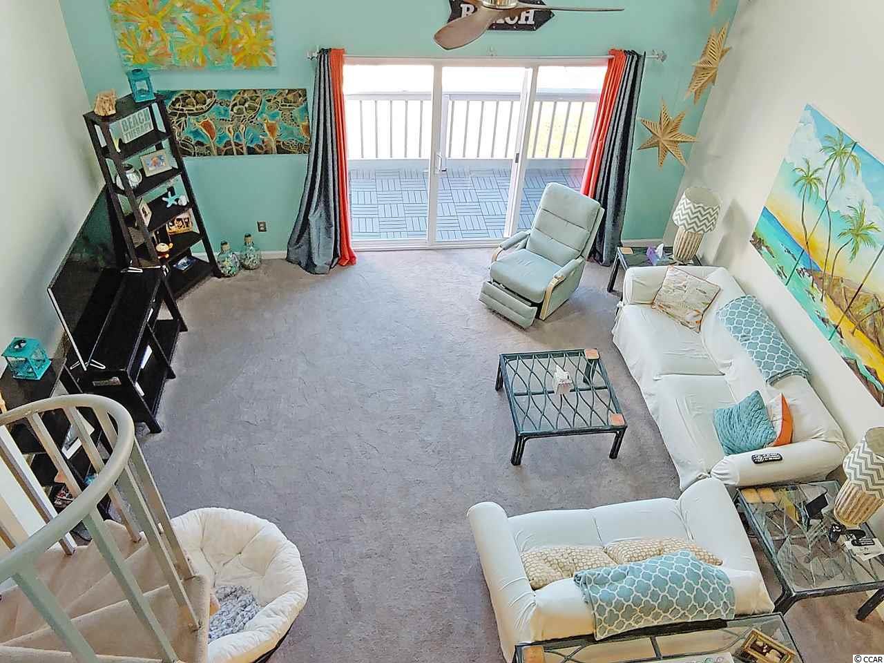 This large 2br/2bth townhouse style designed condo with a beautiful ""beachy"" flavor . The huge kitchen has newer frig, stove and a very large breakfast bar. You will see the pretty beach style flooring when you enter the condo. The 1st floor bedroom has 2 ""new"" queen size mattresses. The lofted 2nd bedroom can accommodate 2 queen beds also. The vaulted ceilings and (new) skylights create the wide open floor plan. A 9' sliding glass door opens to a sunny deck overlooking the pretty pool and lounging area. Great gathering place , meet your neighbors. The courtyard also has grilling area for cooking out. There are 2 nice tennis courts for your enjoyment. Golf Colony has year round owners, as well as 2nd home vacationers . So convenient to airport, beach, shopping and our Seafood Capitol of SC Murrells Inlet fishing village. Must see .