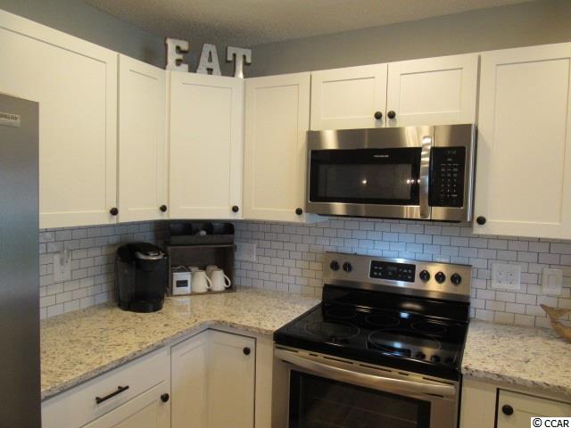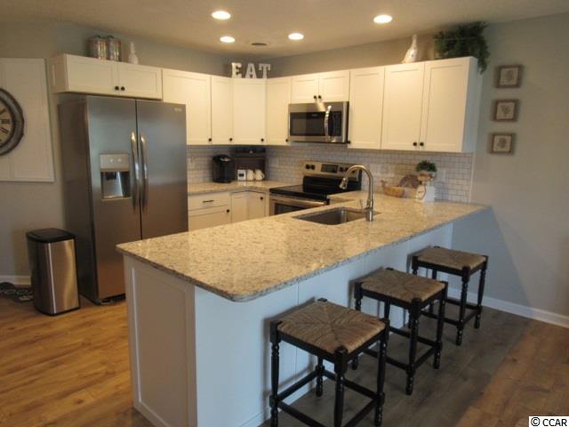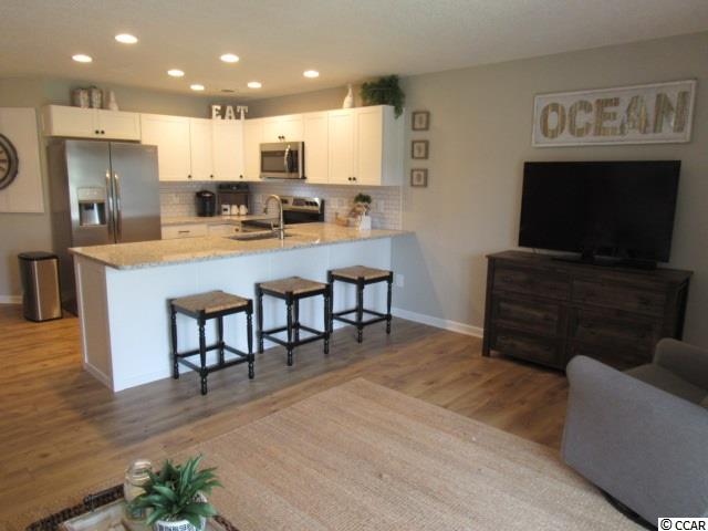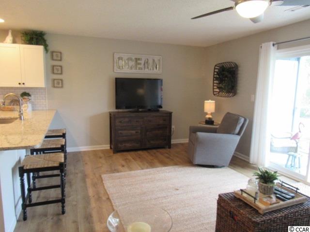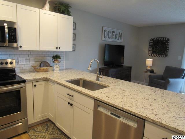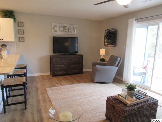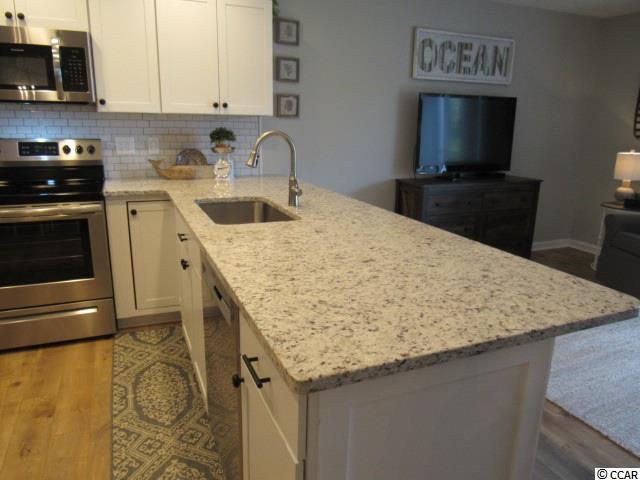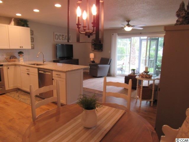 The beach is just across Business 17, and you may golf cart, drive, or walk easily. This is a ground floor unit, and you do have room for your bicycles on the front on the porch, or in the sunroom porch facing the pool. The current owners have completely remodeled the spacious and beautiful retreat into a desirable year-round place to live, or a vacation escape in this highly sought after area. The quality shows throughout, even including appliances and NEW PATIO DOOR LEADING TO SUNROOM AND THE POOL. New granite counter top lends towards dinning together and serving food for the gang with a no hassle plan. Counter top was custom made and widened to fit the entire group. HOA takes care of the outside lawn maintenance, pool, water/sewer, trash, basic cable, exterior building insurance, and also pest control. New roof on building in 2017, and HVAC installed in 2011. There is a large parking lot on each end of this building for vehicle parking so there is not a problem finding a parking spot!