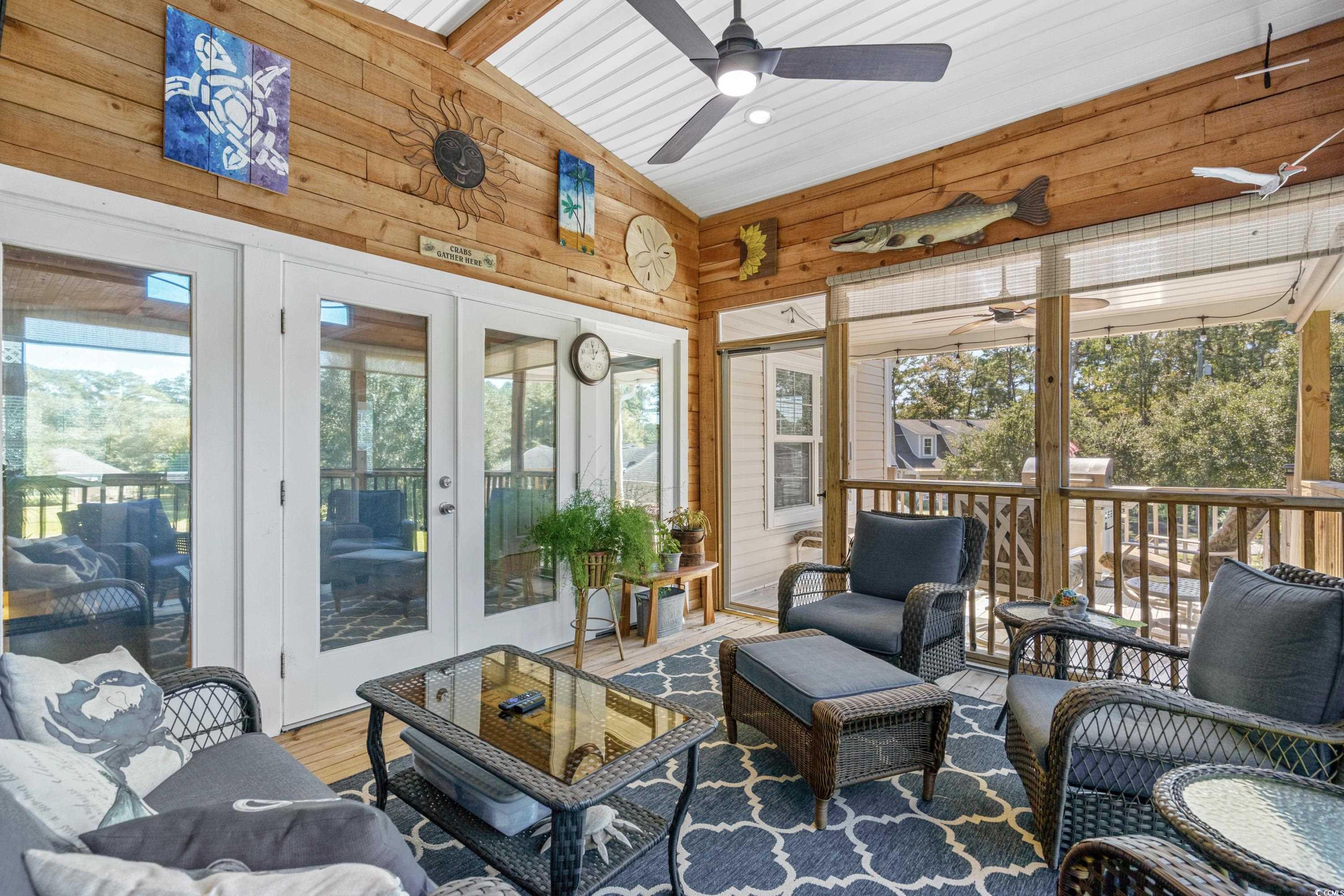 Upon entering this 4 Bedroom 3.5 Bath home, youll immediately feel happy to be here. The unique floor plan with plenty of natural light is perfect for almost anyone. Perhaps this is the answer to that in-law suite you have been looking for? The first level hosts a large family room, a bedroom with a shiplap wall, a bathroom with a hand hammered copper sink, and a glassed-in tiled shower. The pool table and accessories as well as the TV downstairs and upstairs TV in the guest room will convey. The next bedroom is currently used as an office and adjoins the utility room with additional storage. The safe room in the center of the home, lined with cedar, is another great storage place! You enter a good-sized mud room/ laundry room from the back of the home, which includes a bench, a utility sink, a washer and dryer, and a refrigerator. The primary bedroom and bath on the second level have a spacious all-tiled walk-in shower, dual sinks, and a walk-in closet. In addition, another bedroom with a built-in window seat, bookcase, and an adjacent full bathroom. A third upper-level bedroom wall was removed to open up the space which is currently used as a den. The custom wooden beadboard ceilings will be found throughout most of the home, with molding and creative touches. This kitchen offers great natural light with the surrounding windows and has a cozy feeling with the warm hue ceramic tile and features a breakfast nook, stainless steel appliances, a huge pantry, white cabinetry above beautiful granite countertops and access to the balcony, perfect for your morning coffee. A beautiful blend of indoor/outdoor spaces with an upper level, oversized screened porch with a vaulted ceiling that leads to an outdoor deck suited for grilling in the back. This space spills down onto an outdoor patio overlooking the fenced-in yard with a brick patio, fire pit, a pond, and outdoor storage sheds. Storage will never be an issue in this home with its 2-car garage and 3rd garage for your large truck or boat, and three additional workshop/ shed areas! Endless possibilities reside here with so many means to get your daily fix of Vitamin D!