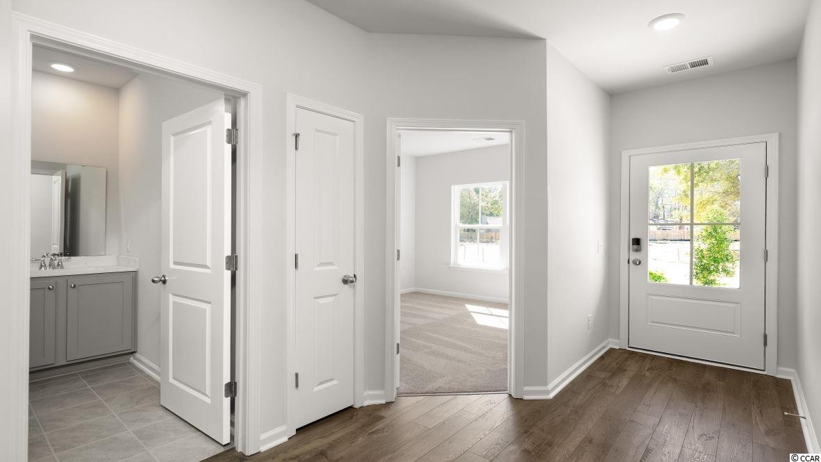 Brand new community within walking distance to the Murrells Inlet Marsh Walk! Low maintenance living at its best with these single level townhomes. This Bentley floorplan is an end unit and boasts an open concept kitchen, living, and dining area along with three spacious bedrooms! Features include white painted cabinetry, granite counters in the kitchen, stainless Whirlpool appliances, and laminate wood flooring that flows throughout the main living areas. The primary bedroom suite has a walk-in closet along with a private bathroom with dual vanity and large shower. Enjoy the beautiful coastal weather on the rear covered porch! One-car garage with garage door opener plus a spacious storage closet off the rear porch. It gets better- this is America's Smart Home! Ask an agent today about our industry leading smart home technology package that is included in each of our homes. *Photos are of a similar Bentley home. This home is under construction. (Home and community information, including pricing, included features, terms, availability and amenities, are subject to change prior to sale at any time without notice or obligation. Square footages are approximate. Pictures, photographs, colors, features, and sizes are for illustration purposes only and will vary from the homes as built. Equal housing opportunity builder.)
