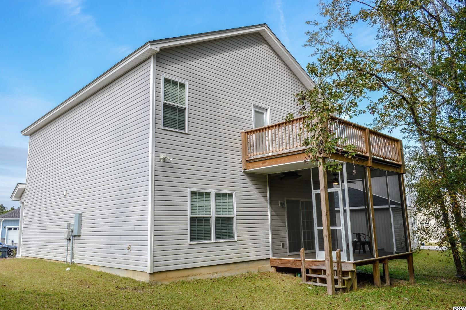 LIKE NEW upgraded 3 bedroom 2.5 bathroom traditional home for sale in Red Bluff Village in Loris. Convenient location just off Highway 905 & 22 - close to major highway access, shopping, dining, and a short drive to North Myrtle Beach. Exterior of the home features a spacious 0.52 acre private lot that backs up to woods and a screened-in porch with overhead fan, flat screen TV with electronic mount, and private wood deck balcony off the master bedroom. Home features an attached 2 car garage with upgraded pull down screen with door. Walking through the front door you enter into a spacious foyer with the staircase leading to the second floor off to the right. In the hallway there are closets for additional storage space and a half bathroom for guests & ease of access. Large open floorplan for the main living area with lots of natural light coming through the windows and sliding door which leads to the screened-in porch. Living room features an overhead ceiling fan and dining area with overhead chandelier light fixture. Spacious functional kitchen features a full set of stainless steel appliances, lots of cabinet/counter space, work island/breakfast bar and door entry to the garage. Upstairs features a den/bonus room which could make for an office, playroom, etc. and all three bedrooms including the master suite. Full bathroom upstairs is equipped with a single sink bowl vanity and tub/shower combo. Separate laundry/utility room offers overhead storage space and washer/dryer hookups. Master bedroom offers a tray ceiling, overhead fan, large walk-in closet, and master bathroom en-suite with a extended single sink bowl vanity and walk-in shower. Door access from the master suite leads out to the private wood deck/balcony which overlooks the wooded backyard. Home was built in 2019 and is like new - must be seen to be appreciated - schedule your private showing today and make this your next home!