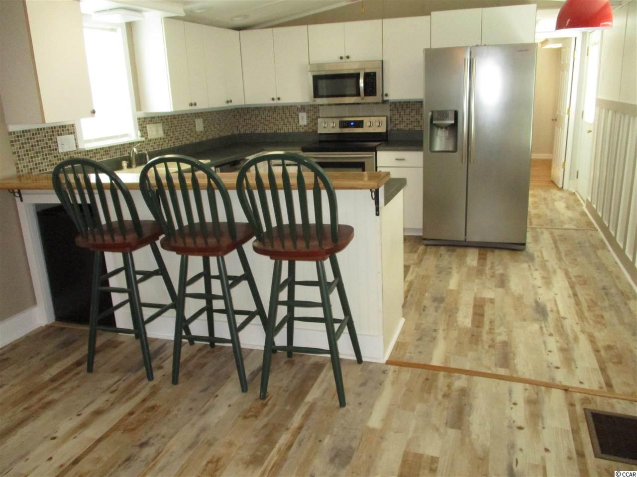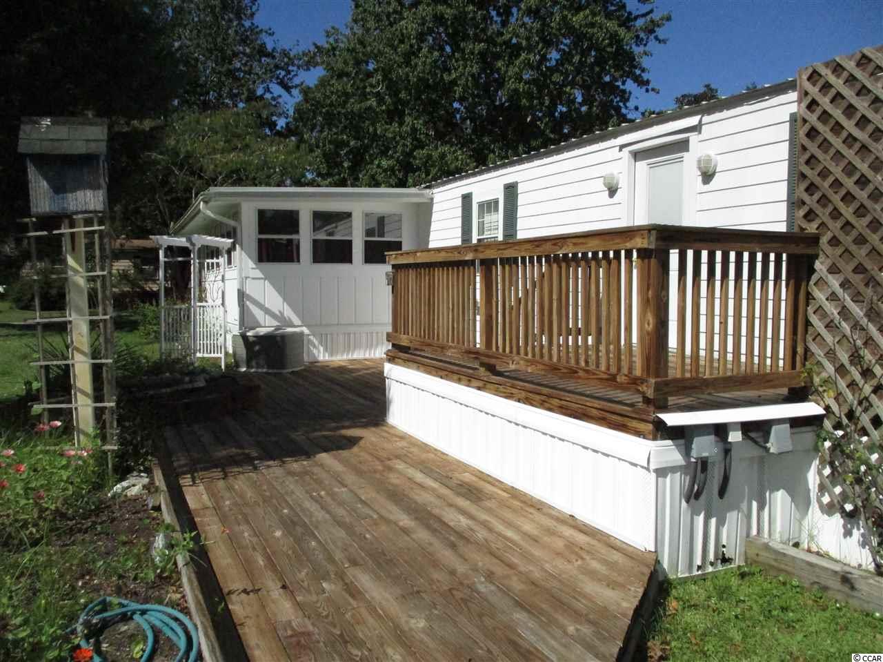 2 BR 2 BA manufactured home in Captain's Cove MHP, a quiet community for folks 55 & older, located in Murrells Inlet, SC, approx. 15 miles south of Myrtle Beach. Community has a clubhouse & pool, and lots of activities for residents who wish to participate. Near Murrells Inlet's famous water front restaurants & close to Huntington Beach (Oceanfront) State Park & to beautiful Brookgreen Gardens. Also near lots of golf courses & many other types of entertainment. Only minutes from a modern hospital & doctors' offices. This is an attractive, well cared for home. It has a bed rm and bath at each end allowing for privacy when you have guests. Home has been upgraded with lifetime, (concrete composite) Hardee Plank siding all around, won't rot and is impervious to termites. A new metal roof has been installed, and an added on 10 x 19 sun porch w/windows all around and a rubber roof. Kitchen has been remodeled and thermo-pane windows installed thru-out home. Electrical service updated with a 200 amp box and new breakers. Has had many other improvements, too much to name. You may call for a complete list. Home has a covered front and rear entry, a beautiful 2 tier deck in back with a water fountain, an outside shower, and a large o/s storage bldg. This is a sound, clean home. You'll love the home and the location, call today for an appointment to see.