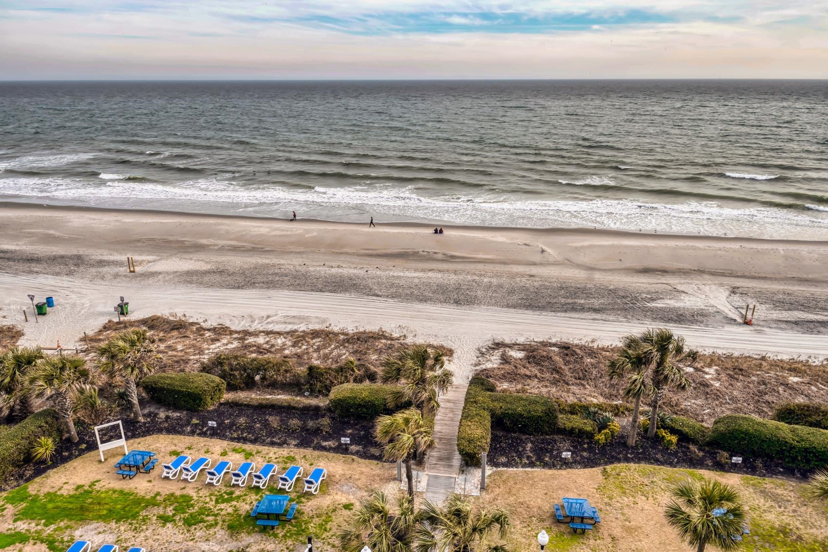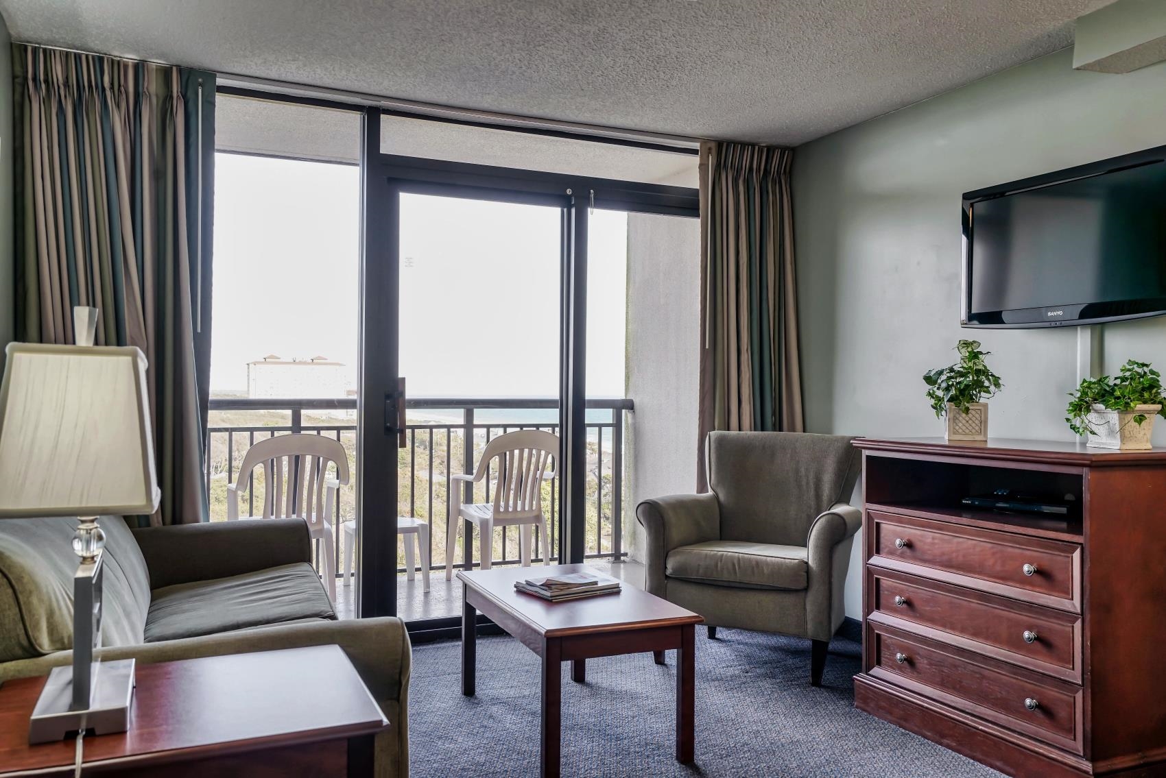 Location! This furnished 1 bedroom unit has unbelievable views! Oceanfront building with multiple swimming pools, hot tubs, a lazy river, exercise room, indoor and outdoor pools, onsite laundry, and onsite dining. Located on the north end at the end of the high rise buildings offering easy access to a beautiful more secluded section of beach. Conveniently located minutes from everything Myrtle Beach has to offer while being tucked out of the hustle and bustle. Tile in kitchen is ready for replacement therefore this unit is priced lower than other units for sale and is being sold ""as is"".