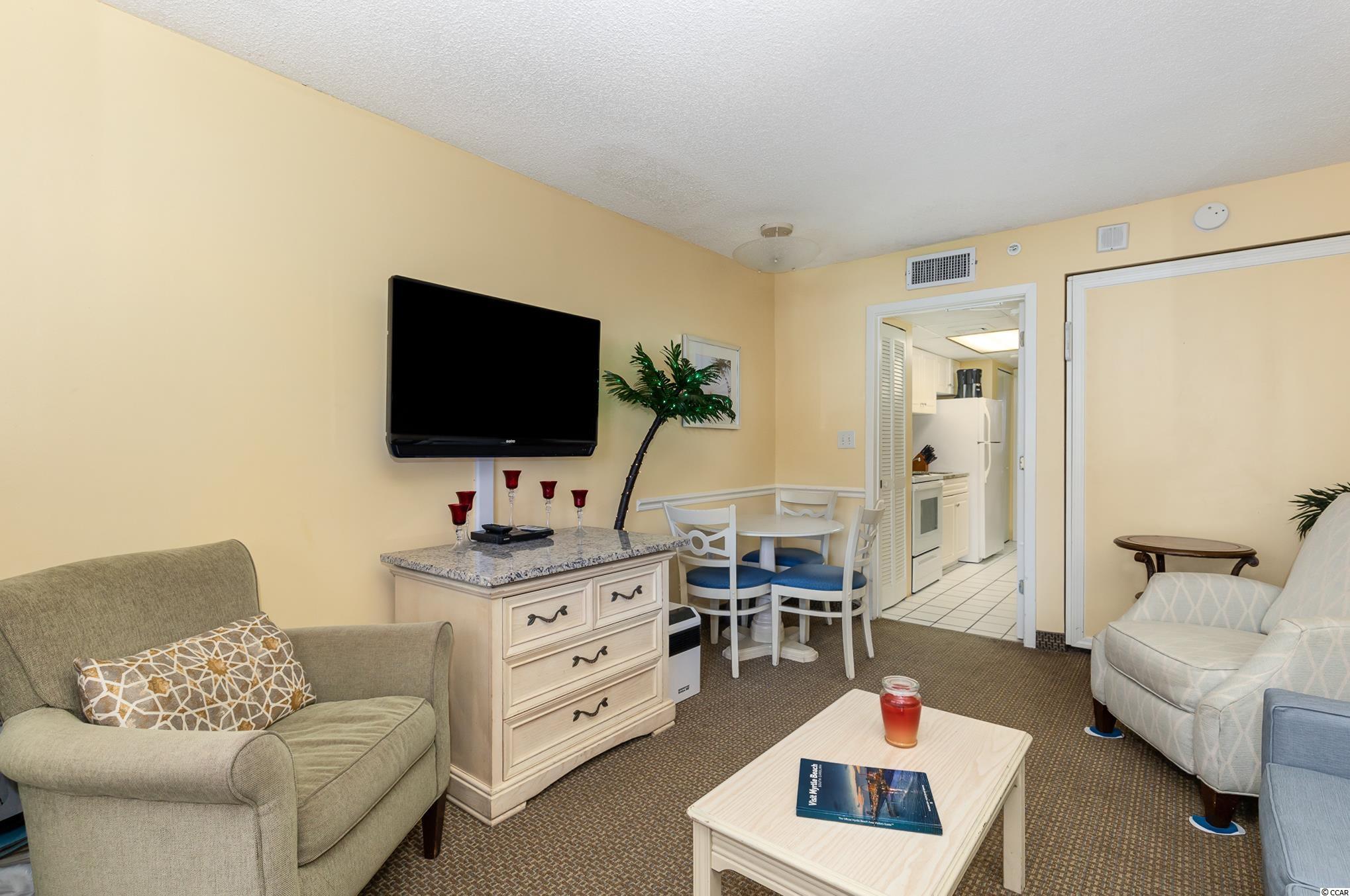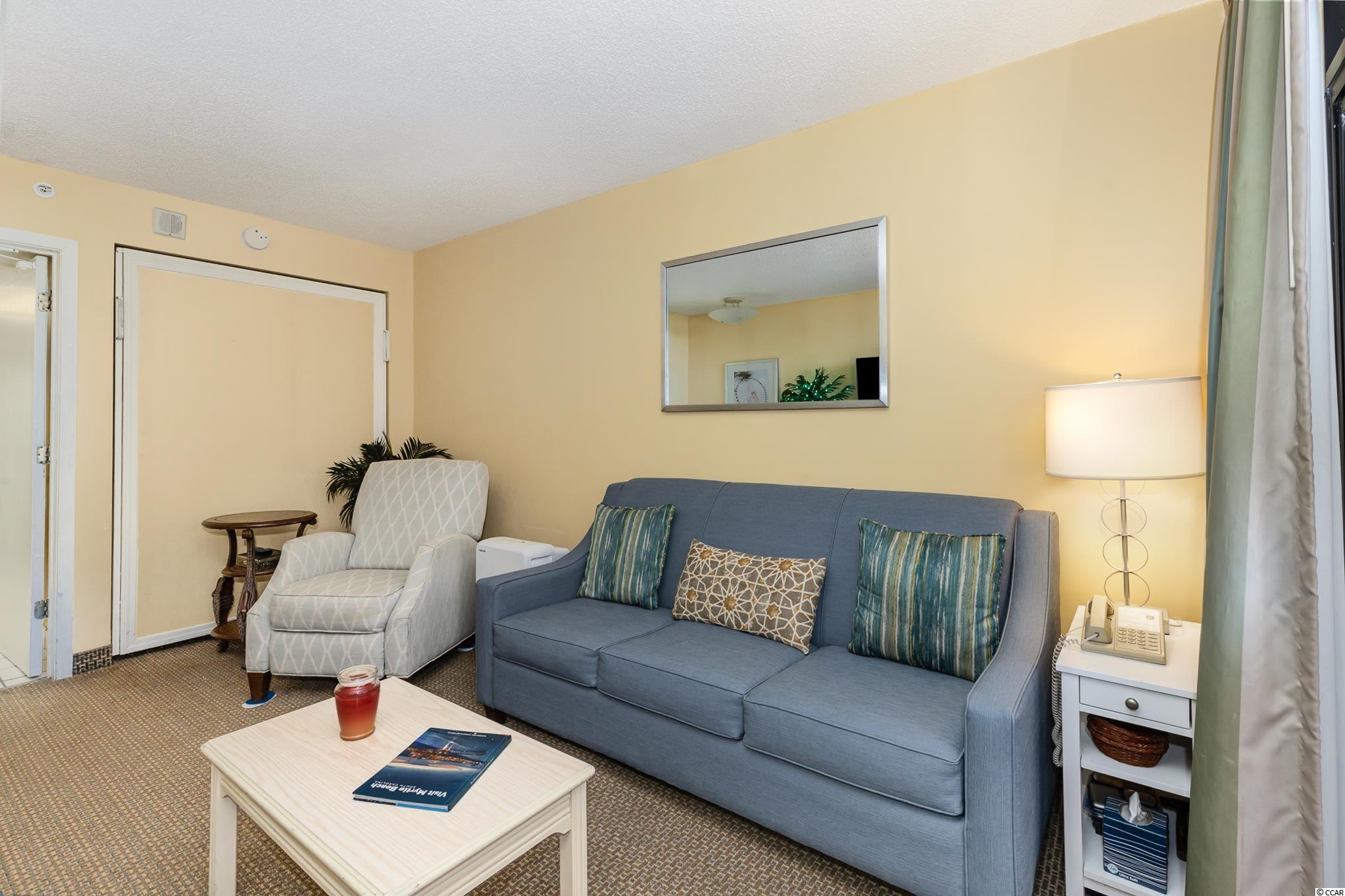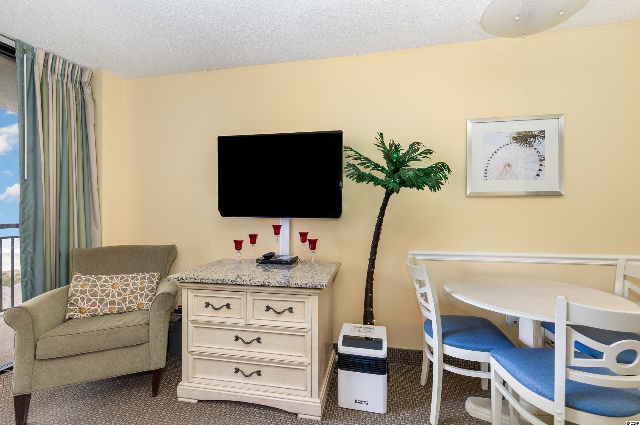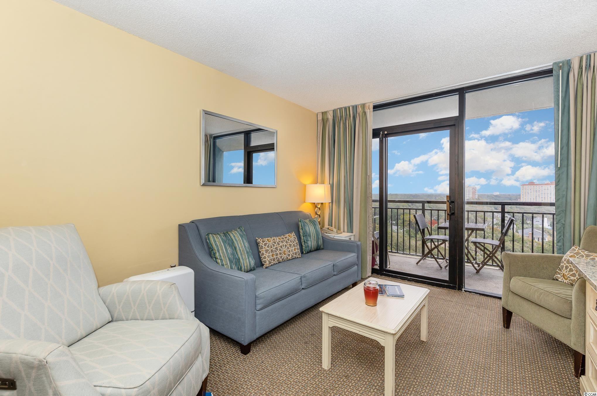 Amazing ocean and coastline views for miles! 1 bedroom/1bath, beautifully decorated, fully furnished condo inside the Grande Shores Resort. This unit has plenty of sleeping room with 2 beds in the main bedroom and a Murphy bed and pullout sofa in the living room. The kitchen has been updated with granite countertops, backsplash, and microwave. Grande Shores offers several outdoor pools, lazy rivers, indoor pools, and numerous hot tubs. Other amenities include an onsite restaurant, fitness room, business center, grilling area, seasonal pool bars, and covered deck parking. The HOA fee includes it all from water/sewer, unit electric, cable, internet, local phone, pest control, and all insurance, even HO6! HVAC was replaced in 2018. Don't miss out on this view and unit located along Myrtle Beach's Golden Mile! It is the buyer's agent and buyer's responsibility to verify all information.
