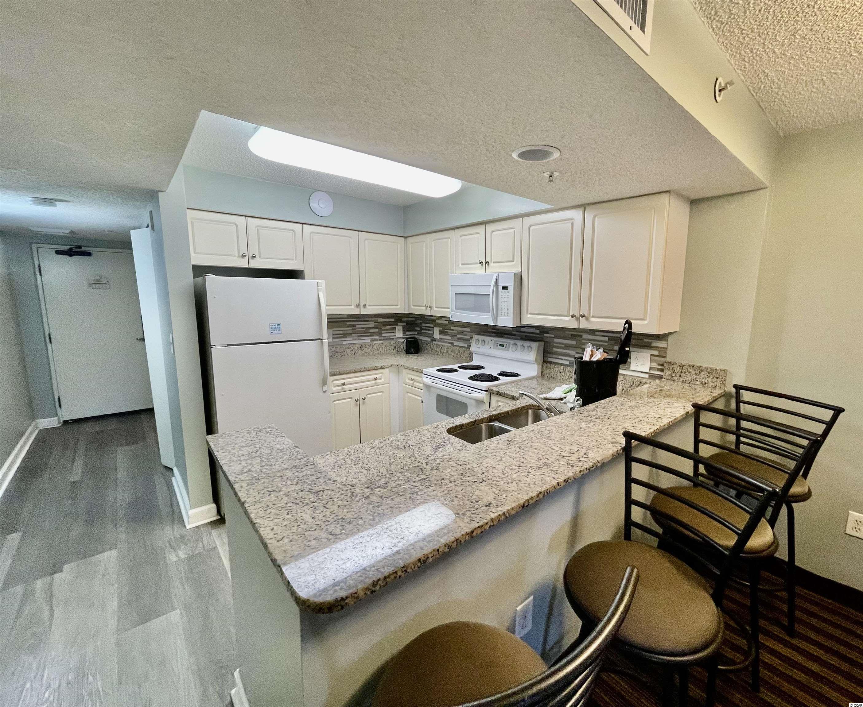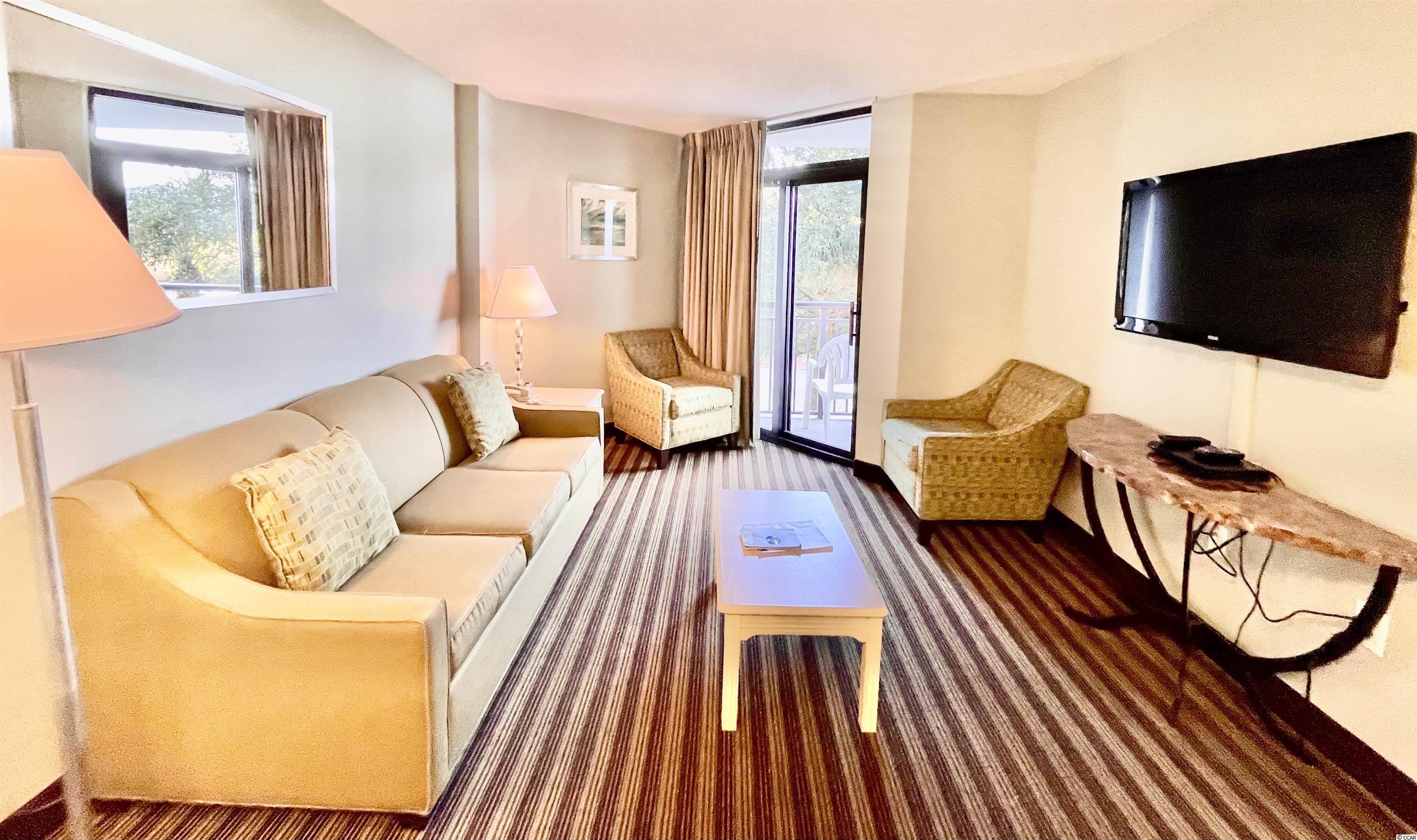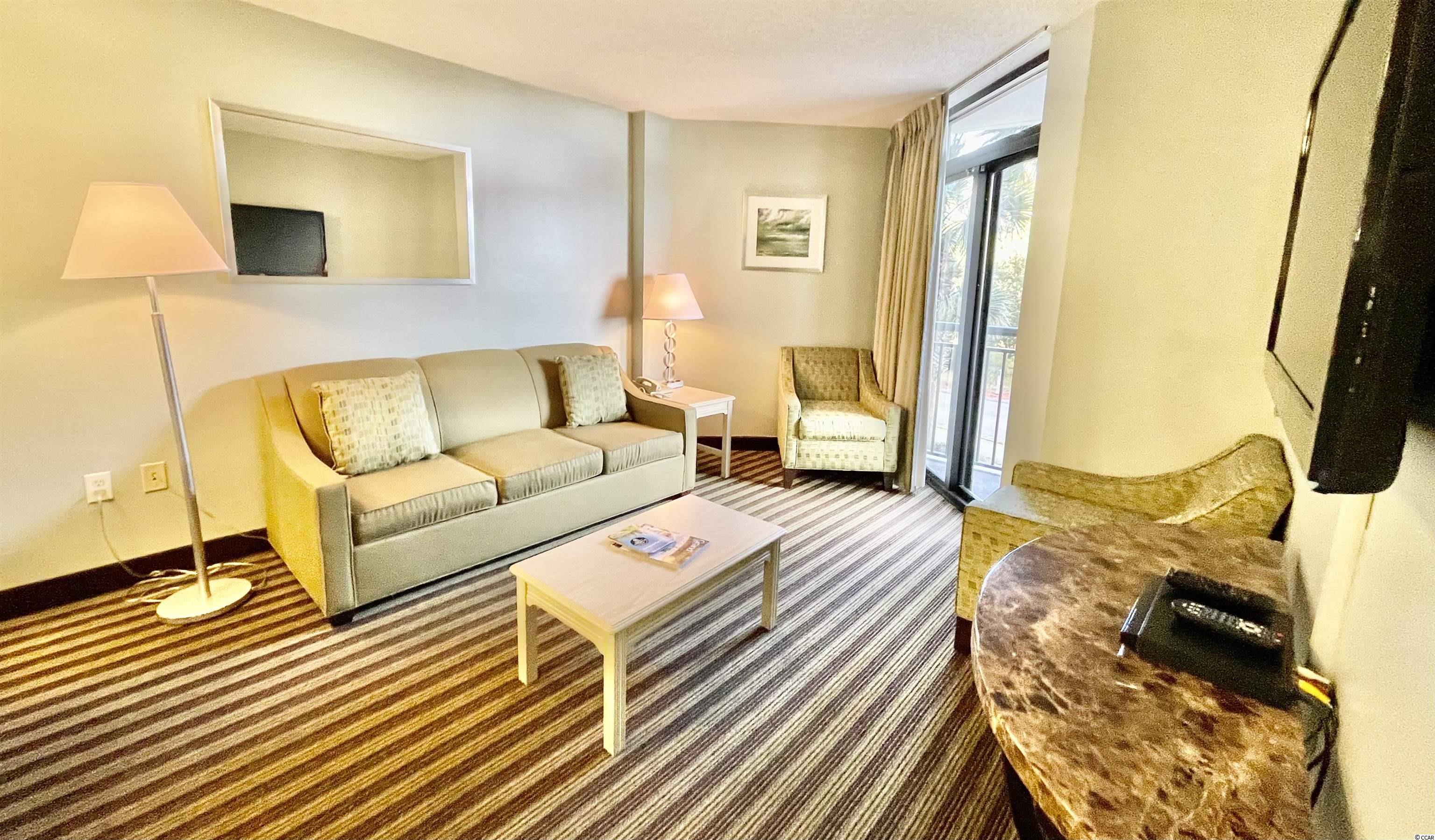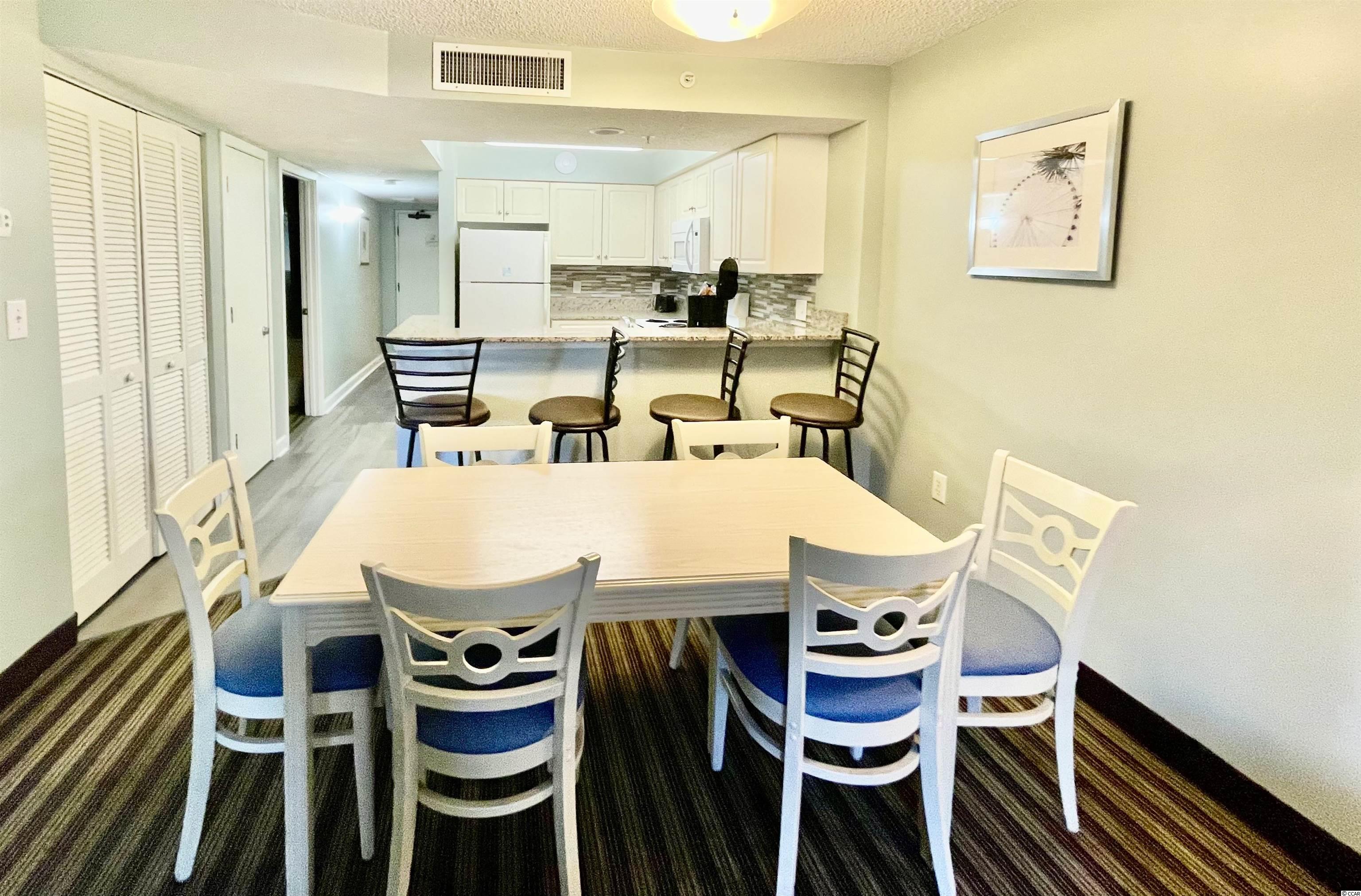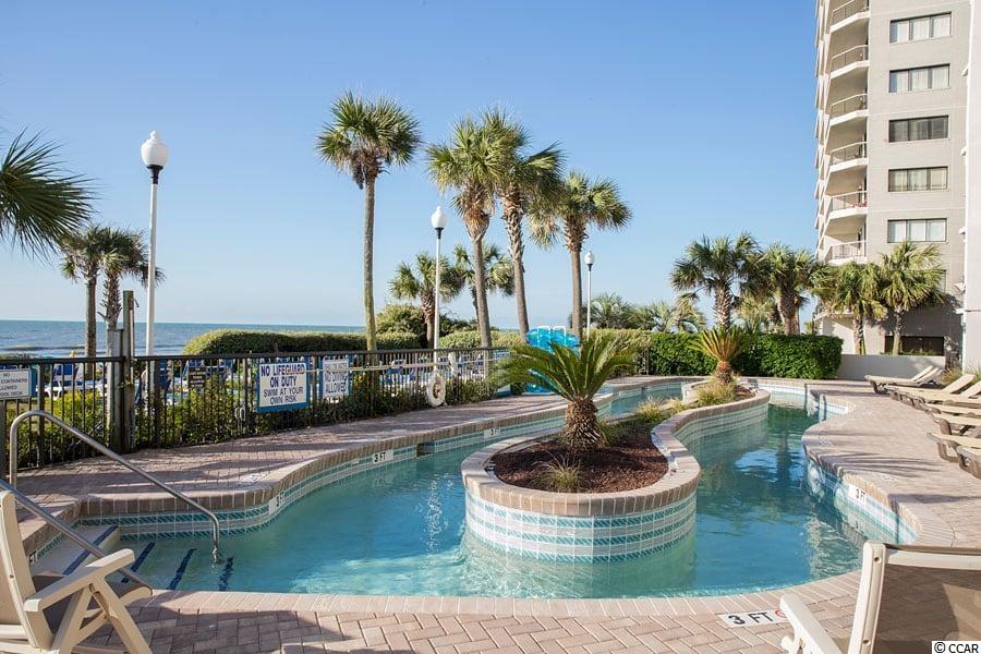 Gorgeous ocean view 2bedroom 2 bath condo on 3rd floor at Grand Shores! This oceanfront resort is located on 77th Ave N, in Myrtle Beach's northern avenues. Wonderful amenities include: an onsite restaurant, covered parking deck, lazy rivers, indoor /outdoor pools, fitness room, spa/hot tub, unique oceanfront rooftop pool deck on the 7th floor with 4 hot tubs, pool and lazy river. Your large balcony can be accessed from Master Bedroom or your Living Room Tile back splash and granite in kitchen, carpet in living room and bedrooms, newer furnishings, luxury vinyl, a new dishwasher and new washer/dryer. There is an owner closet located in the hallway. Grande Shores is close to all the attractions that Myrtle Beach offers: Golfing, Shopping and dining. Don't miss out on this one!