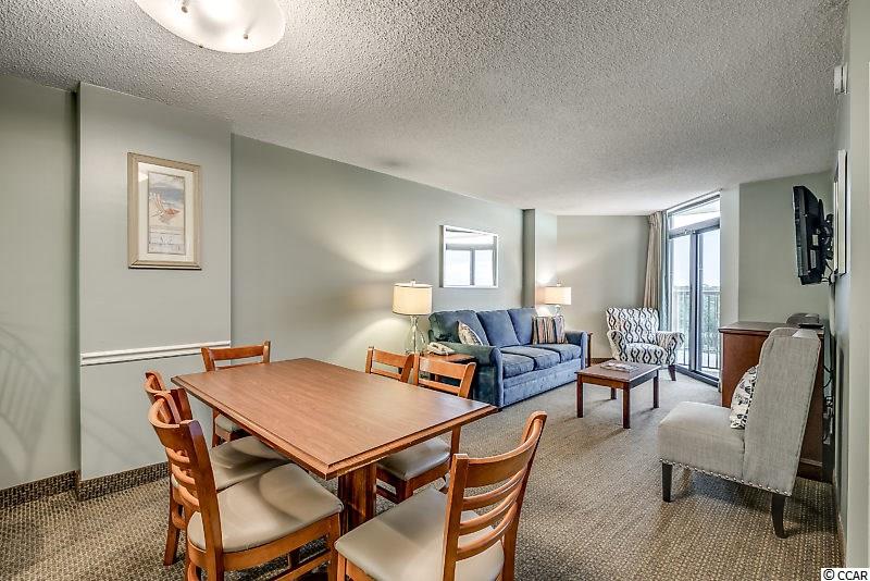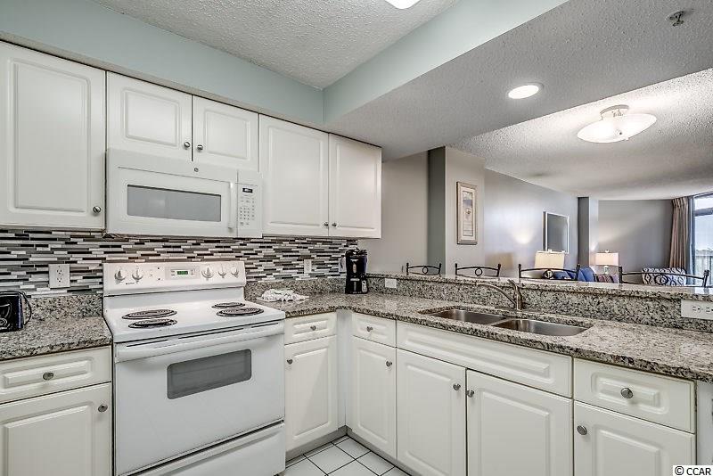 3 bedroom ocean view condo in The Grand Shores Resort. Coastline views from the living room and master bedroom, both of which open onto a large private balcony. This condo is on the same level as the elevated pool deck with a pool, lazy river and hot tubs. You can go straight to the deck through a gate in the balcony. This is an extremely popular feature for rental guests. Full kitchen, nicely furnished and accessorized. Lots of recent upgrades and new furnishings. Grande Shores is located in the upscale northern end of Myrtle Beach, close to all the attractions but out of the hustle and bustle of the downtown area. Amenities include indoor and outdoor pools, lazy rivers, a large oceanfront roof top pool deck, covered garage parking,an onsite restaurant, and seasonal pool bars. The HOA fee includes water/sewer, unit electric, cable, internet and telephone, as well as building insurance and HO6 contents insurance. All information is deemed correct, but it is the responsibility of the buyers and their agents to verify all information.