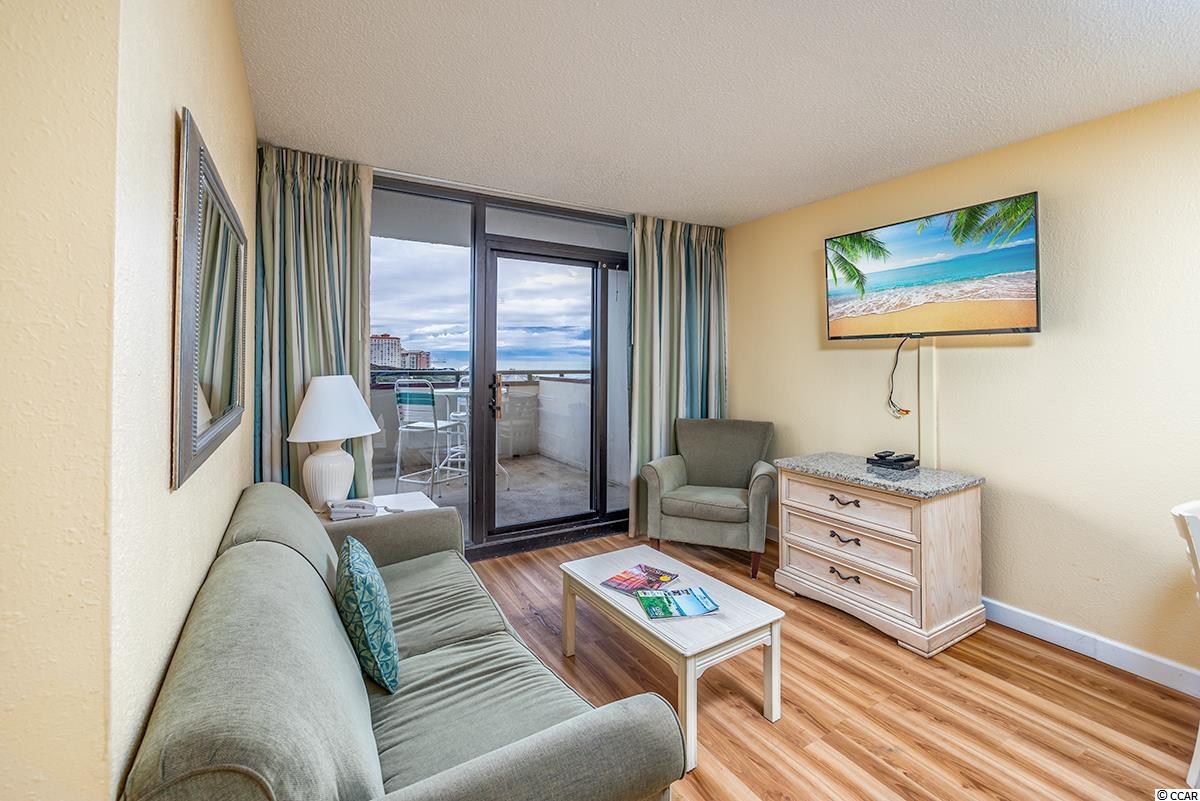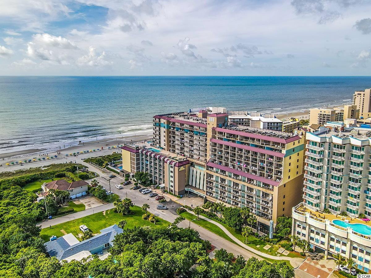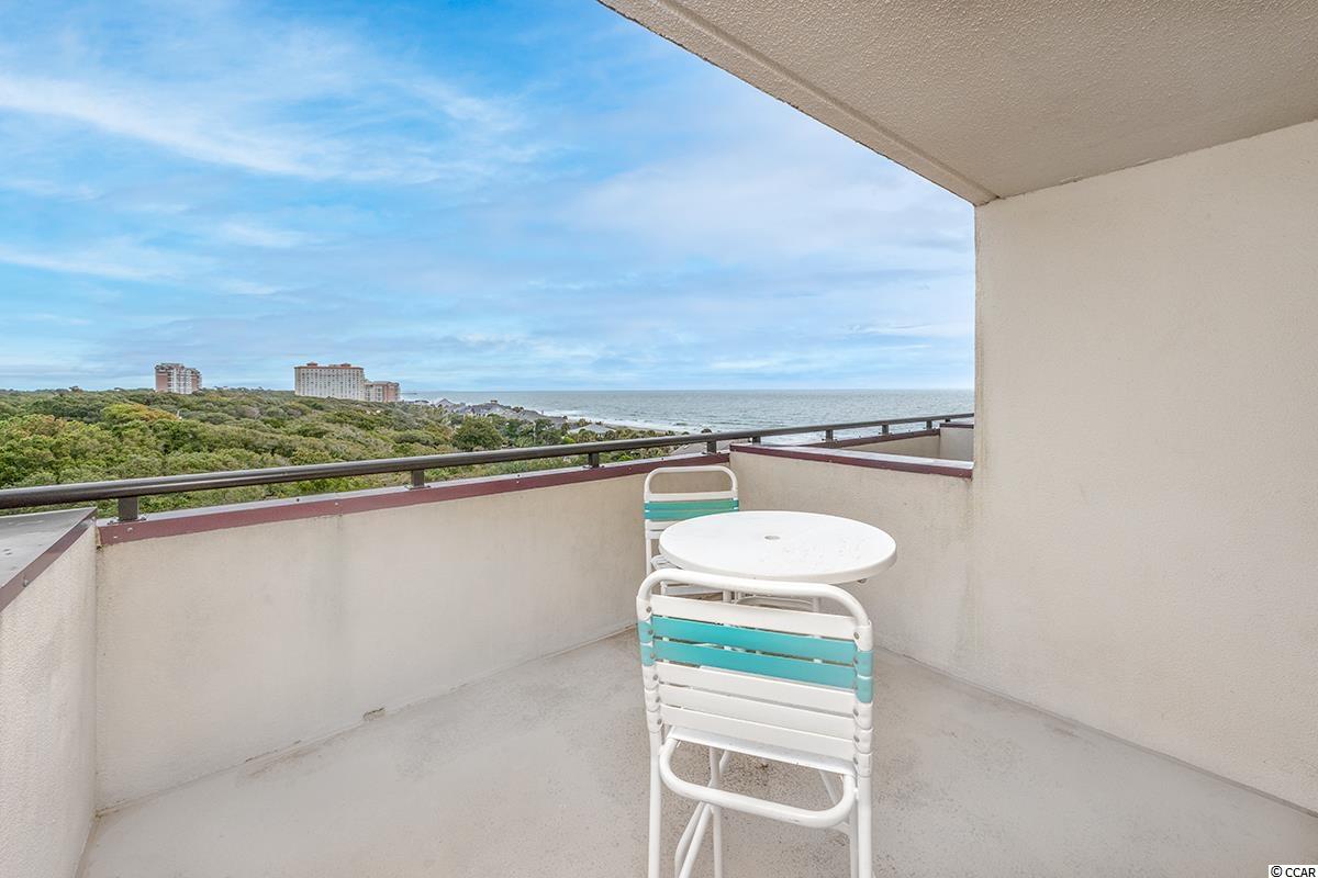 This is a wonderful condo on the 8th floor of the oceanfront Grande Shores building. Your ocean views are north looking out to a very nice residential neighborhood and the ocean with no high rises blocking your views. The balcony is the perfect place to sit and watch the sunrise. The condo has two queen beds in the bedroom, a queen size murphy bed in the living area and the couch pulls out into a bed. This is being sold fully furnished. The floors are new luxury vinyl plank flooring with tile in the bath and kitchen. This location is very close to shopping and restaurants and convenient to everything in our area. There are indoor and outdoor pools, a lazy river and fitness center. New vinyl plank floors with white wood baseboards in the bedroom and living area in 2019, entire condo painted in 2019, wallpaper removed and bathroom painted in 2020, new granite countertop and kitchen sink in 2021, 2 new mattresses in 2019, new TV in living area in 2018 and new DVD player in 2021.