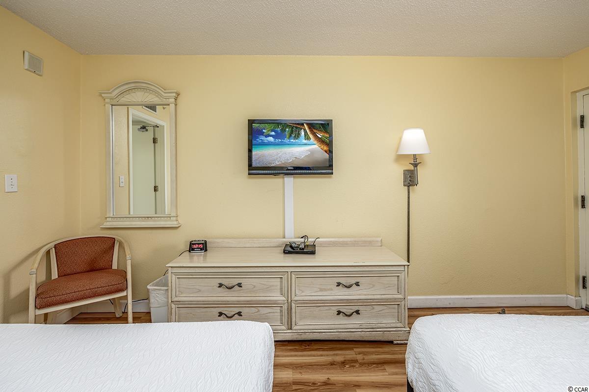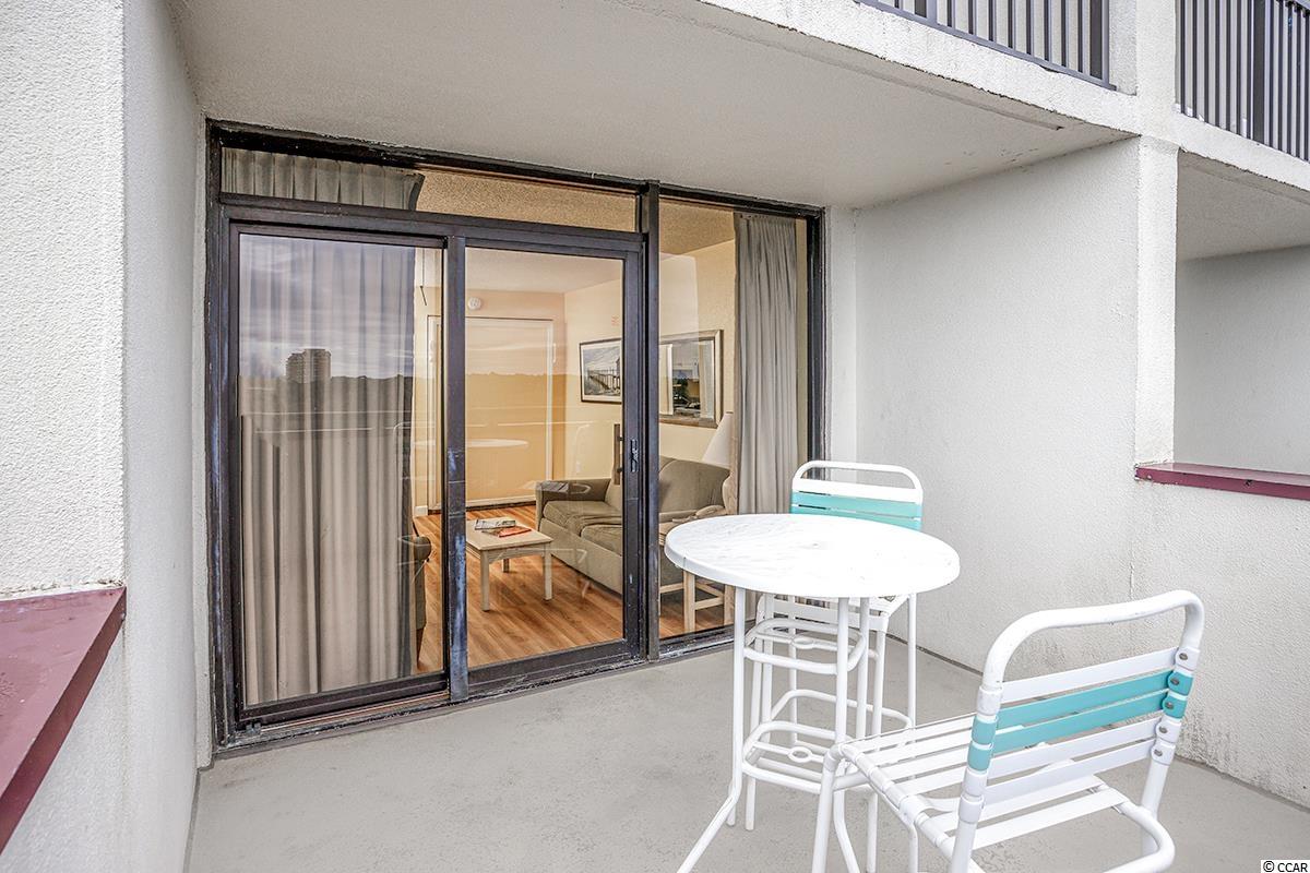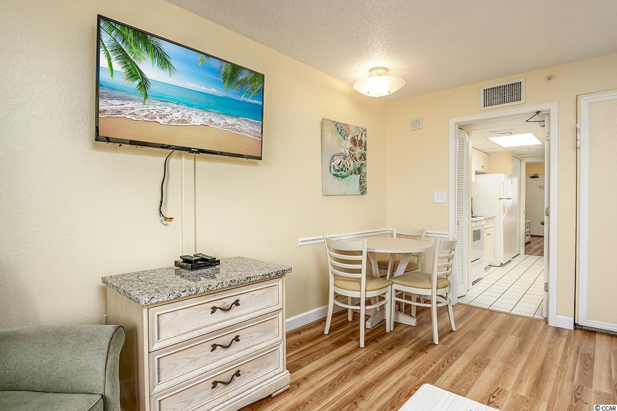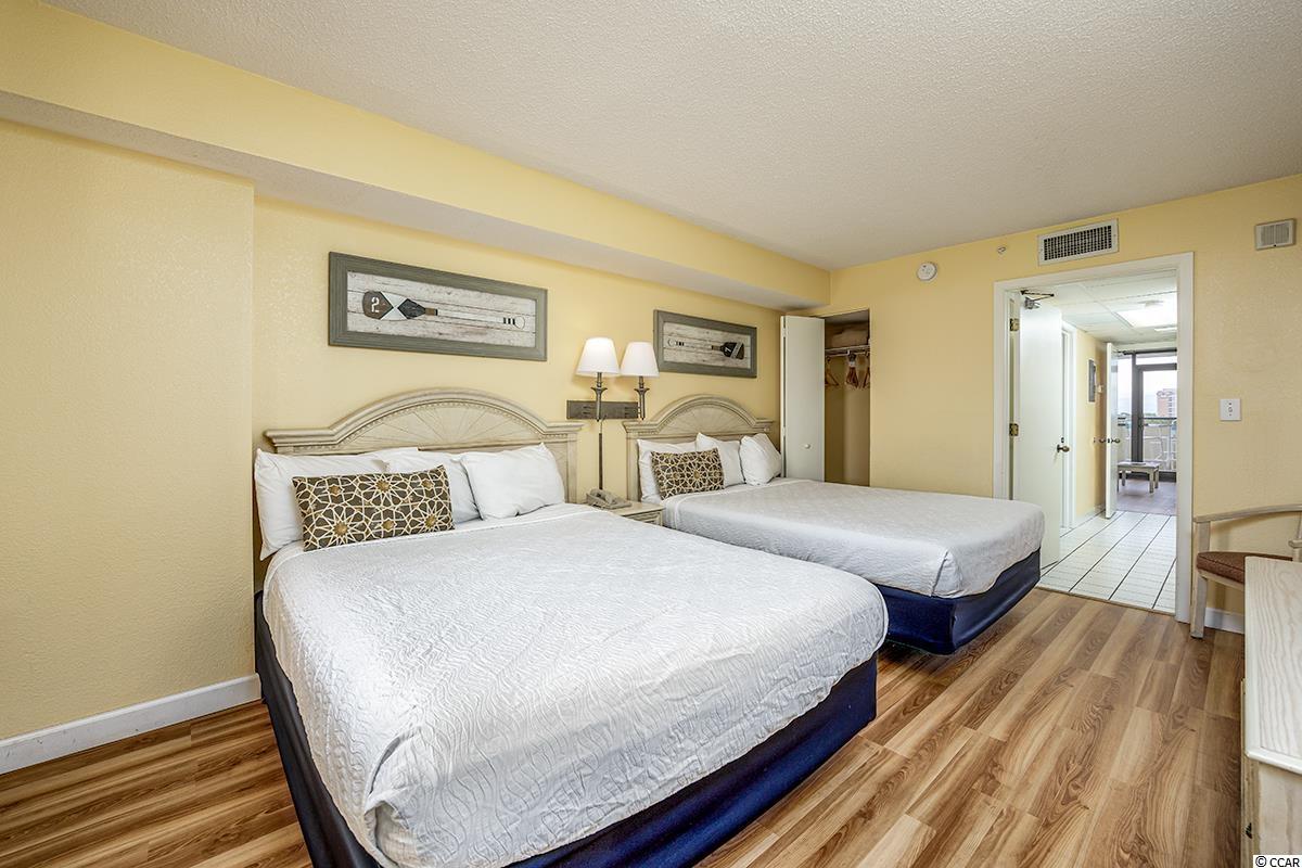 This is a wonderful condo on the 8th floor of the oceanfront Grande Shores building. Your ocean views are north looking out to a very nice residential neighborhood and the ocean with no high rises blocking your views. The balcony is the perfect place to sit and watch the sunrise. The condo has two queen beds in the bedroom, a queen size murphy bed in the living area and the couch pulls out into a bed. This is being sold fully furnished. The floors are new luxury vinyl plank flooring with tile in the bath and kitchen. This location is very close to shopping and restaurants and convenient to everything in our area. There are indoor and outdoor pools, a lazy river and fitness center. New vinyl plank floors with white wood baseboards in the bedroom and living area in 2019, entire condo painted in 2019, wallpaper removed and bathroom painted in 2020, new granite countertop and kitchen sink in 2021, 2 new mattresses in 2019, new TV in living area in 2018 and new DVD player in 2021.