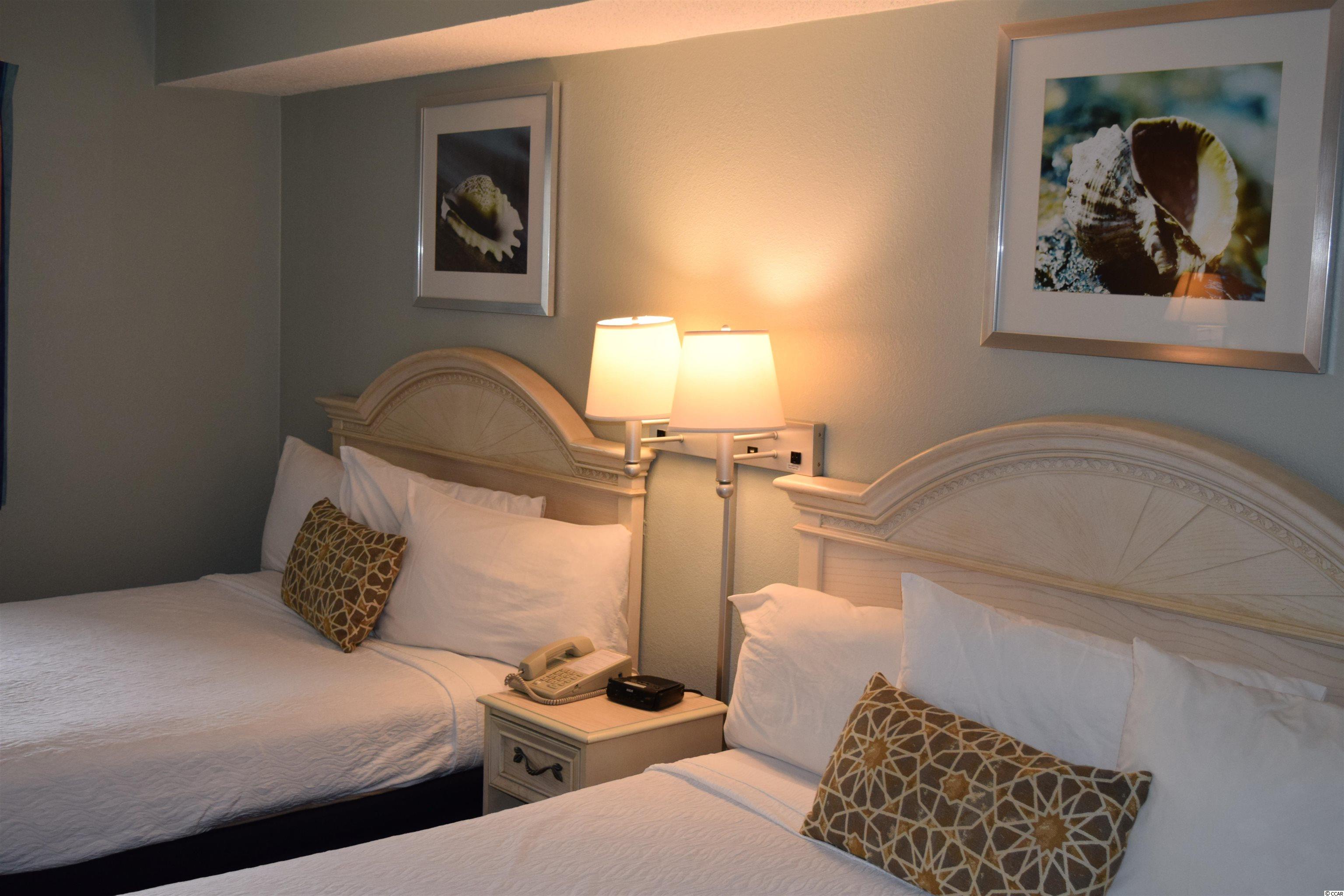 This is a wonderful opportunity to own your own affordable, well maintained ocean view condo in the popular Grande Shores ocean front building. This condo has two queen beds but also has a murphy bed for extra guests. Galley kitchen, one large balcony with outdoor dining with a northern coastline view and a bonus smaller balcony for additional views. Grand Shores has so many amenities for the owners and guests including an indoor pool, kiddie pool and hot tub near the check in desk, you will find an outdoor pool, lazy river and 4 hot tubs on the 7th floor and on the first floor by the ocean another outdoor pool and lazy river. Also Shoreline Cafe, pool bar, grill, fitness center and even some corn hole boards. Sorry no pets allowed in this building.